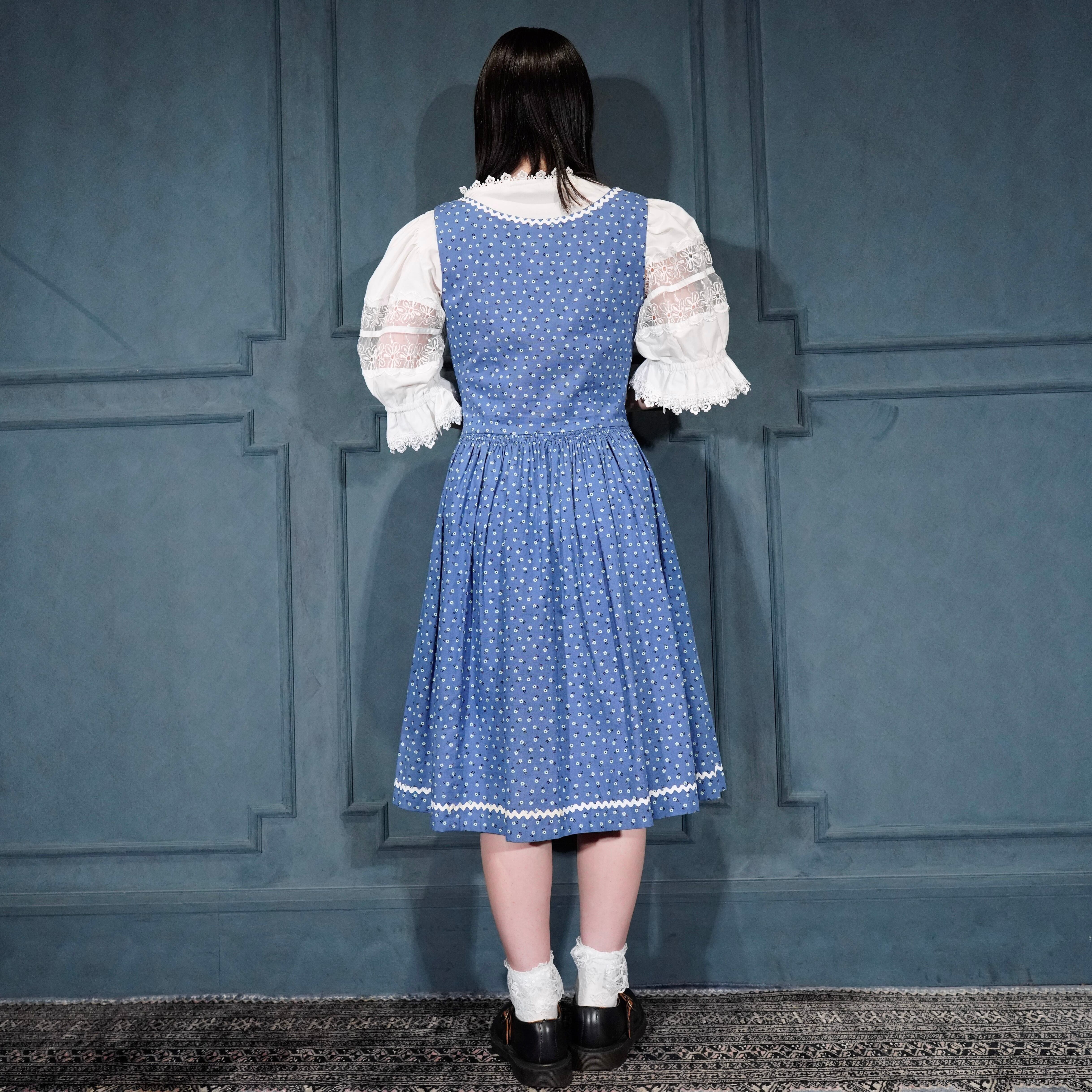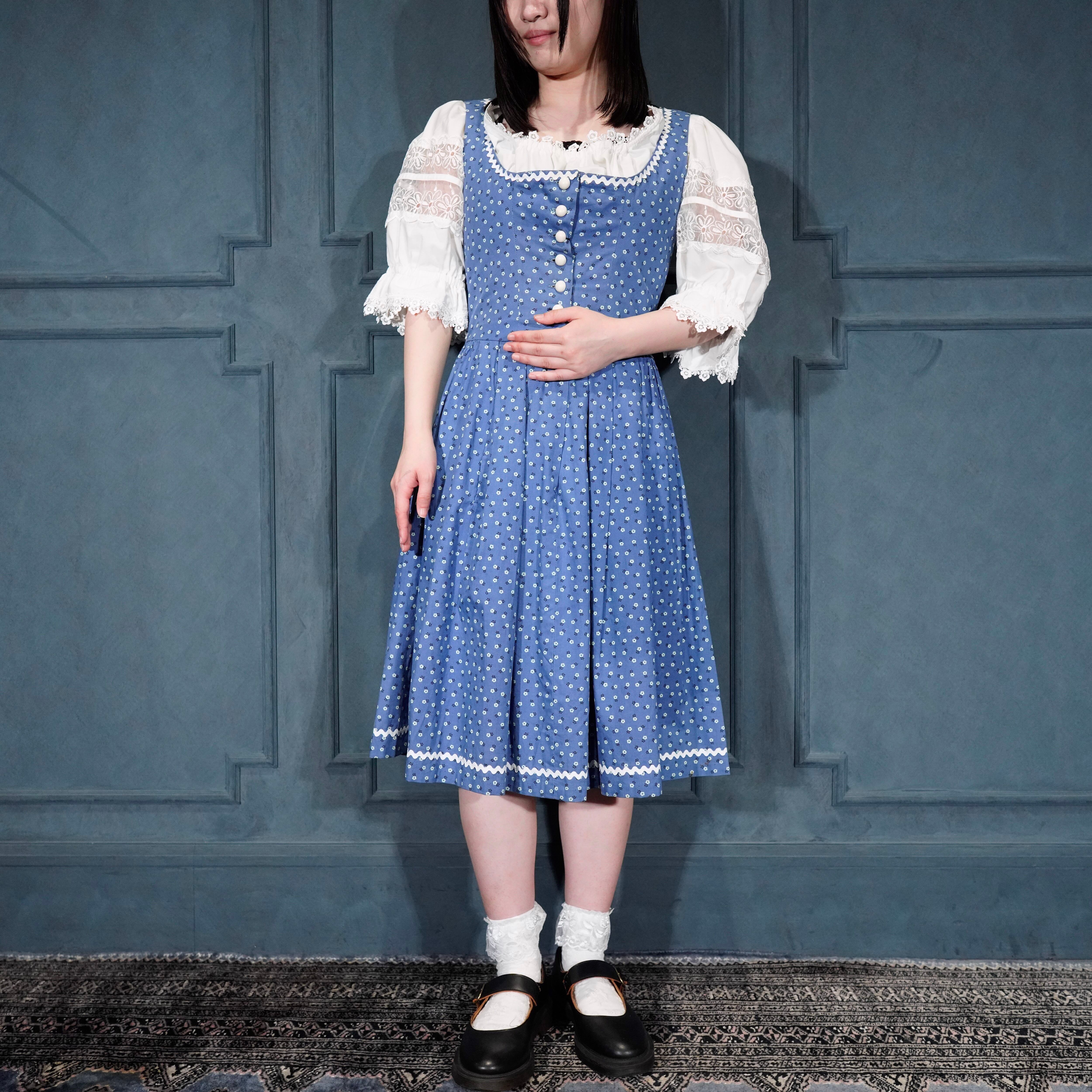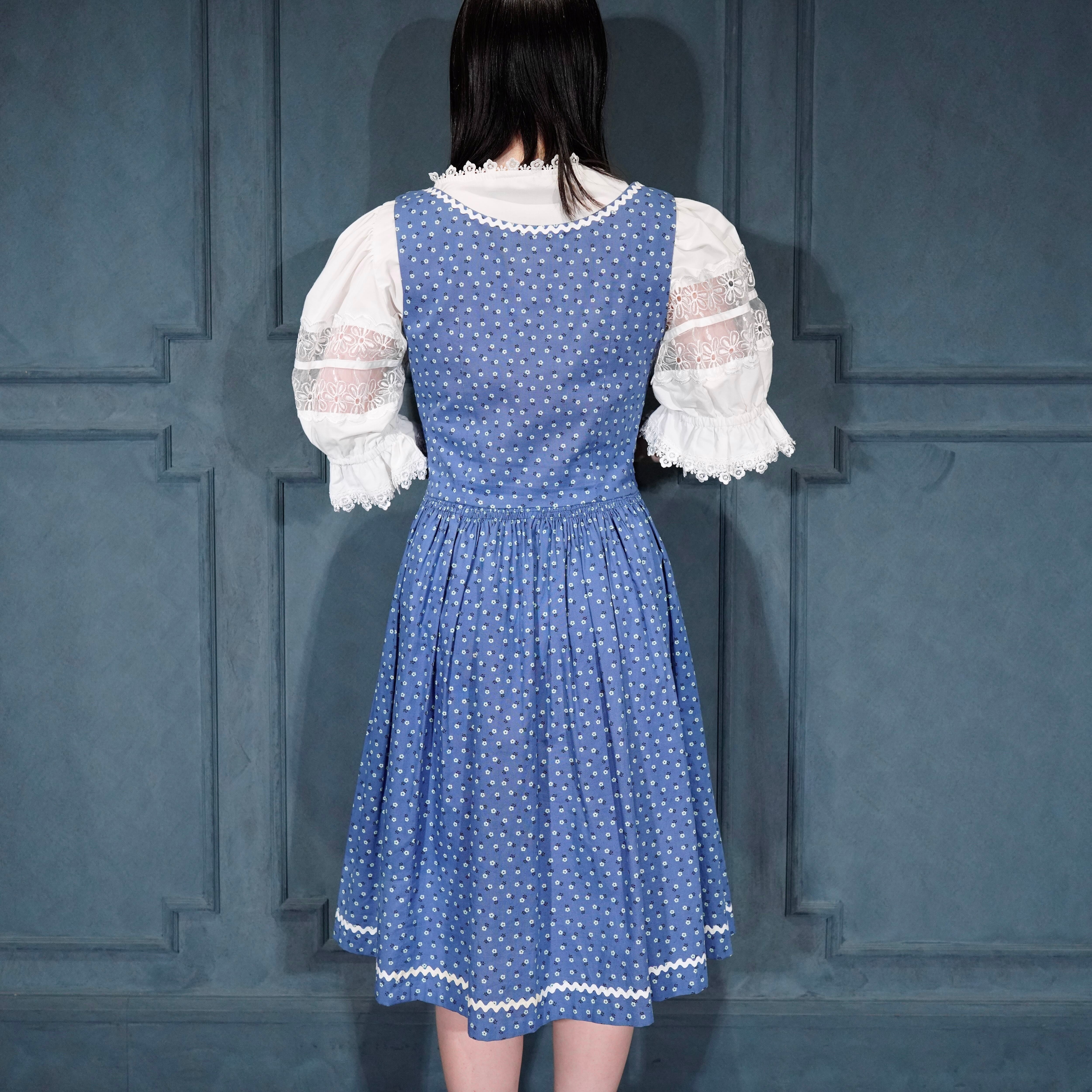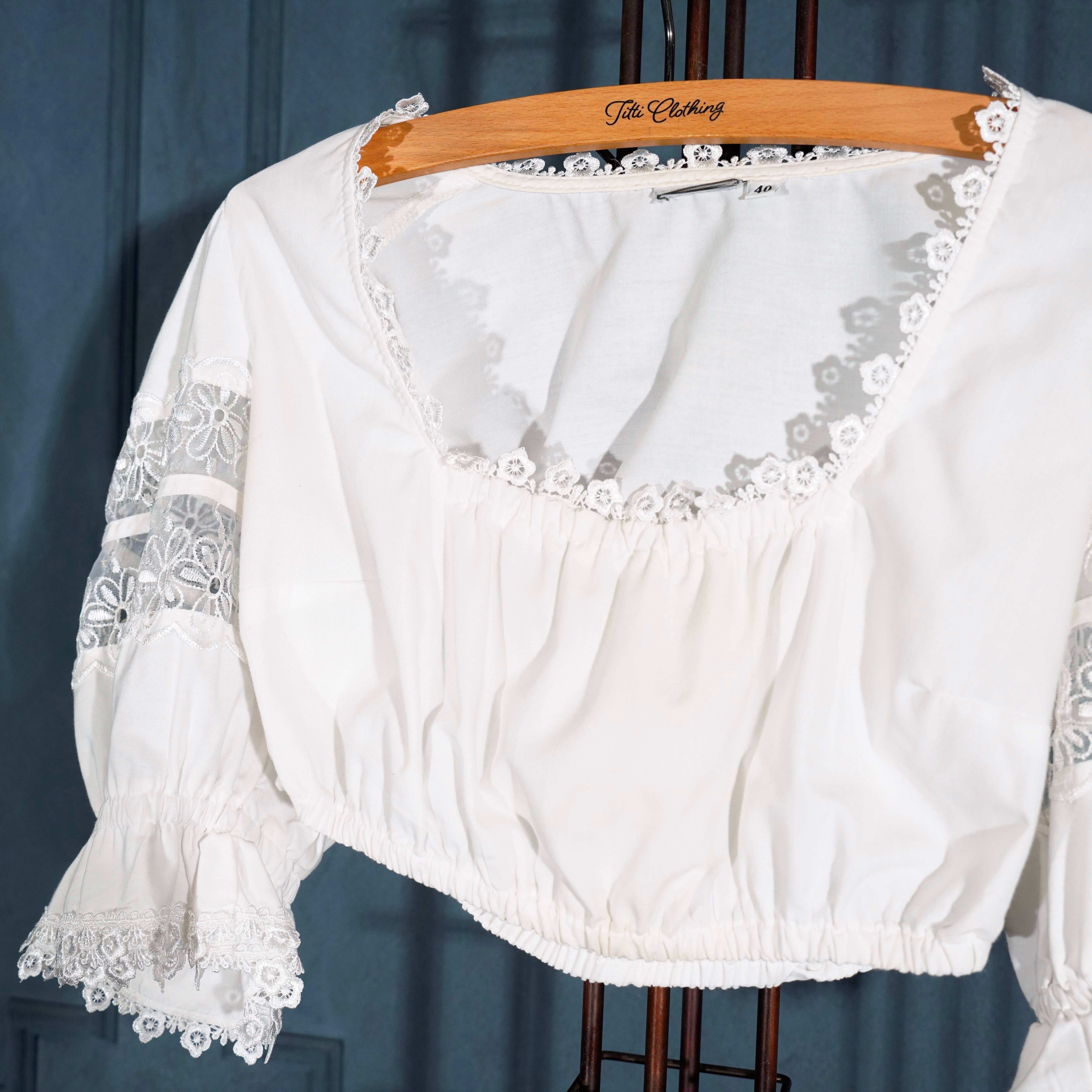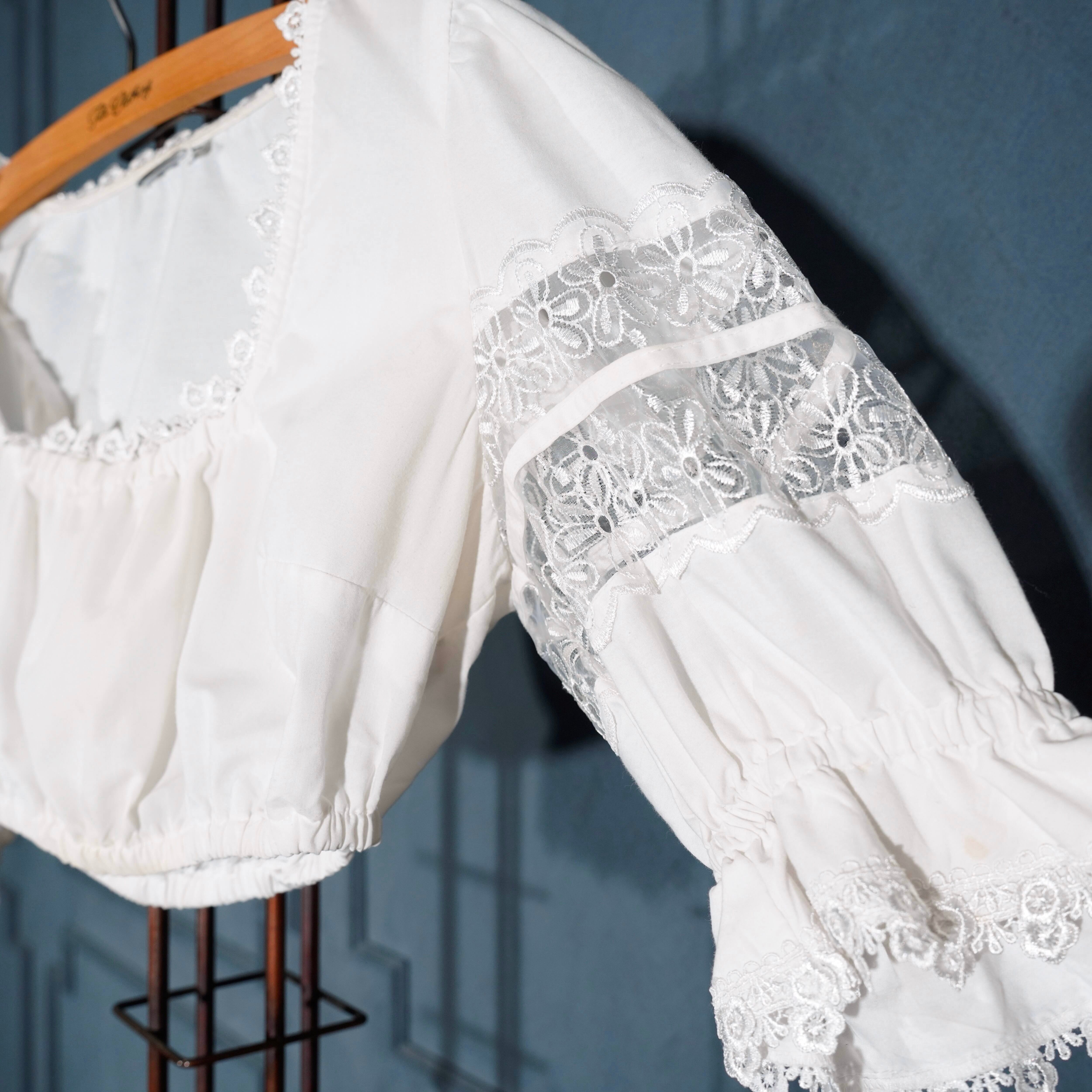 EU VINTAGE FLOWER EMBROIDERY LACE DESIGN TYROLEAN BLOUSE/ヨーロッパ古着襟お花刺繍レースデザインチロリアンブラウス(トップス)