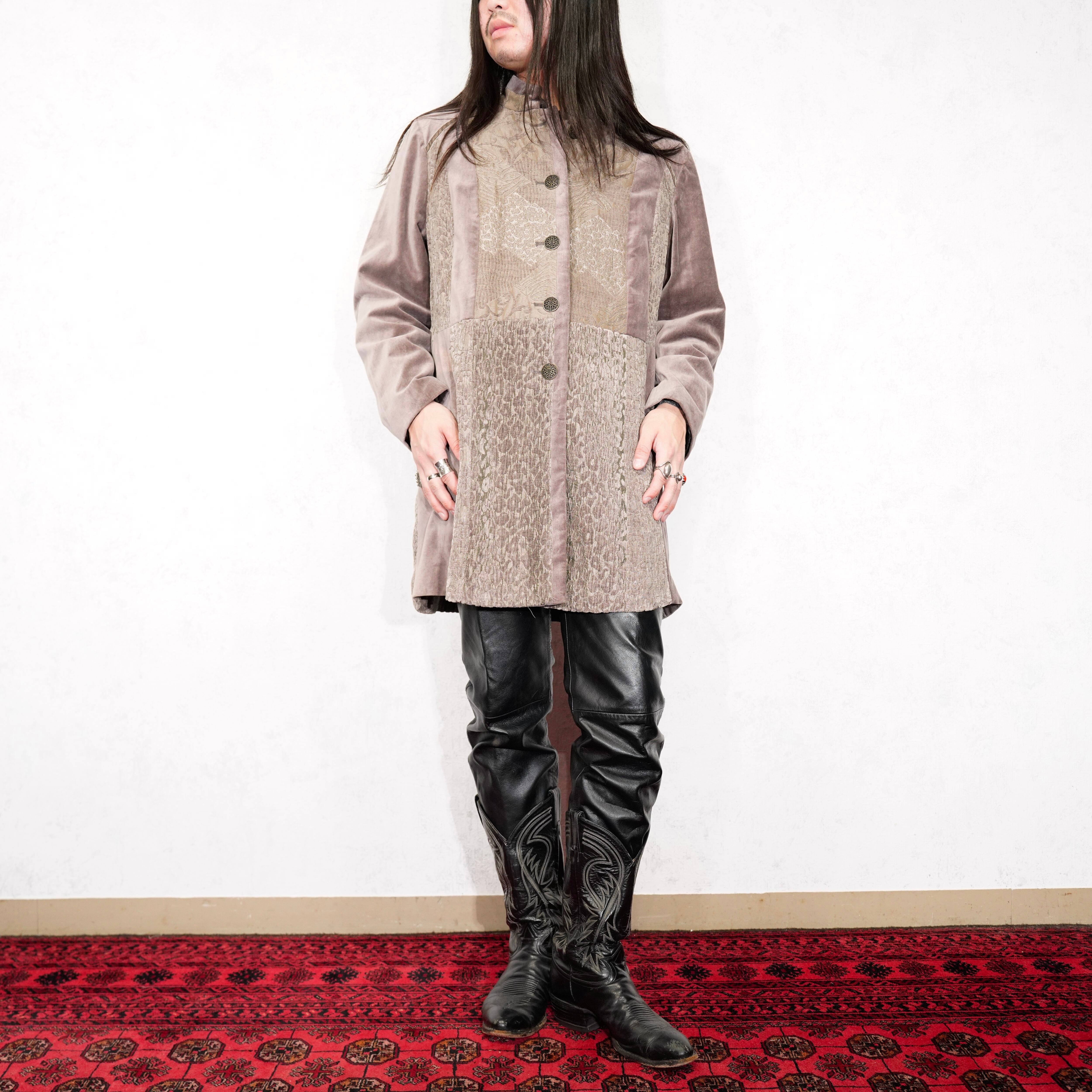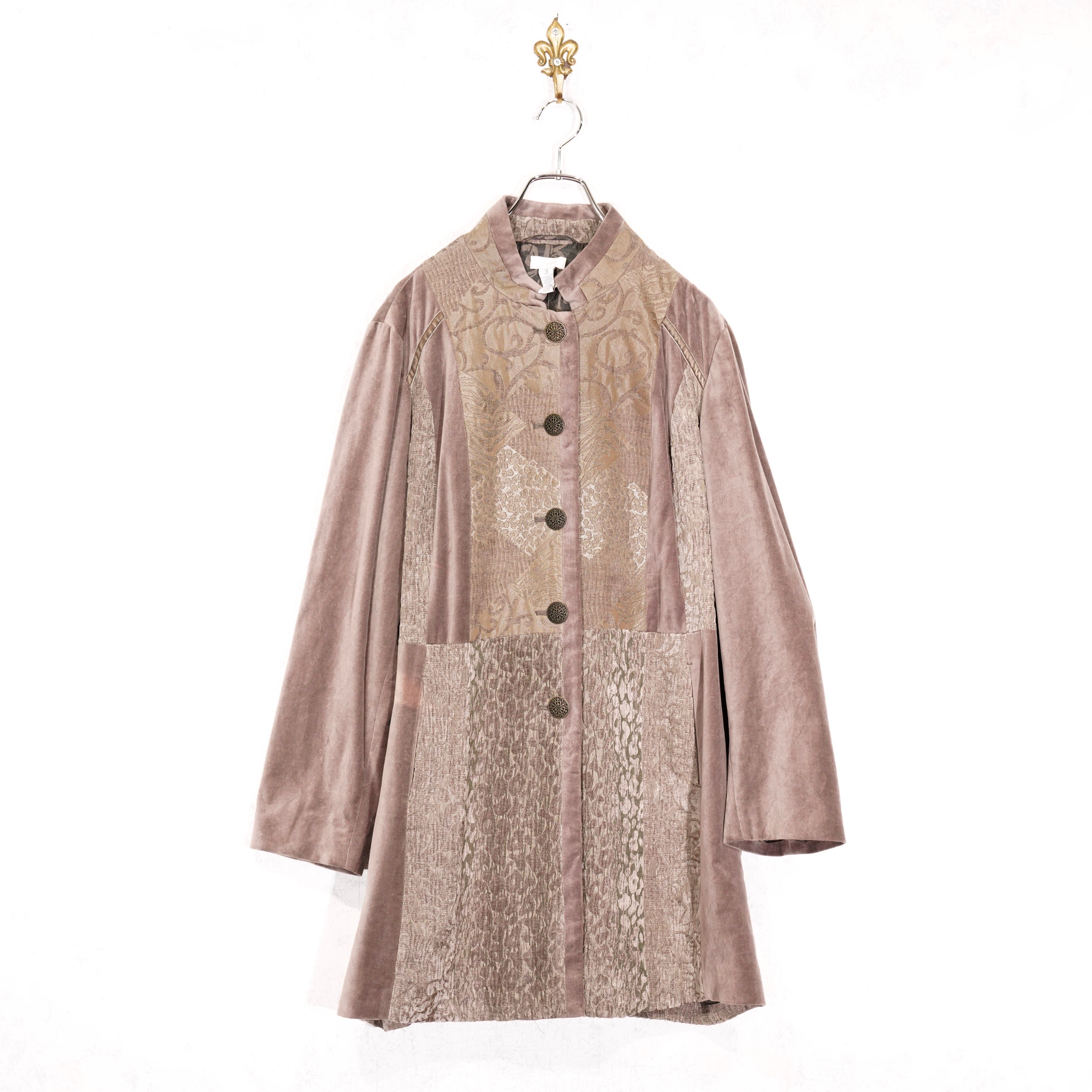 USA VINTAGE CHICO'S EMBROIDERY DESIGN VELOUR COAT/アメリカ古着刺繍デザインベロアコート