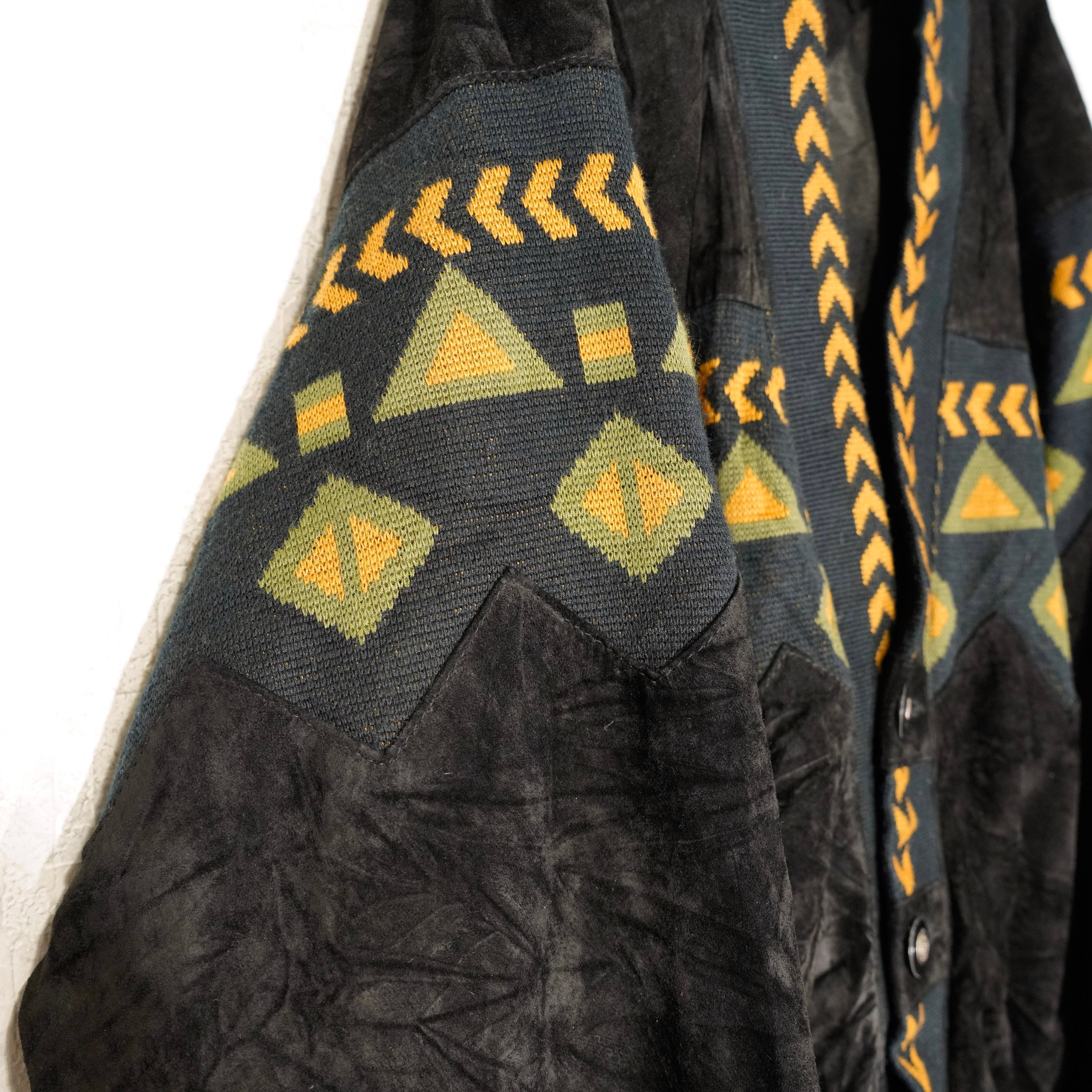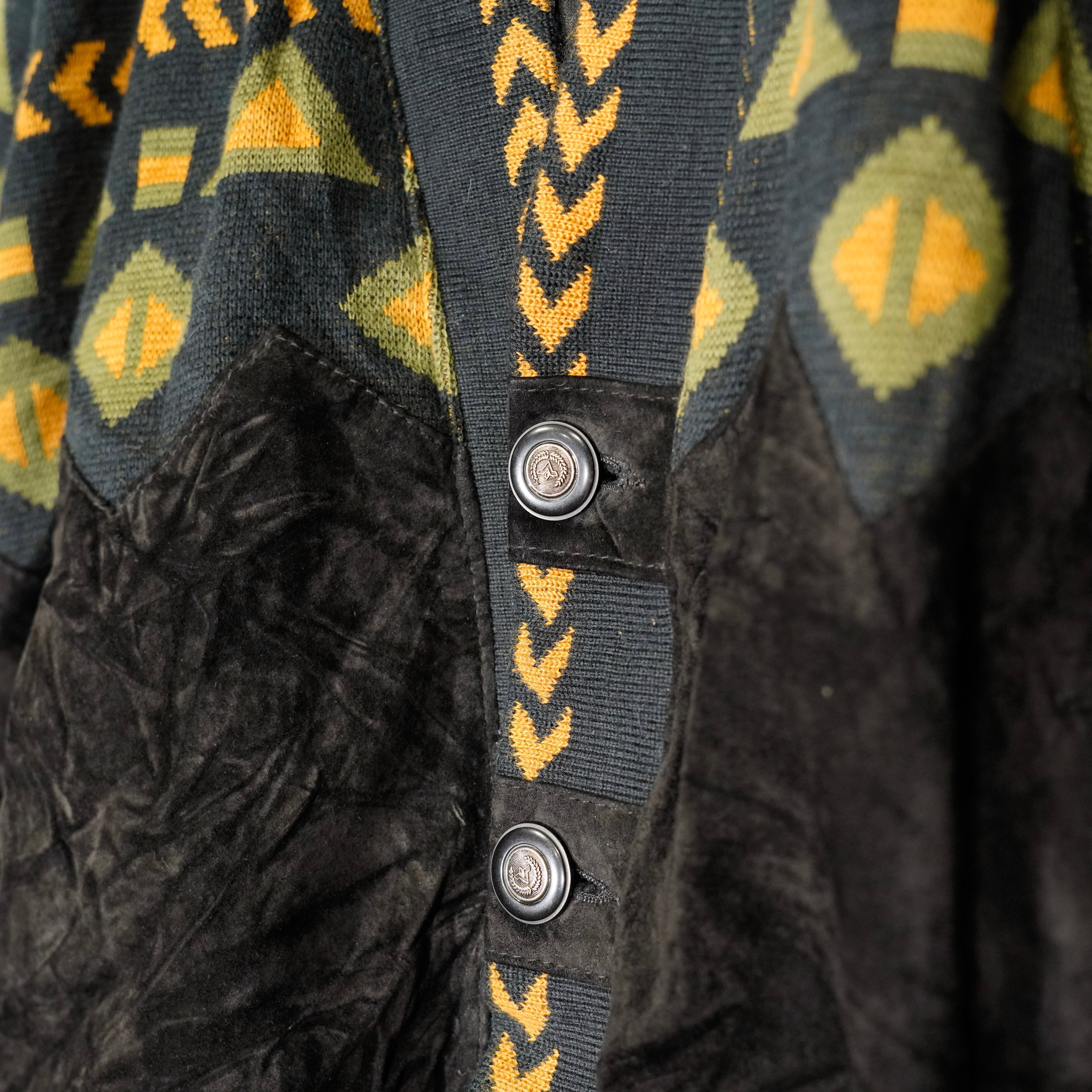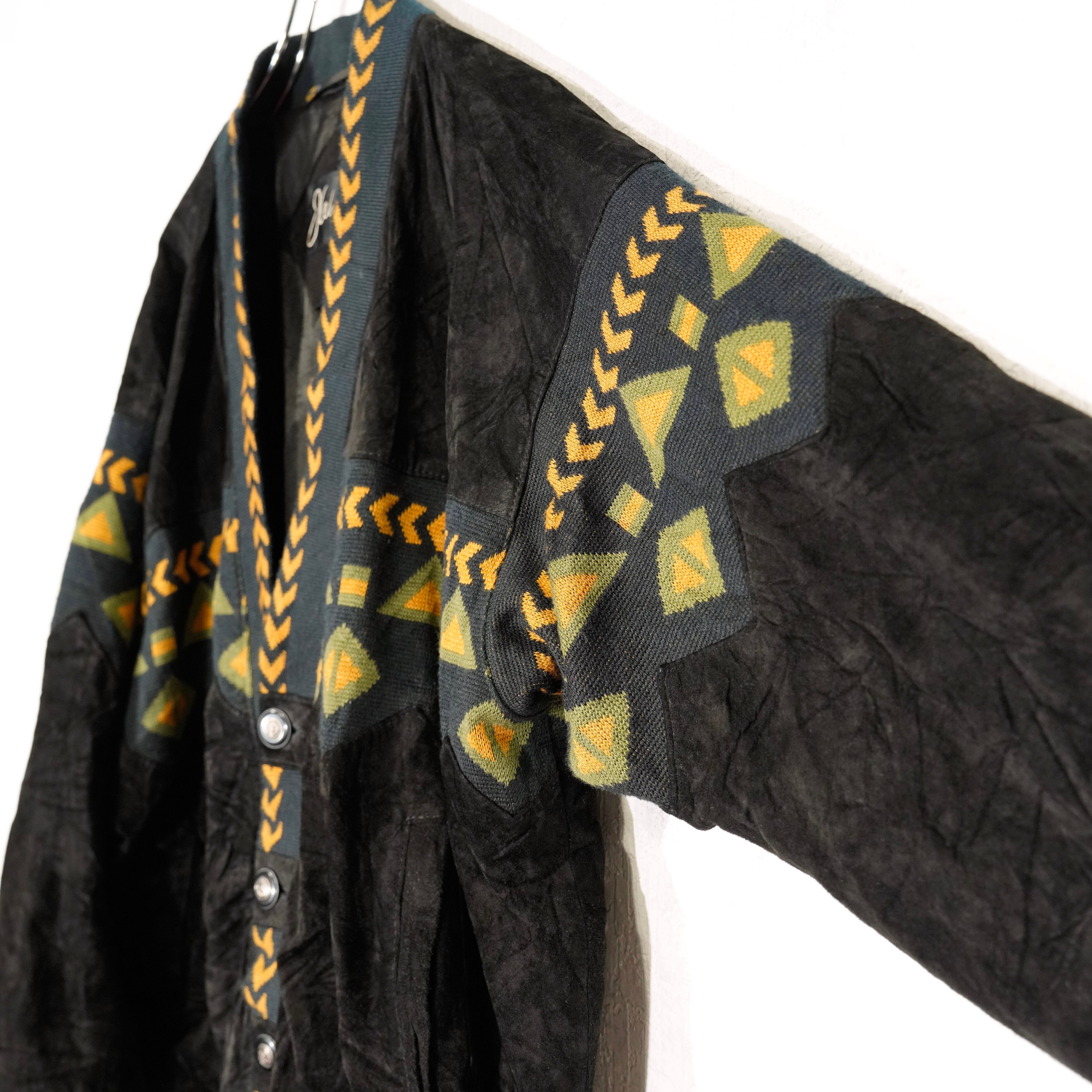*SPECIAL ITEM* USA VINTAGE KNIT SWITCHED DESIGN LEATHER CARDIGAN/アメリカ古着ニット切替デザインレザーカーディガン
