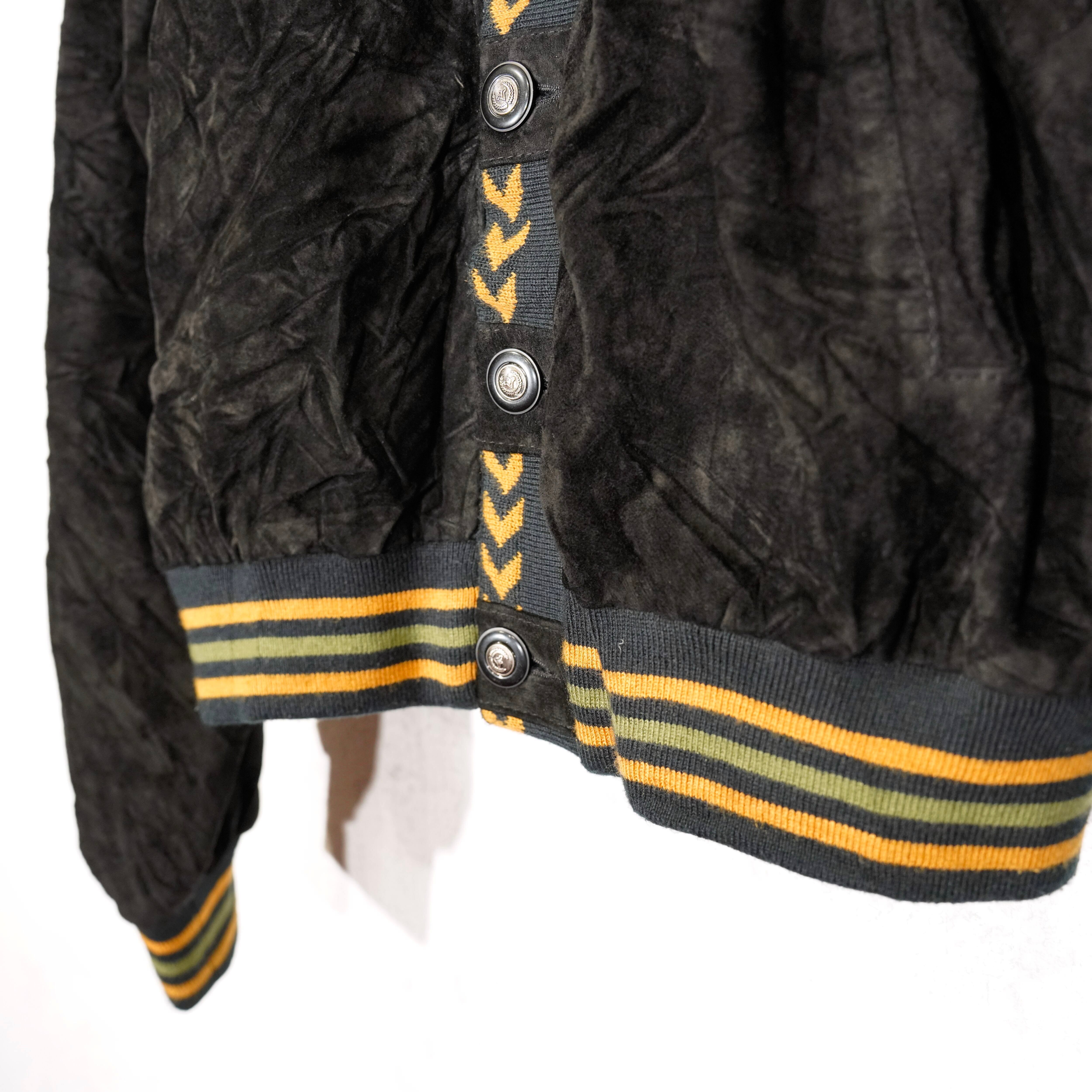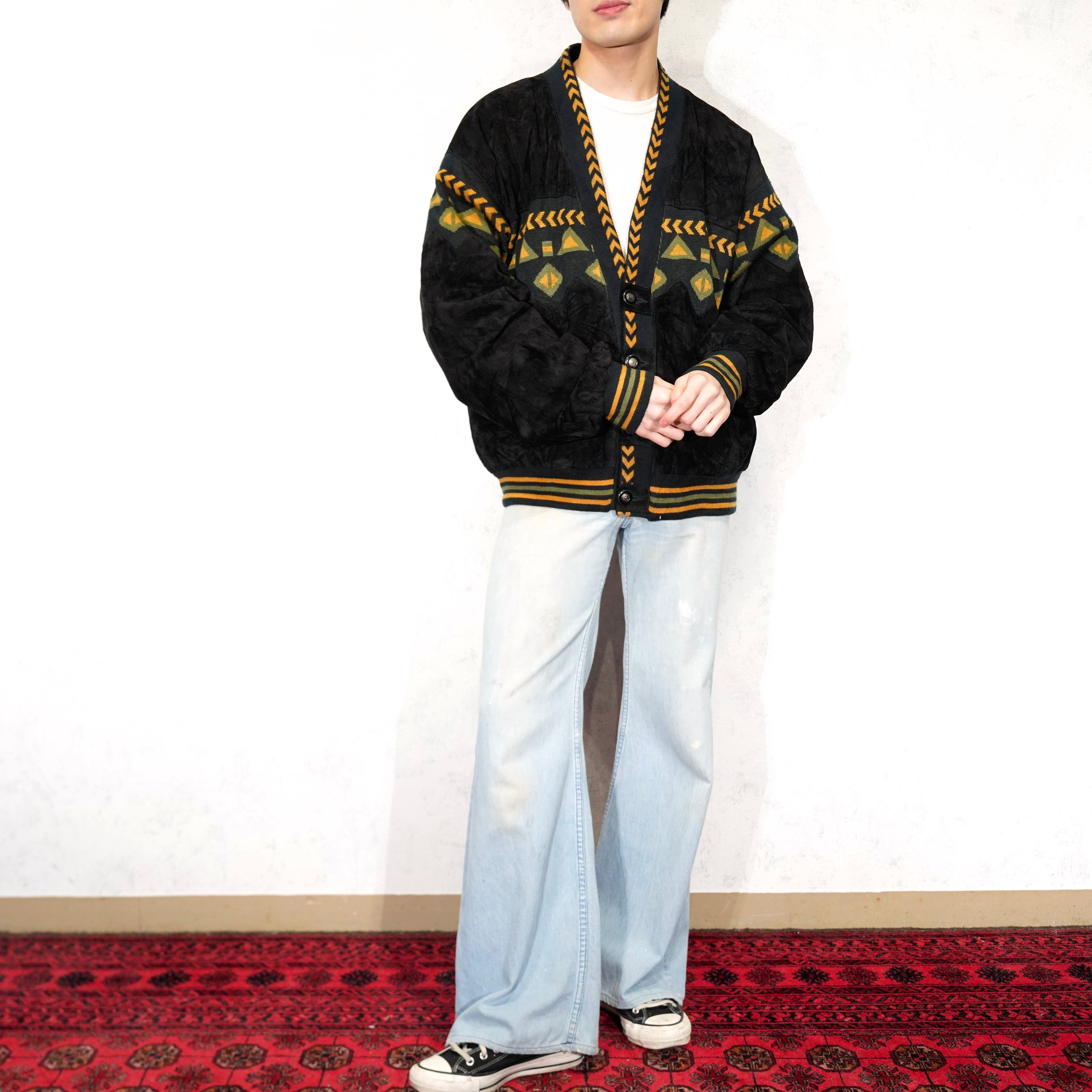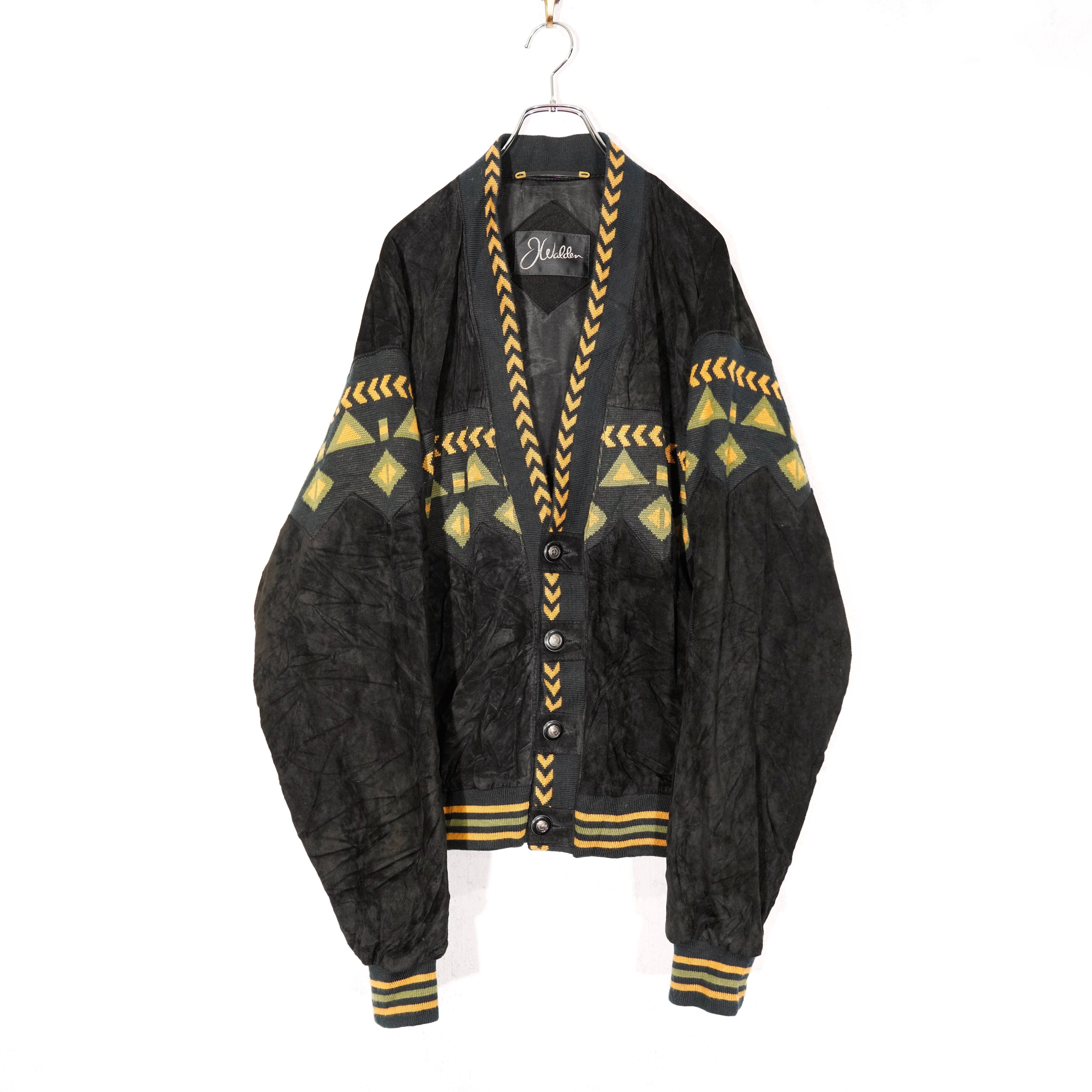 *SPECIAL ITEM* USA VINTAGE KNIT SWITCHED DESIGN LEATHER CARDIGAN/アメリカ古着ニット切替デザインレザーカーディガン