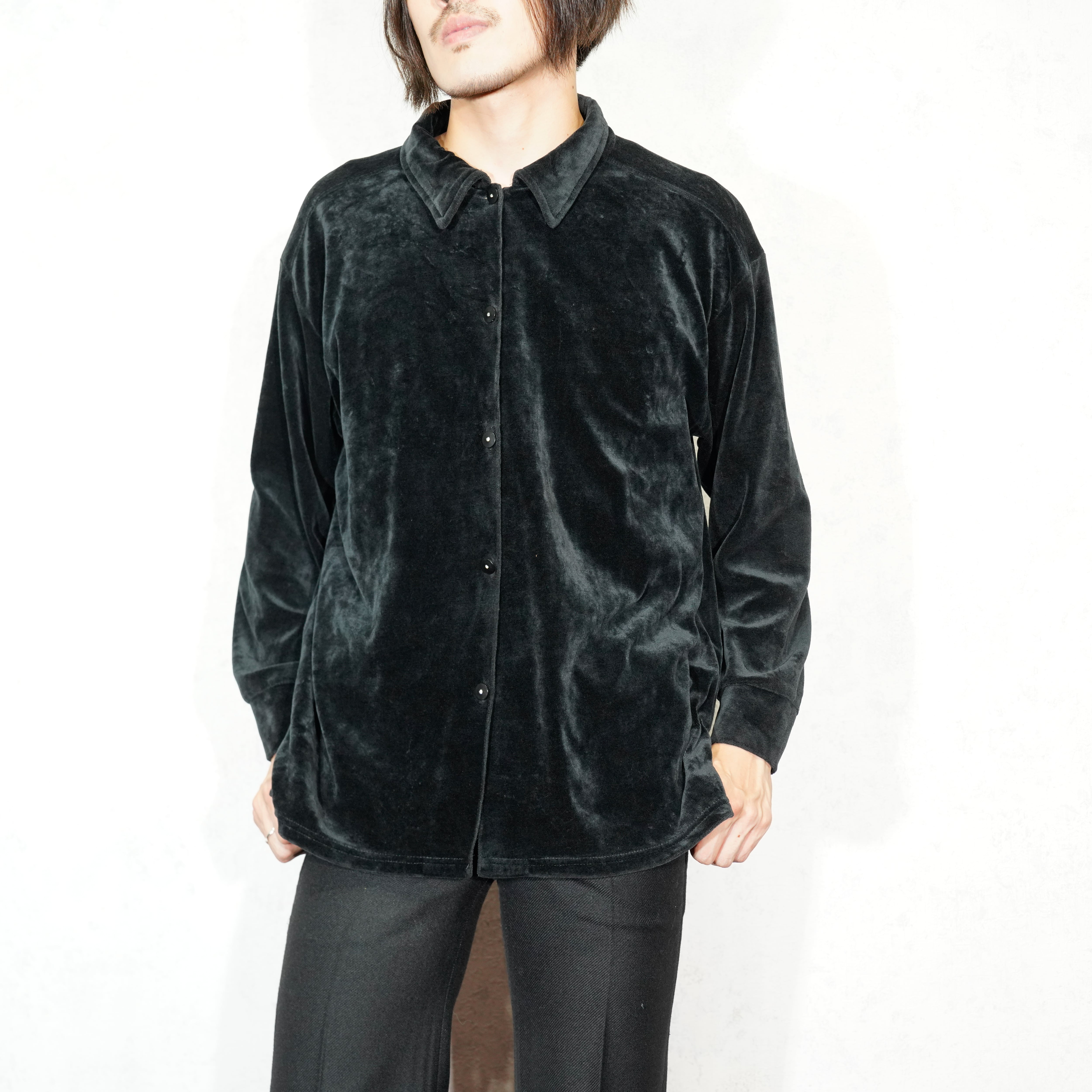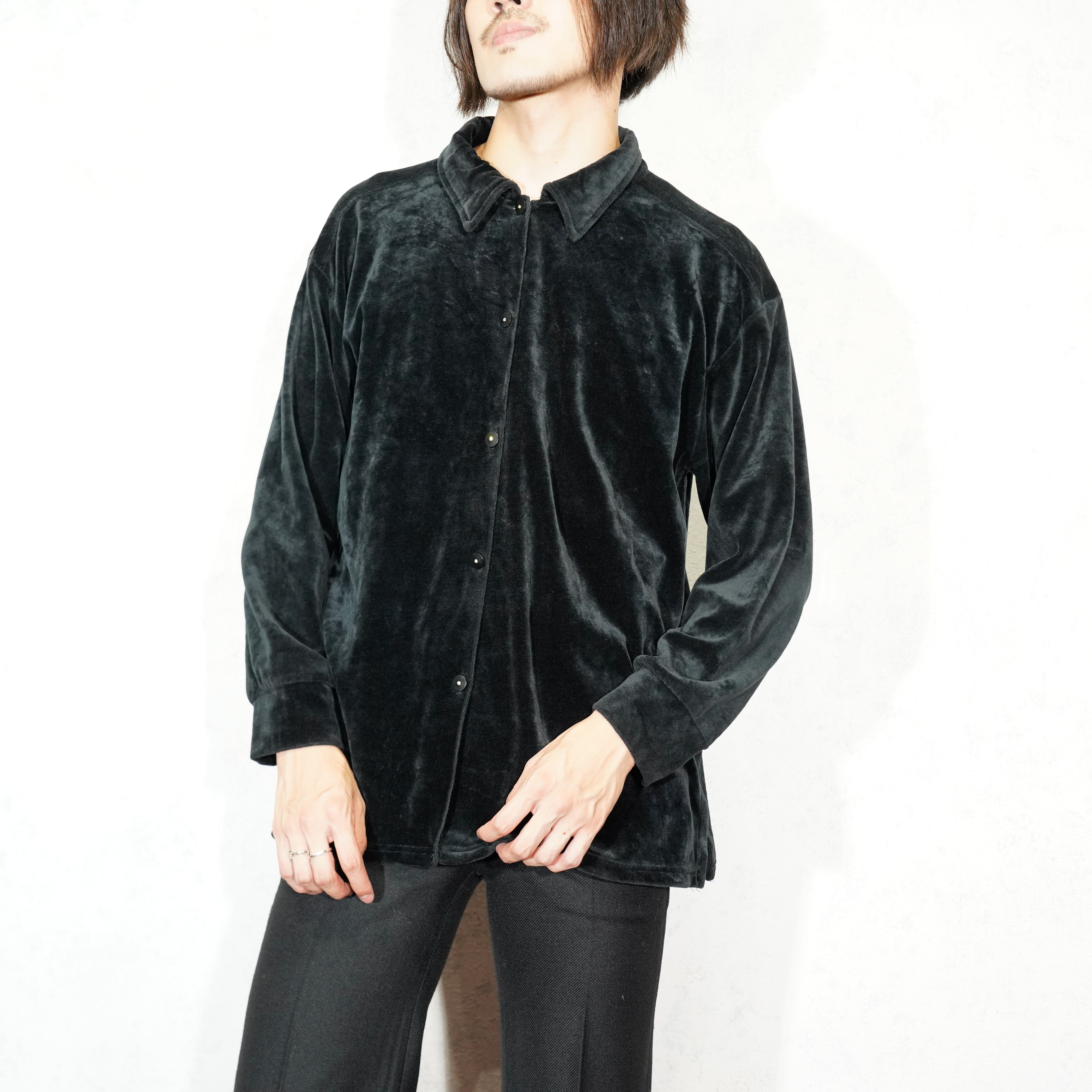 USA VINTAGE SAG HARBOR DESIGN BUTTON VELOUR SHIRT/アメリカ古着デザインボタンベロアシャツ