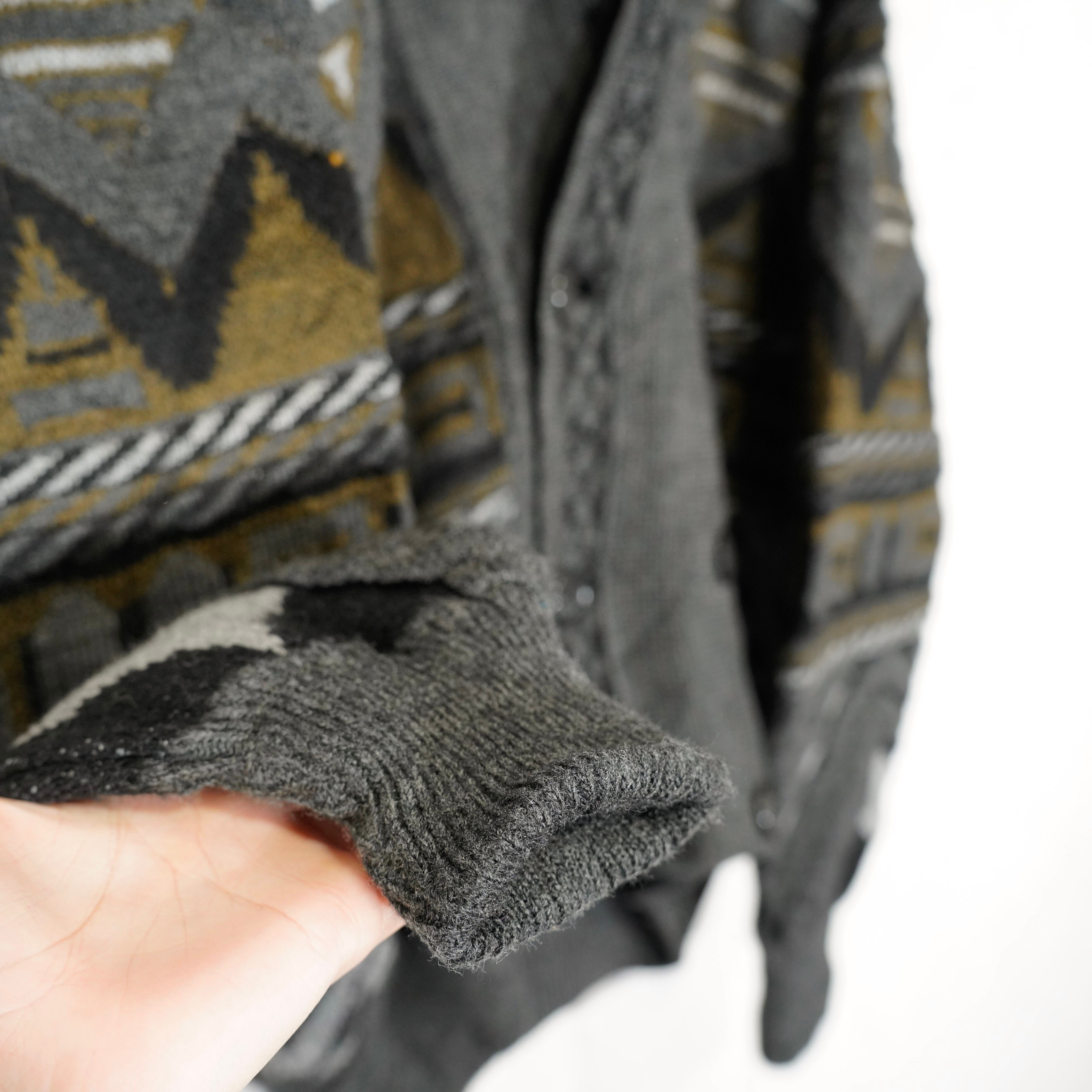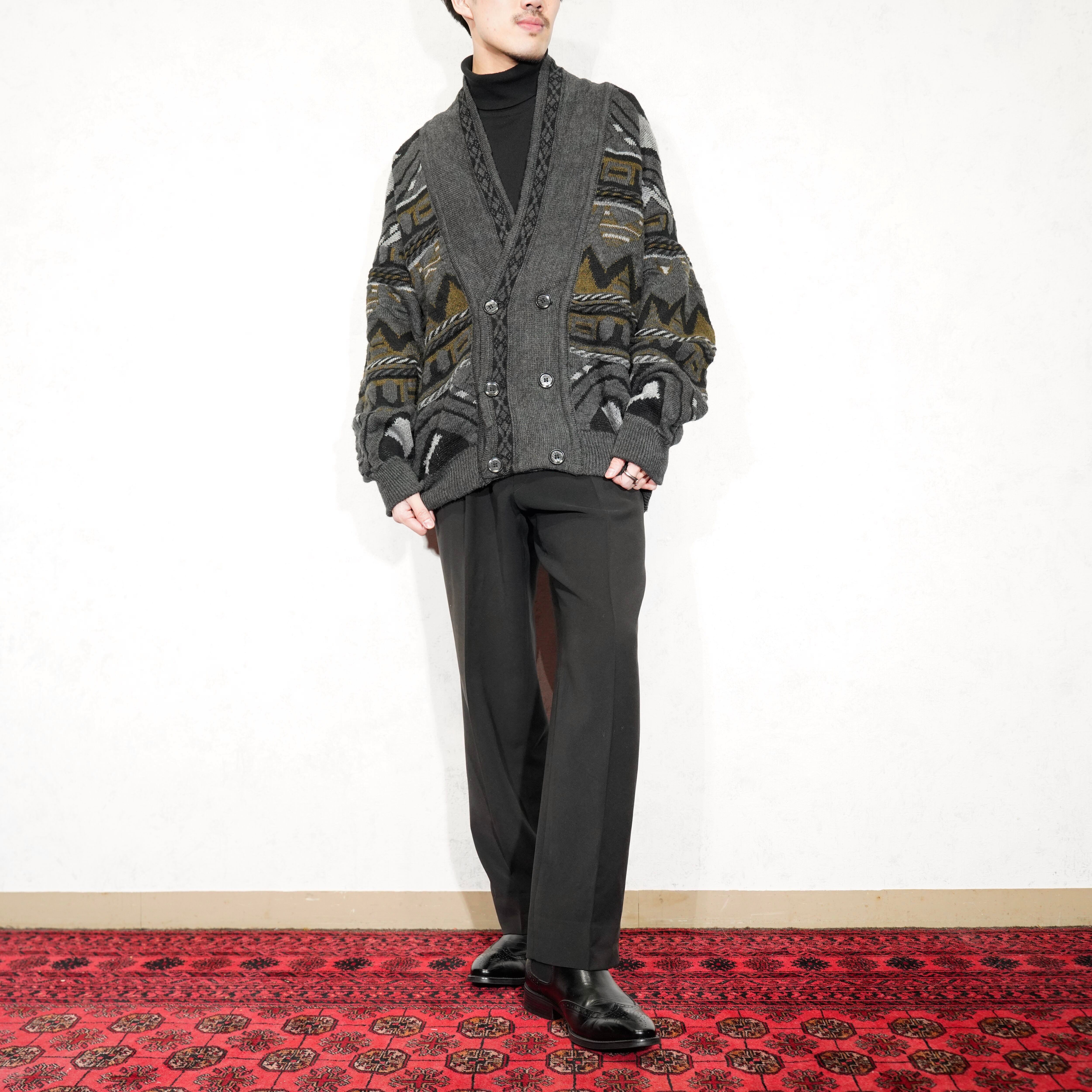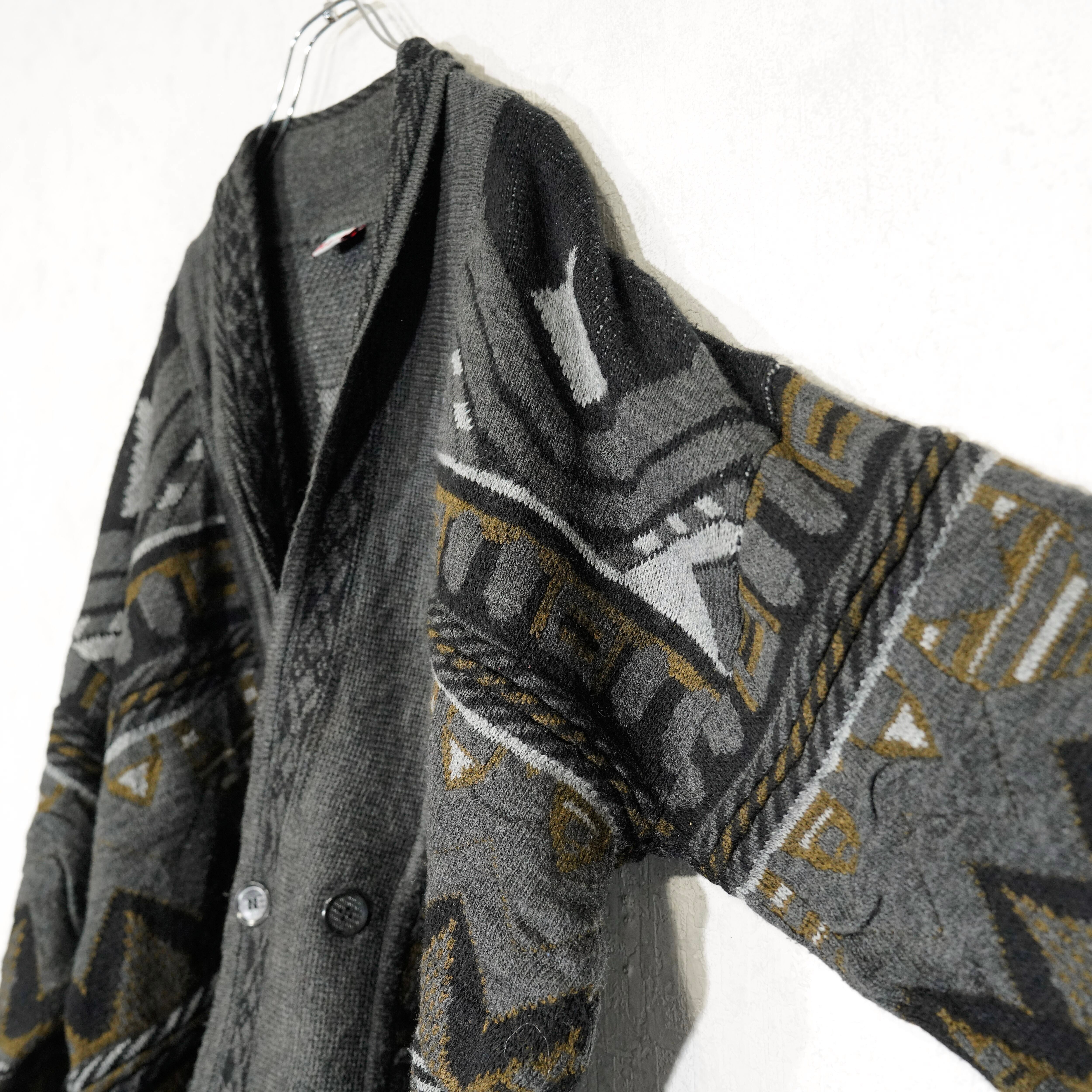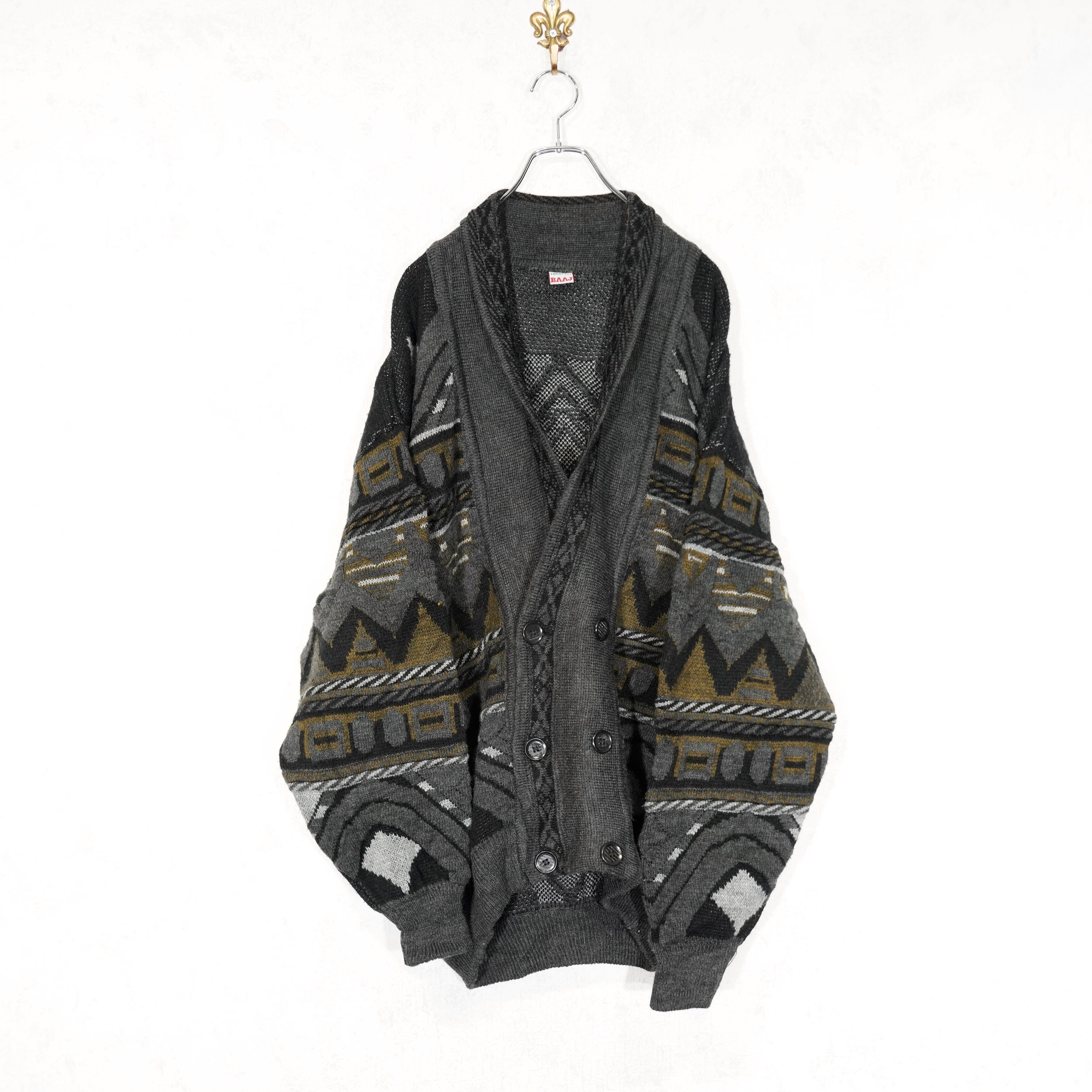 EU VINTAGE TRICOT BAAJ PATTERNED DESIGN 3D KNIT CARDIGAN/ヨーロッパ古着柄デザイン3Dニットカーディガン(ニットブルゾン)