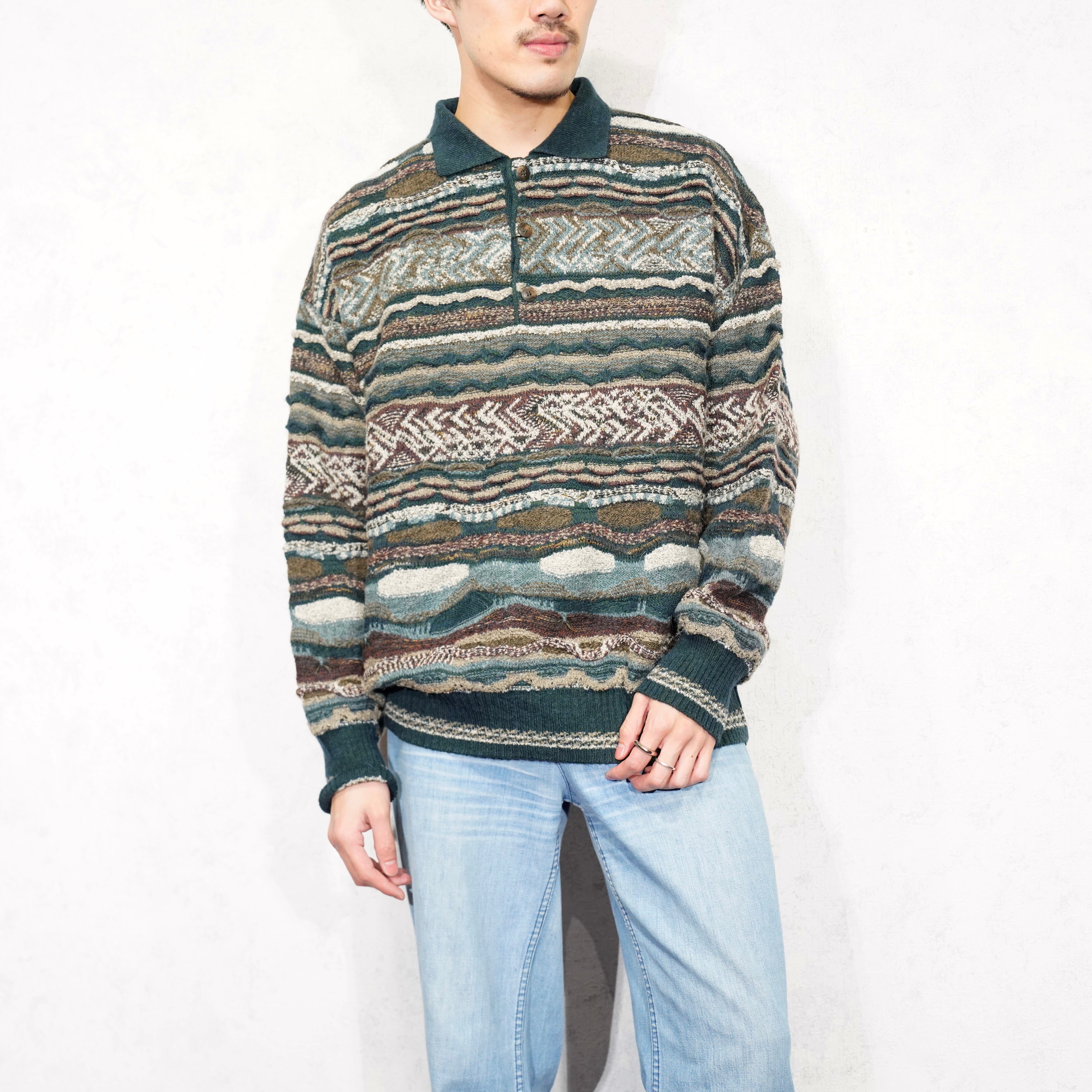 *SPECIAL ITEM* EU VINTAGE SEGRETO 3D KNIT POLO SHIRT MADE IN ITALY/ヨーロッパ古着3Dニットポロシャツ
