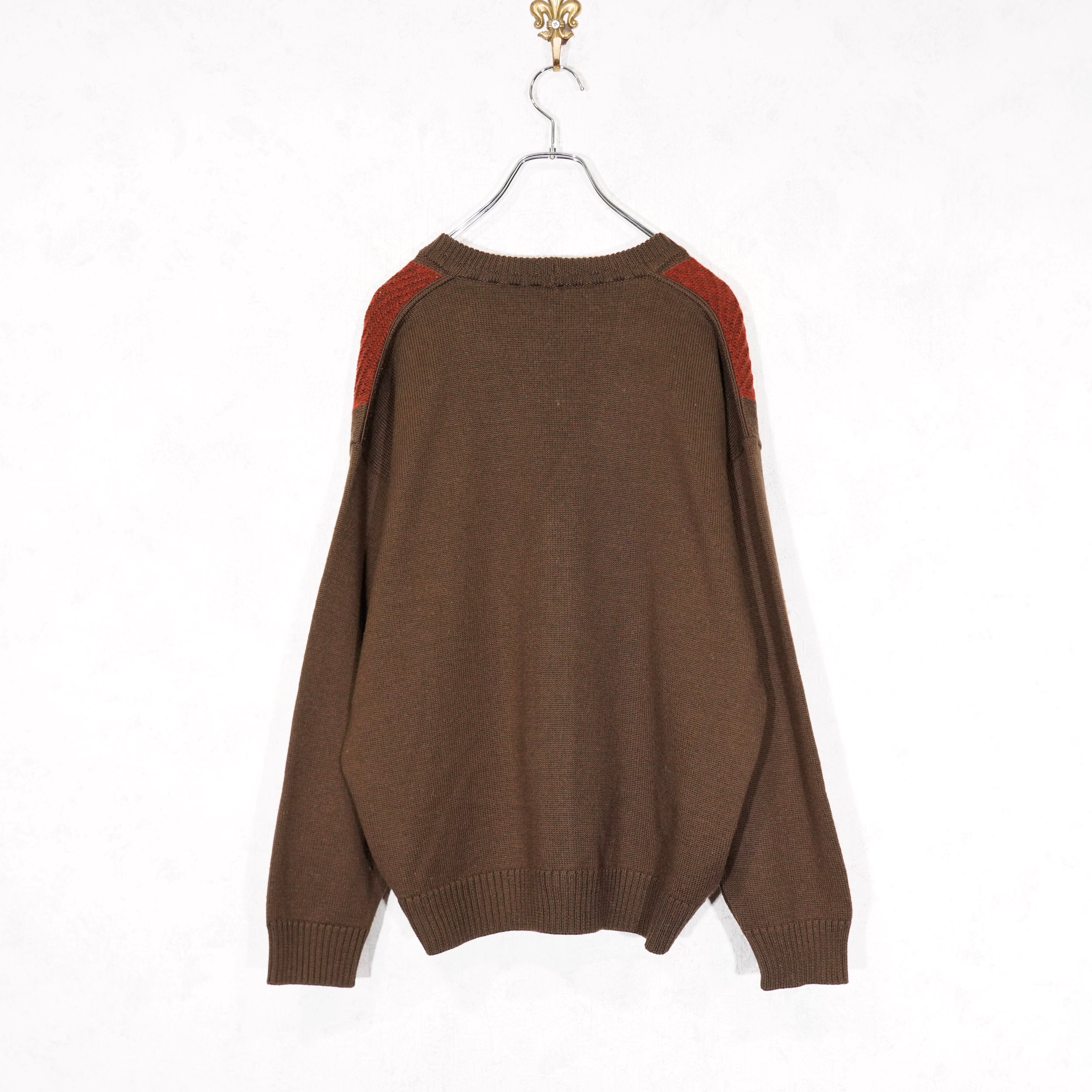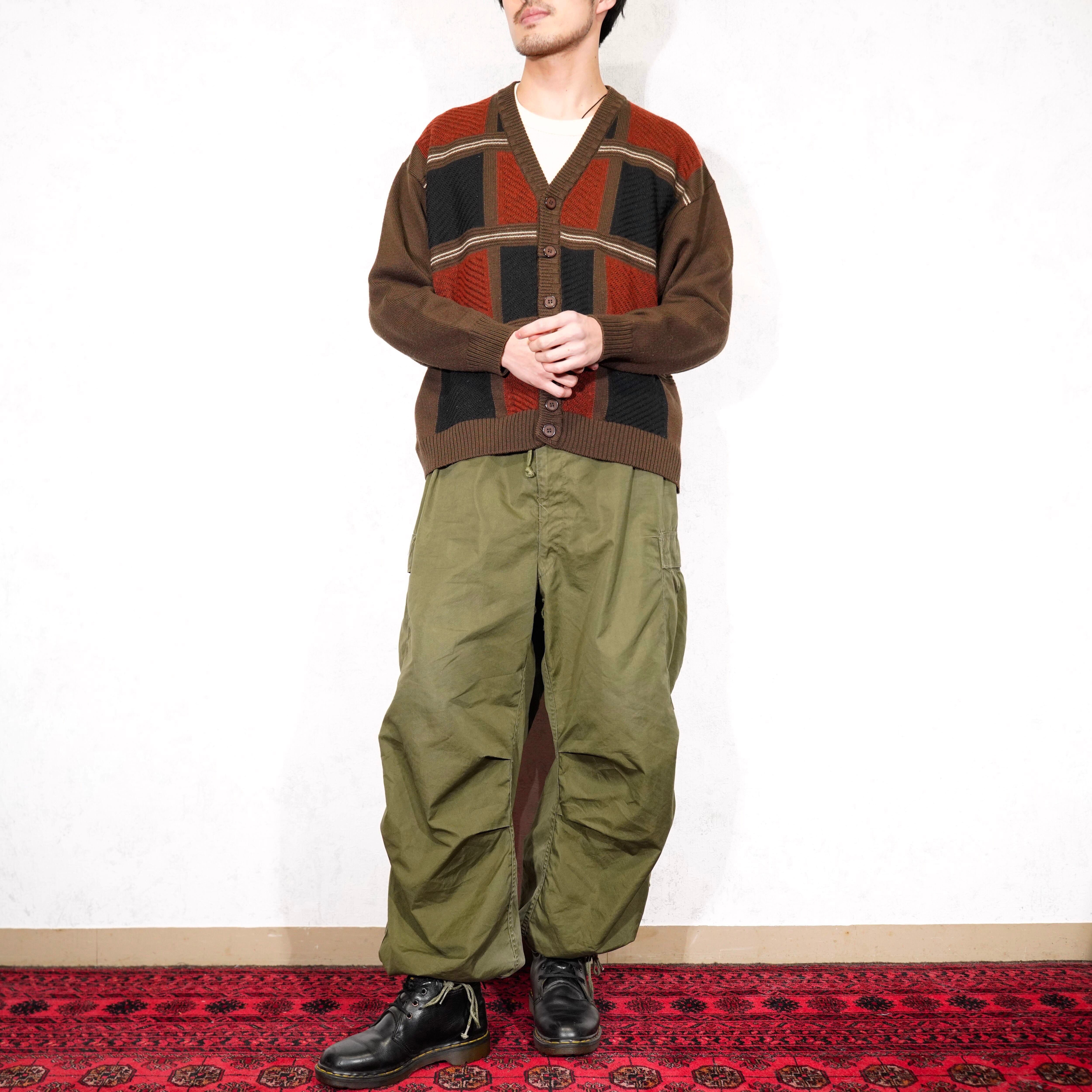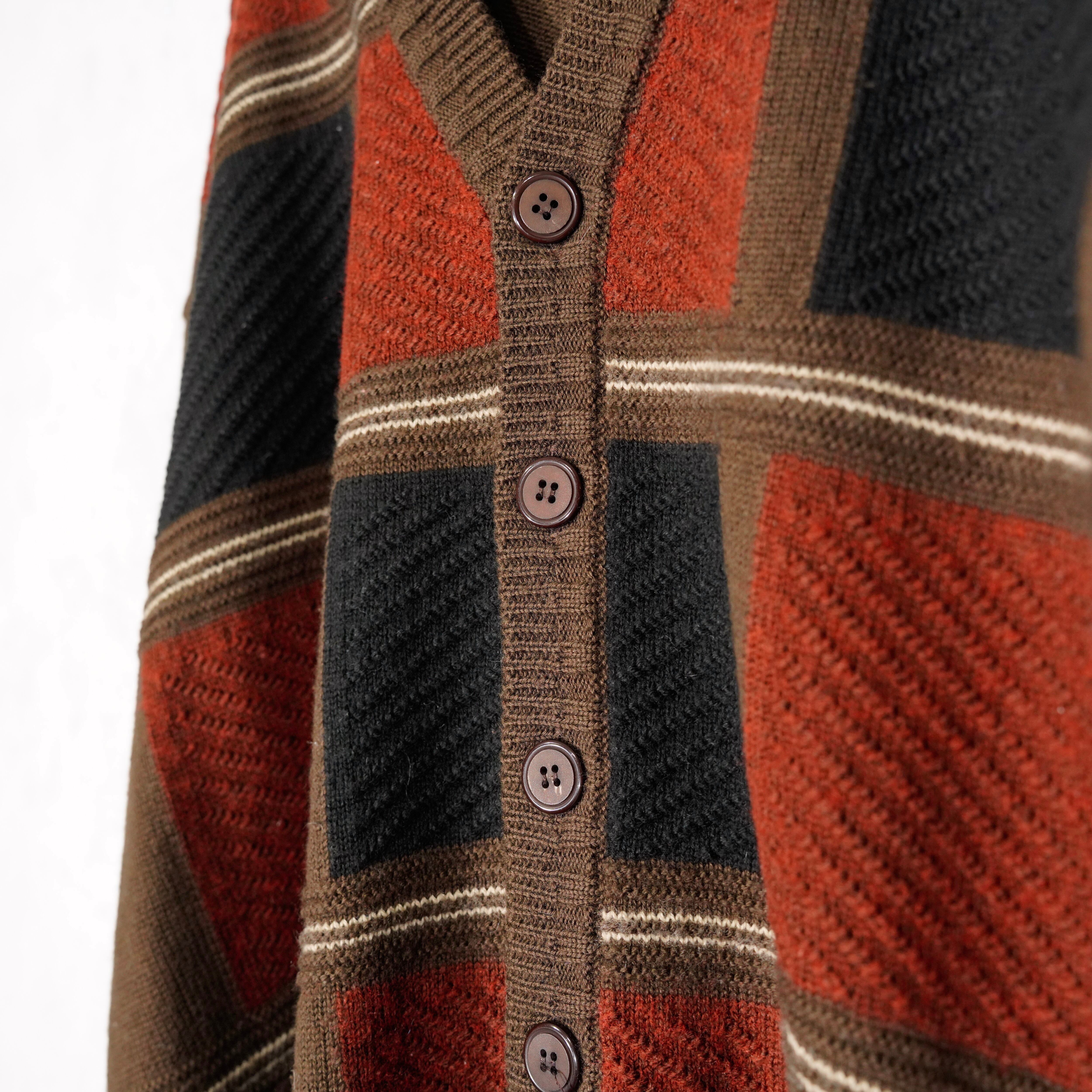 USA VINTAGE BLOCK CHECK PATTERNED DESIGN KNIT CARDIGAN/アメリカ古着ブロックチェック柄デザインニットカーディガン