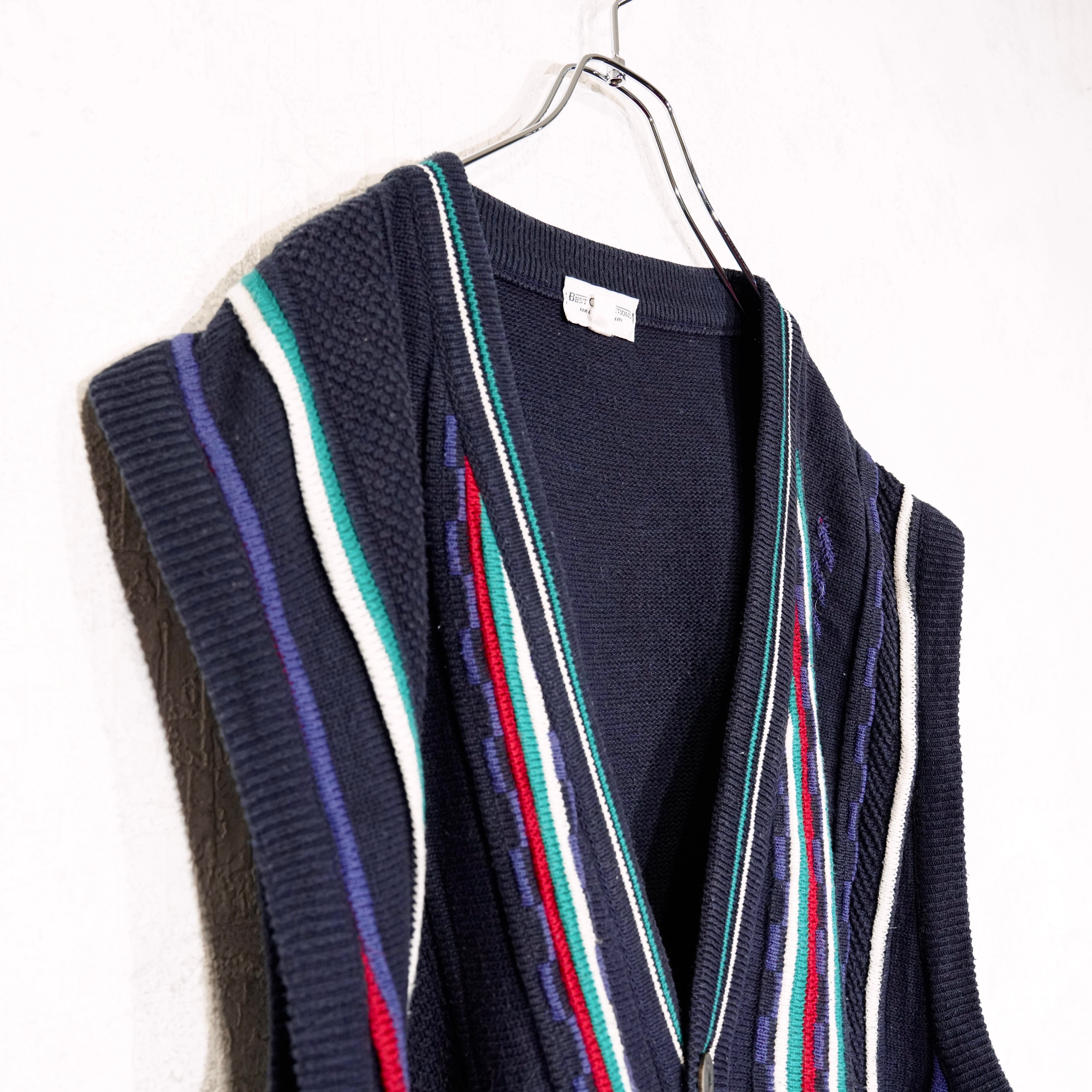EU VINTAGE BEST CONNECTIONS 3D DESIGN COTTON KNIT VEST/ヨーロッパ古着3Dデザインコットンニットベスト