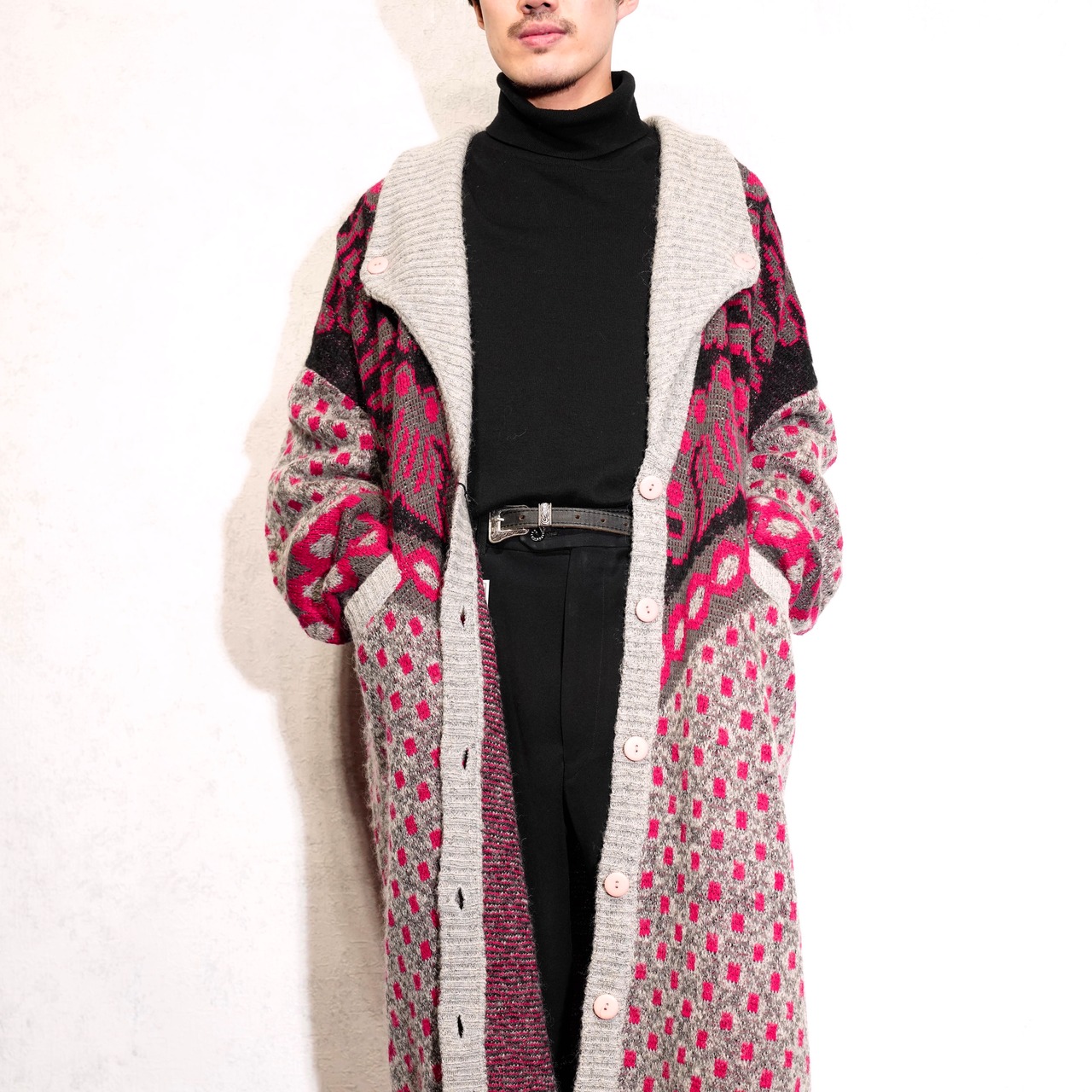 USA VINTAGE CERVELLE PATTERNED DESIGN KNIT COAT/アメリカ古着柄デザインニットコート(ロングカーディガン)