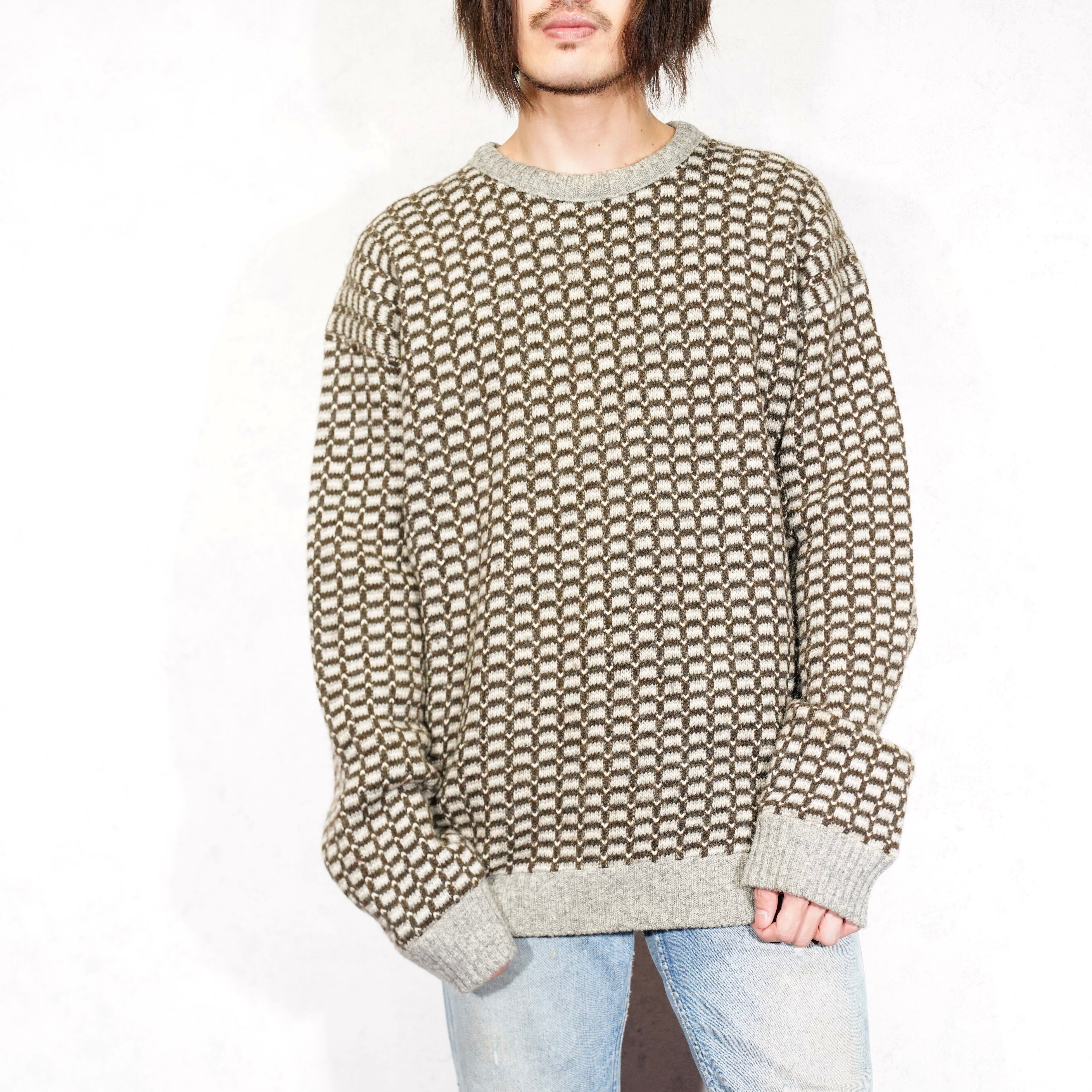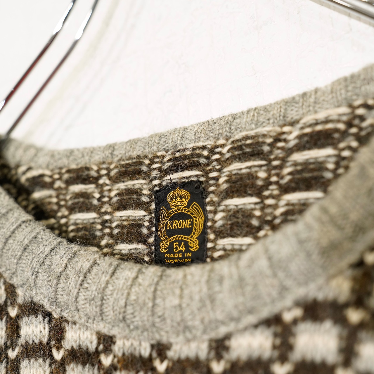 *SPECIAL ITEM* EU VINTAGE KRONE CHECK PATTERNED HEAVY WOOL KNIT MADE IN NORWAY/ヨーロッパ古着チェック柄ヘビーウールニット