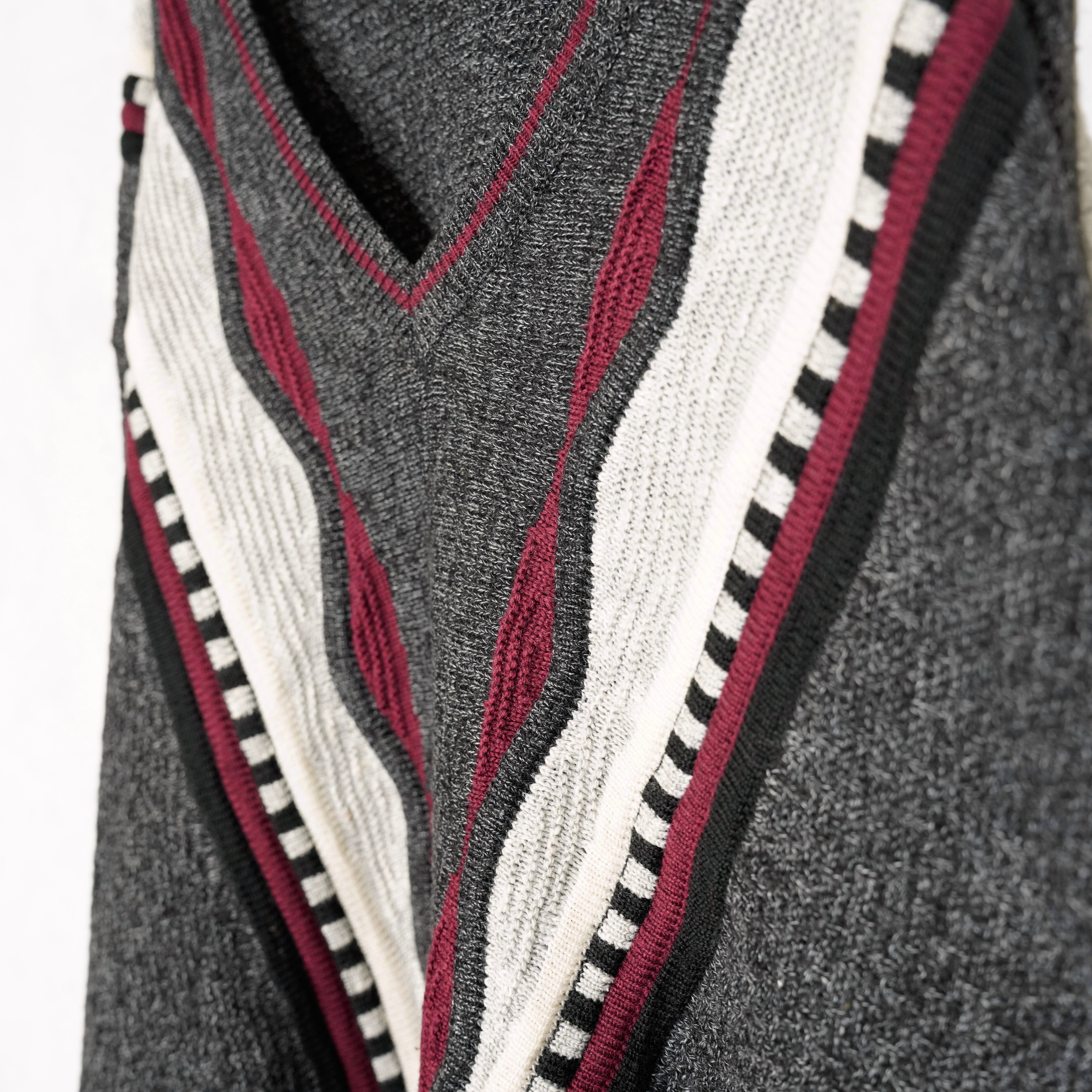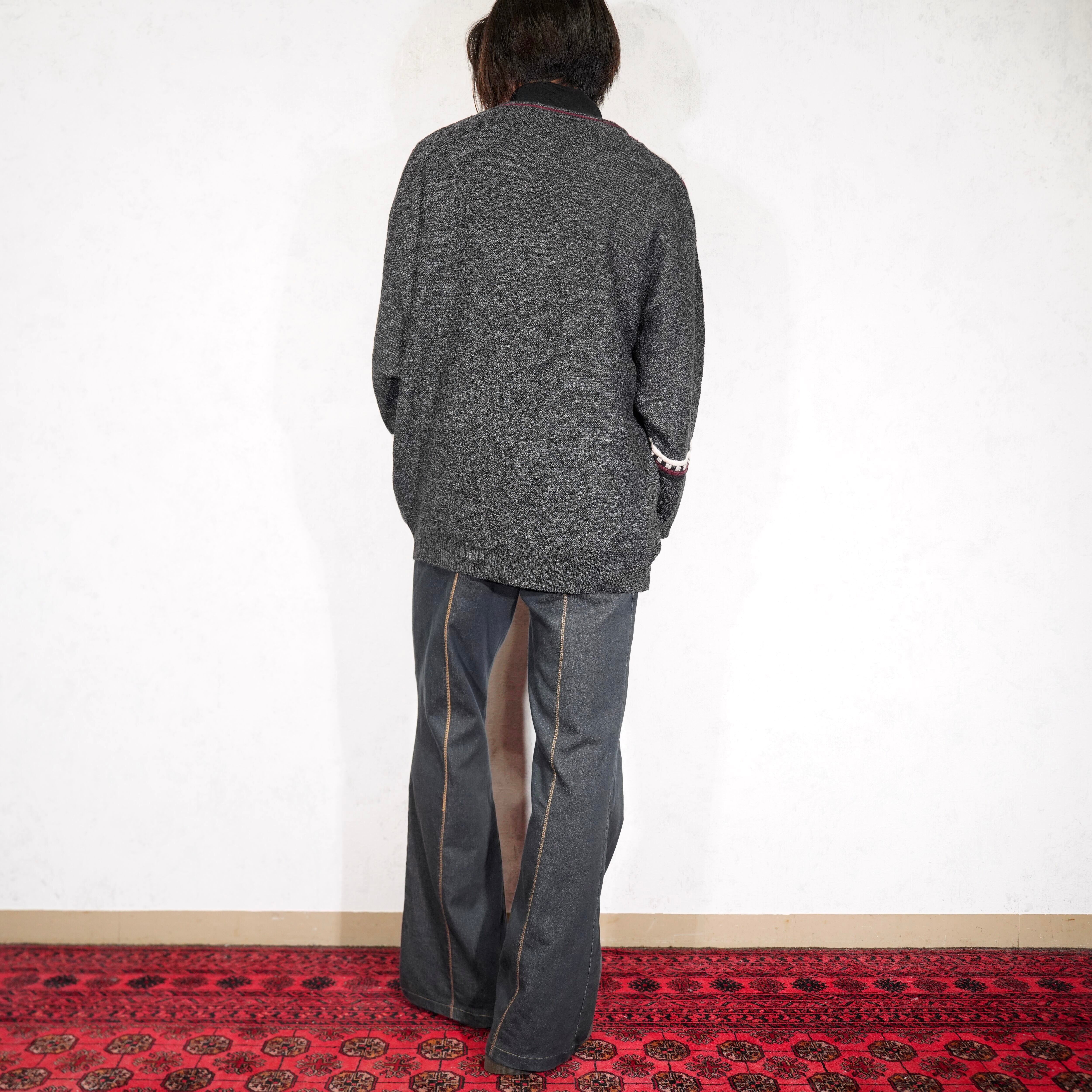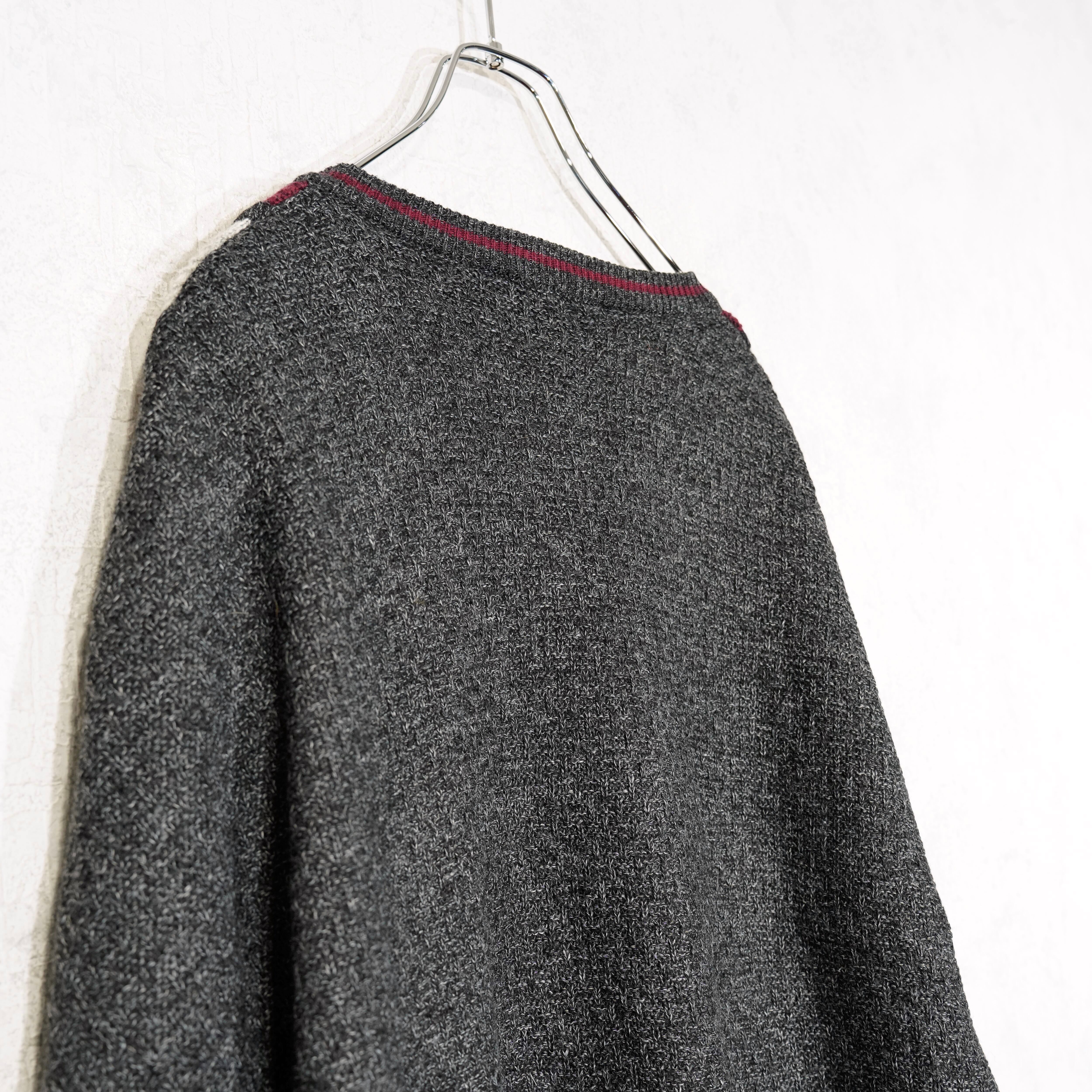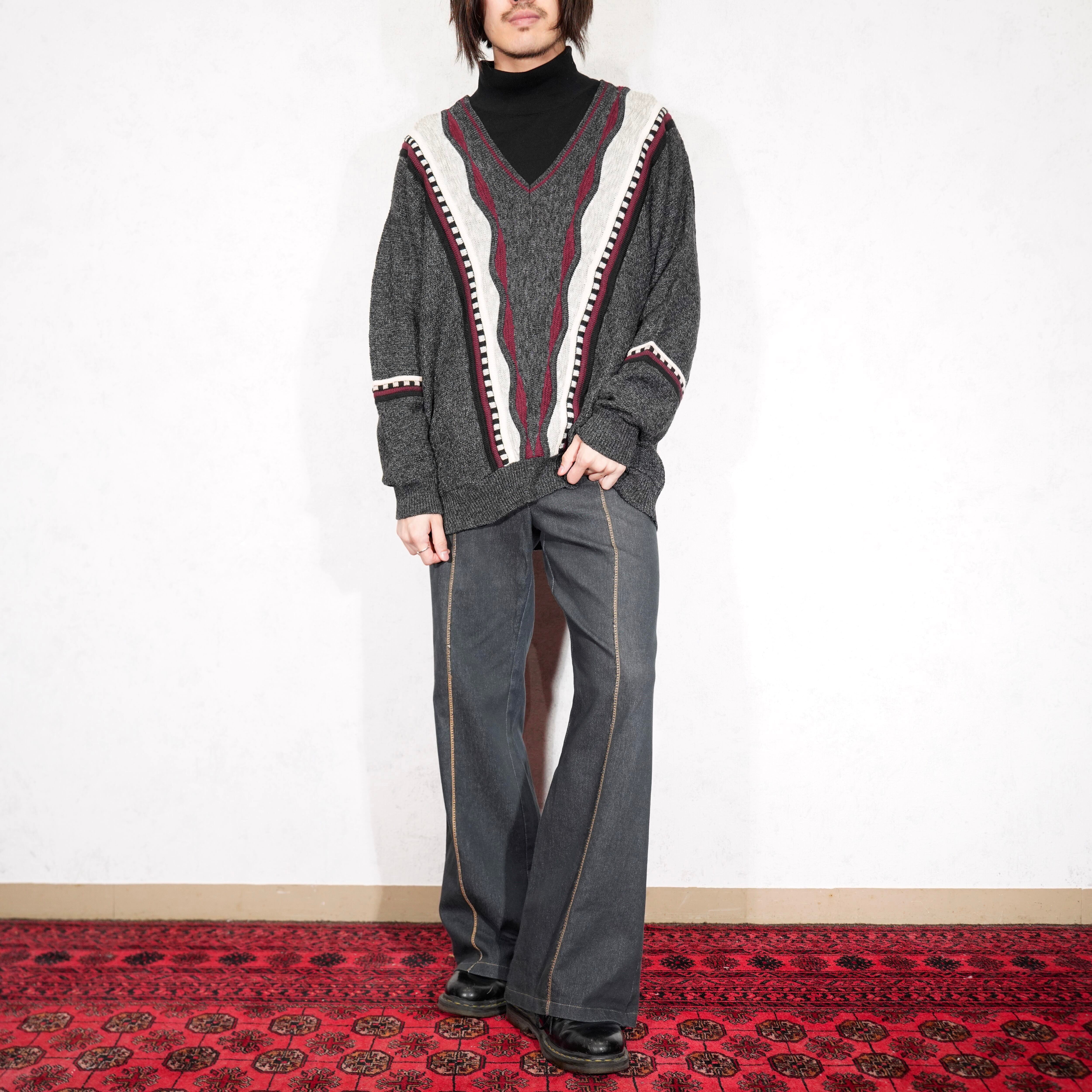 EU VINTAGE WORLD OF MAN'S FASHION 3D V NECK DESIGN KNIT/ヨーロッパ古着3DVネックデザインニット