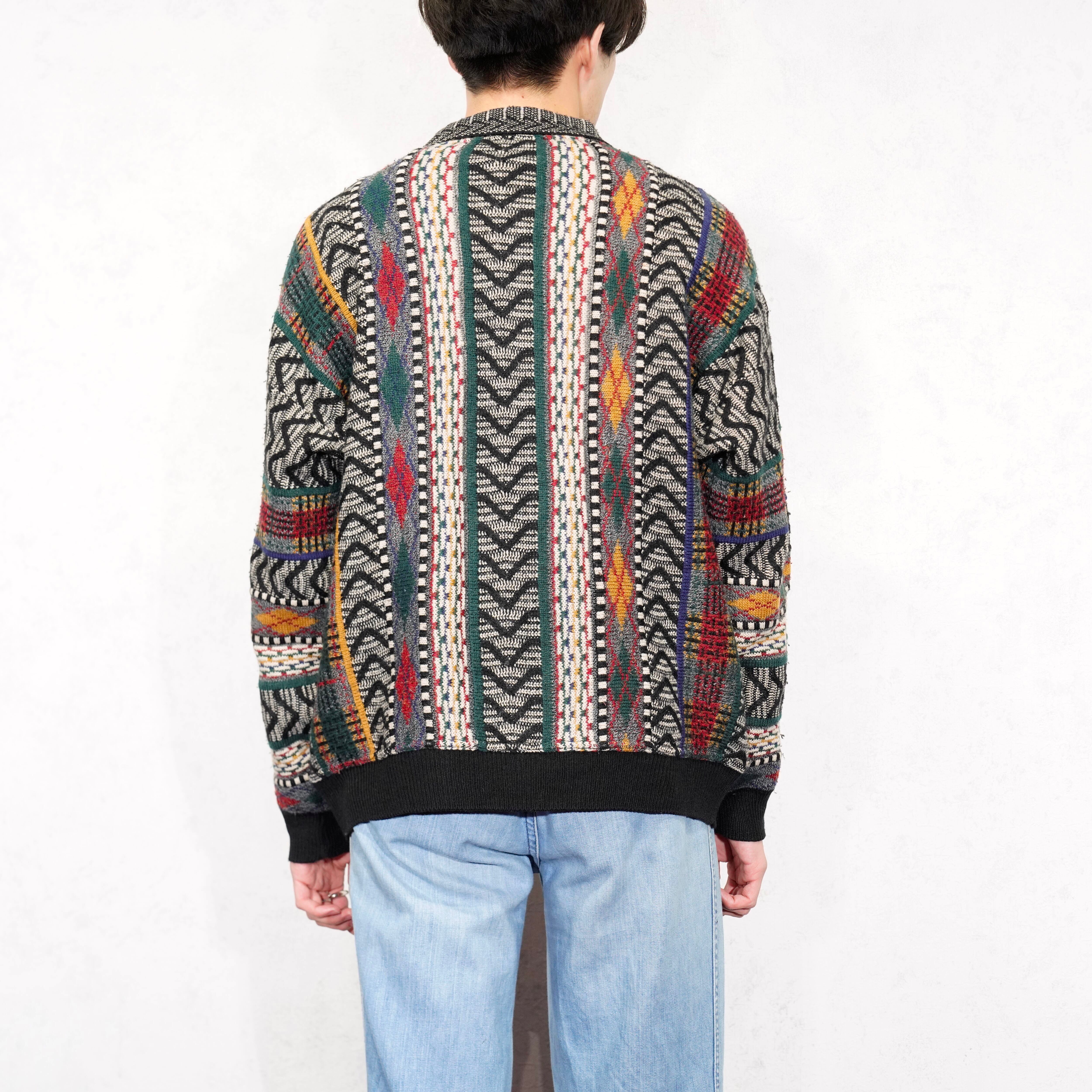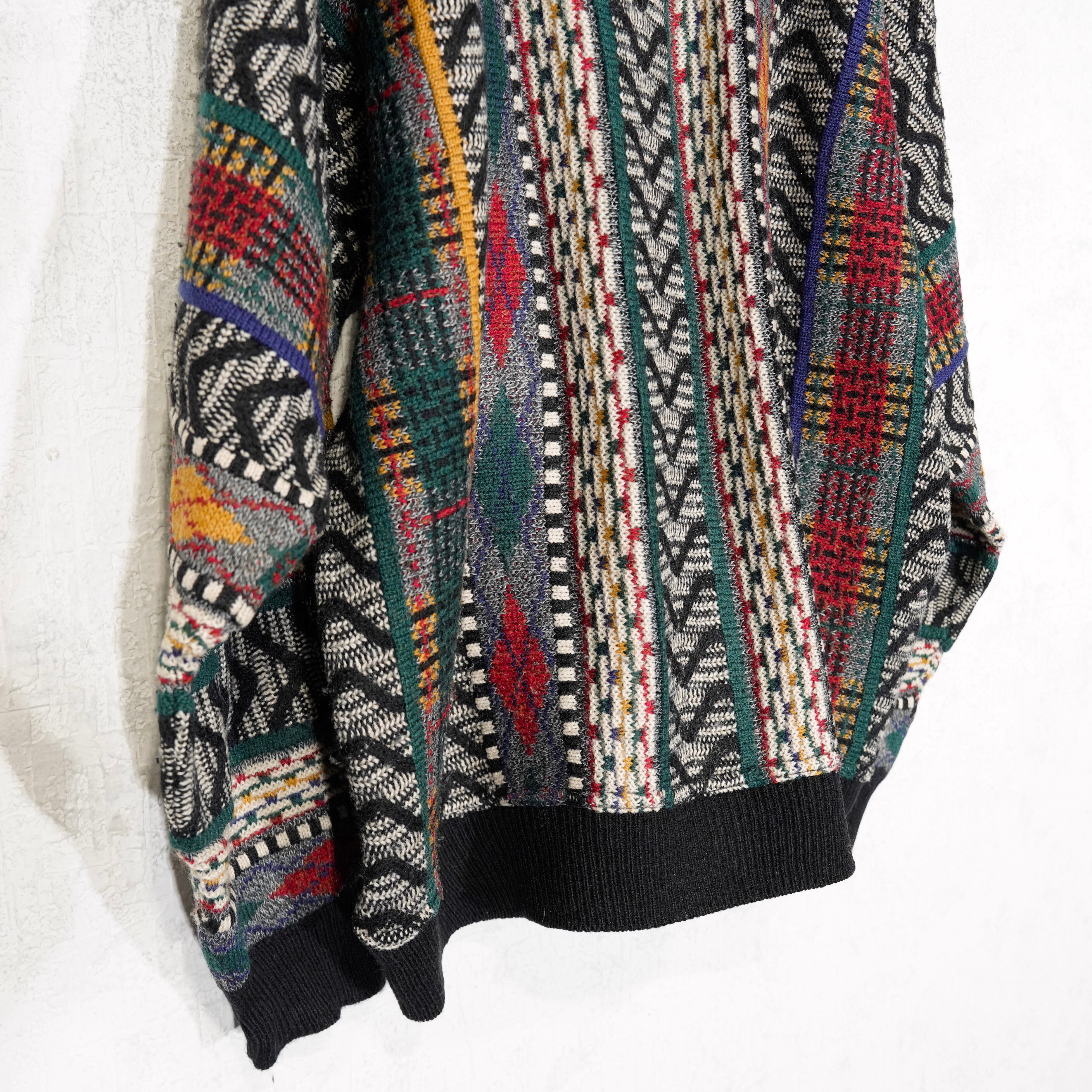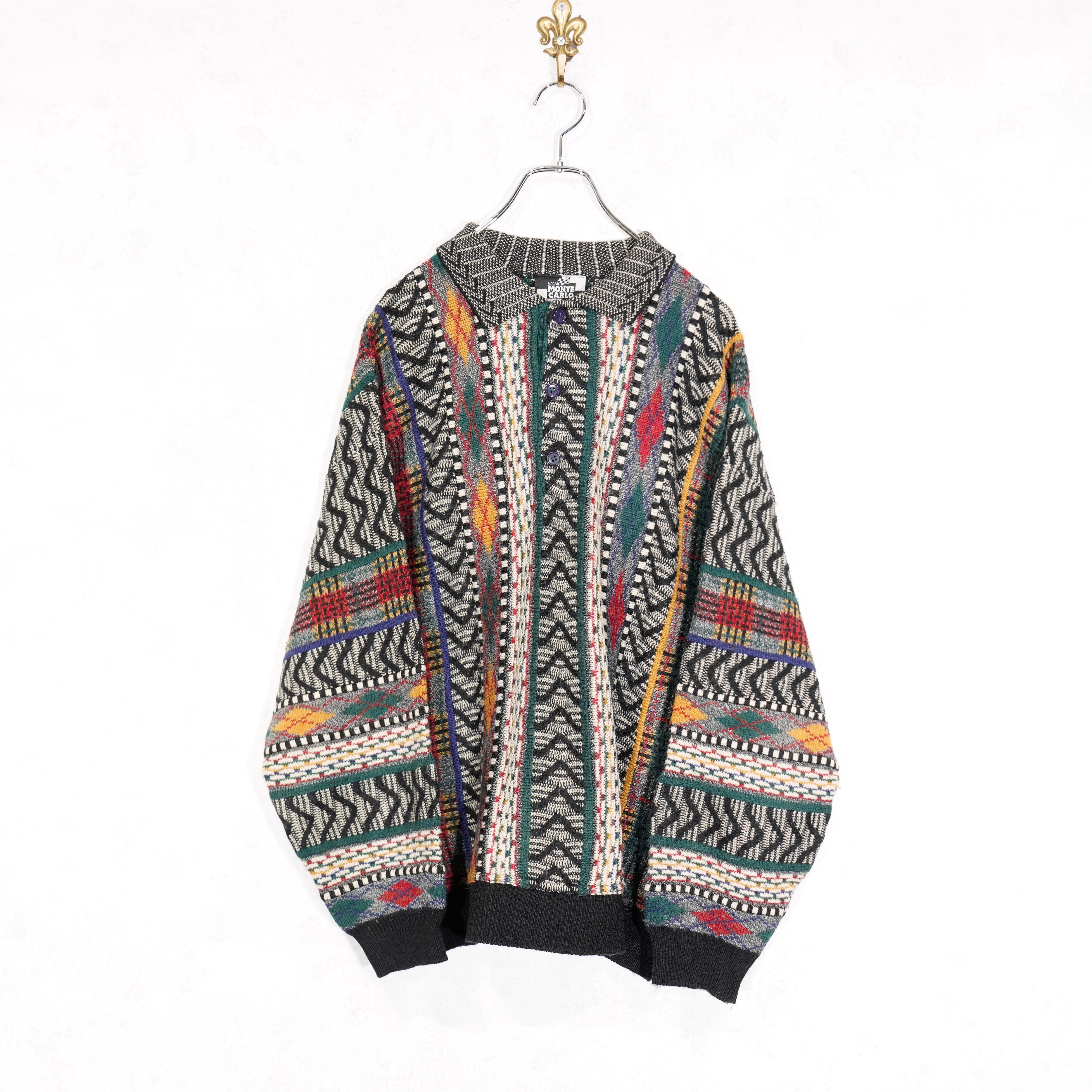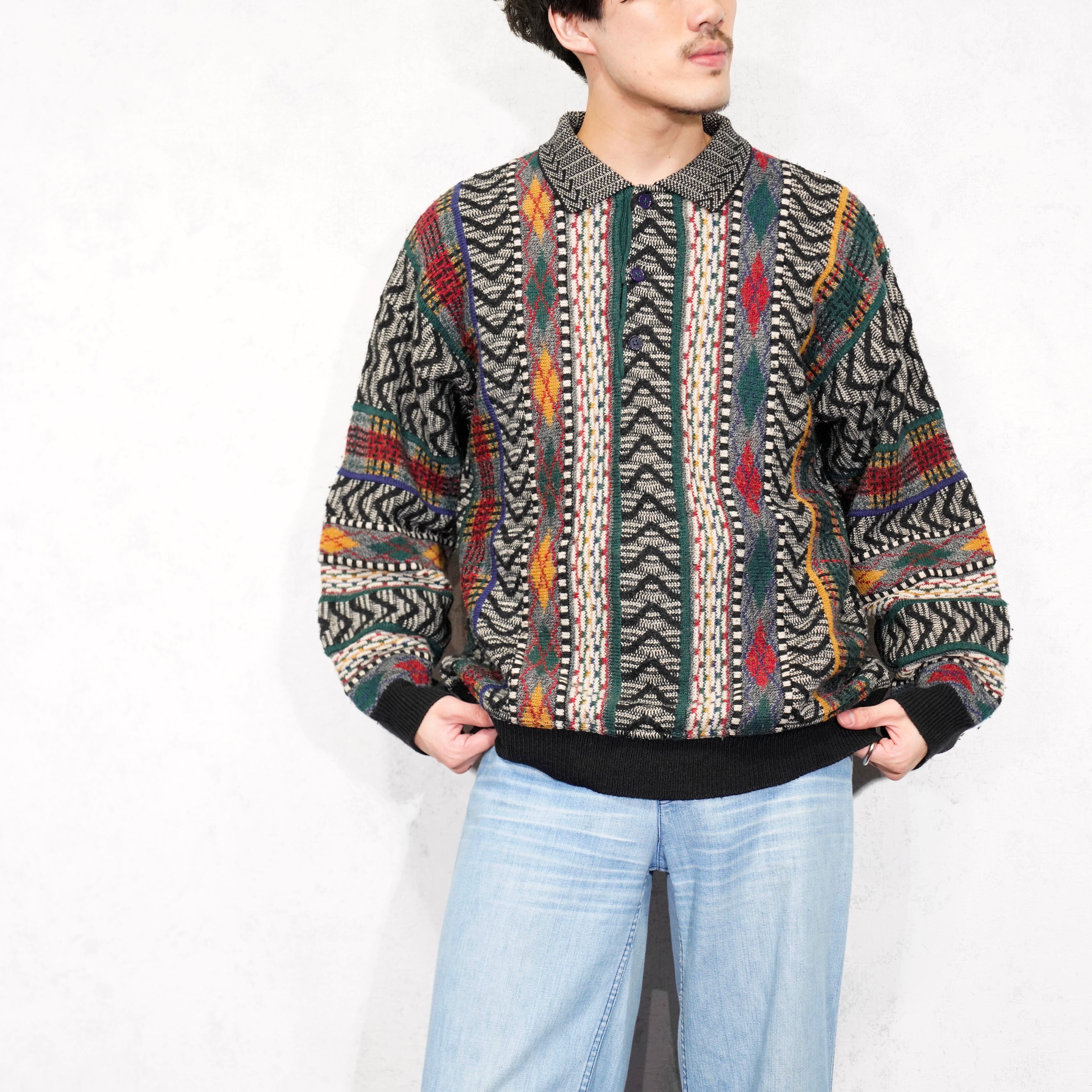 *SPECIAL ITEM* EU VINTAGE MONTE CARLO PATTERNED DESIGN 3D KNIT POLO SHIRT/ヨーロッパ古着柄デザイン3Dニットポロシャツ