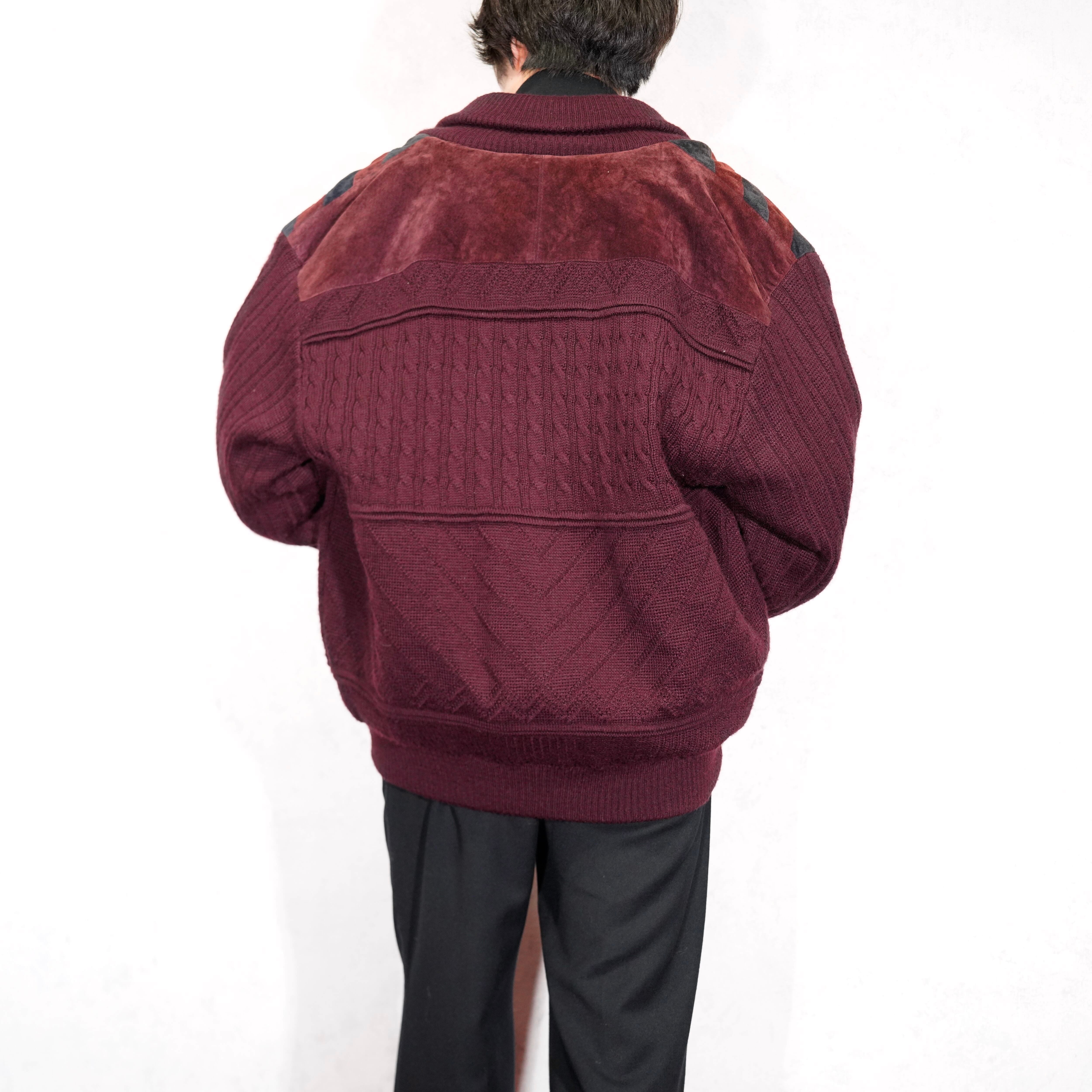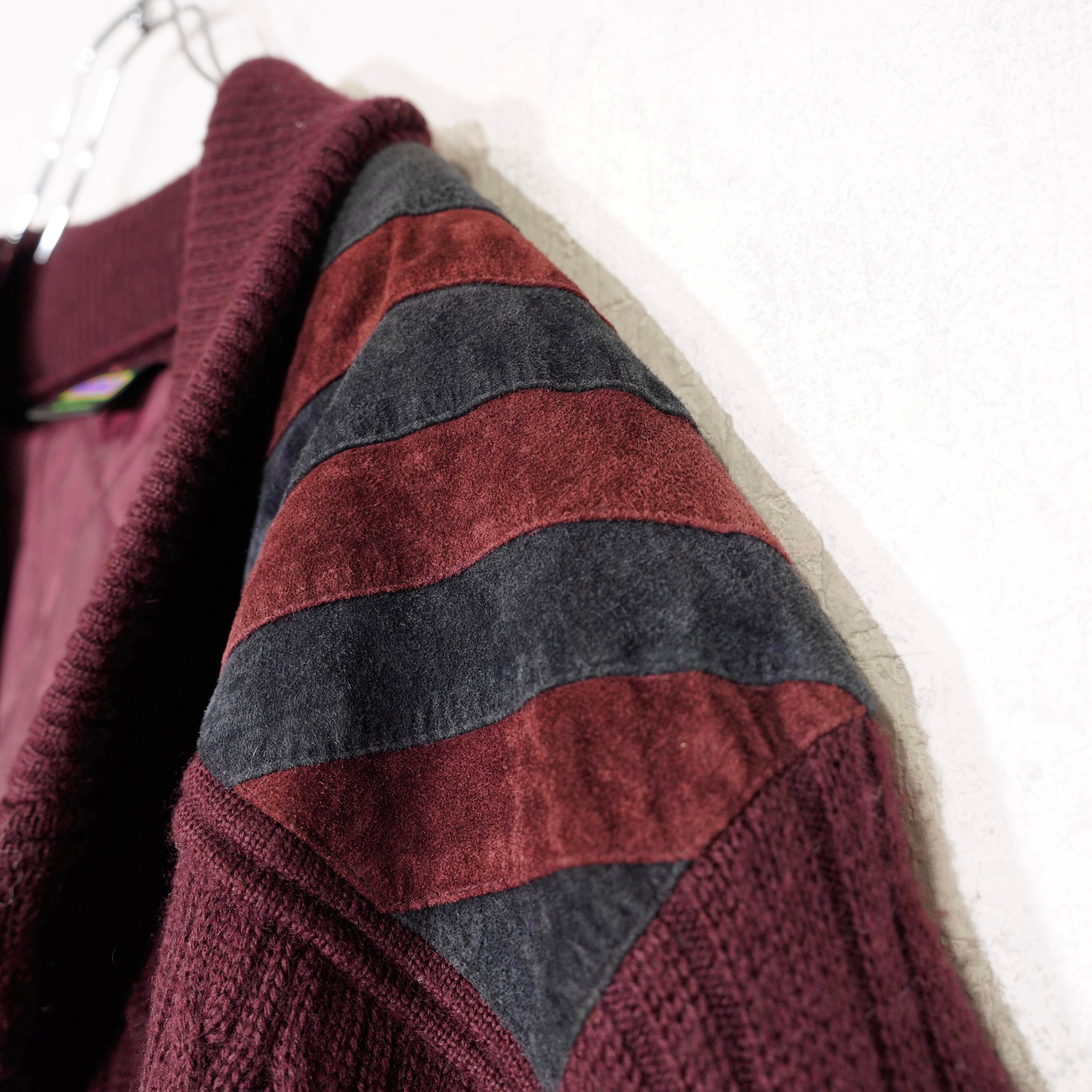 EU VINTAGE Westbury LEATHER SHOULDER DESIGN KNIT BLOUSON/ヨーロッパ古着レザーショルダーデザインニットブルゾン(カーディガン)
