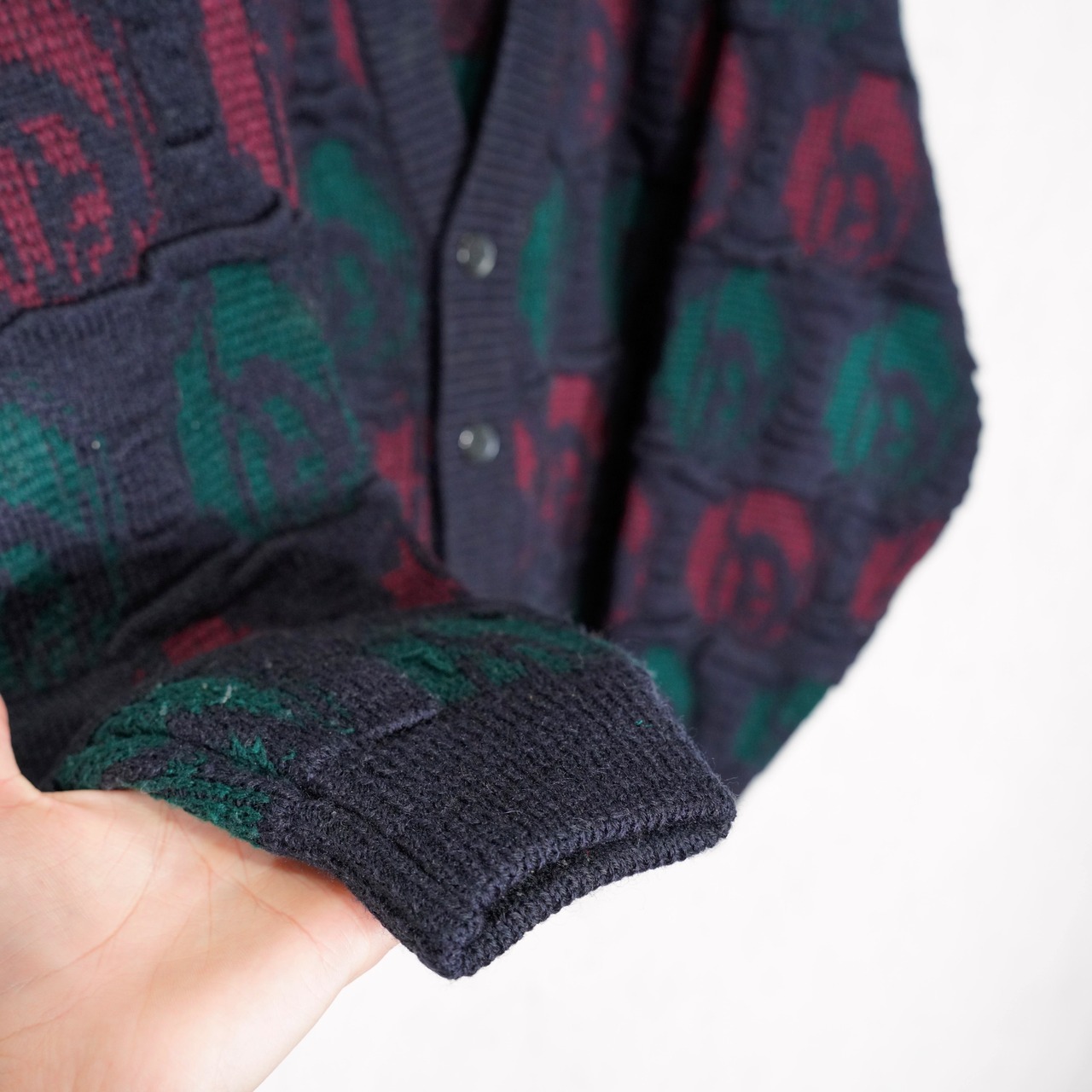 USA VINTAGE jed CREASE FINISH DESIGN WOOL KNIT CARDIGAN/アメリカ古着シワ加工デザインウールニットカーディガン