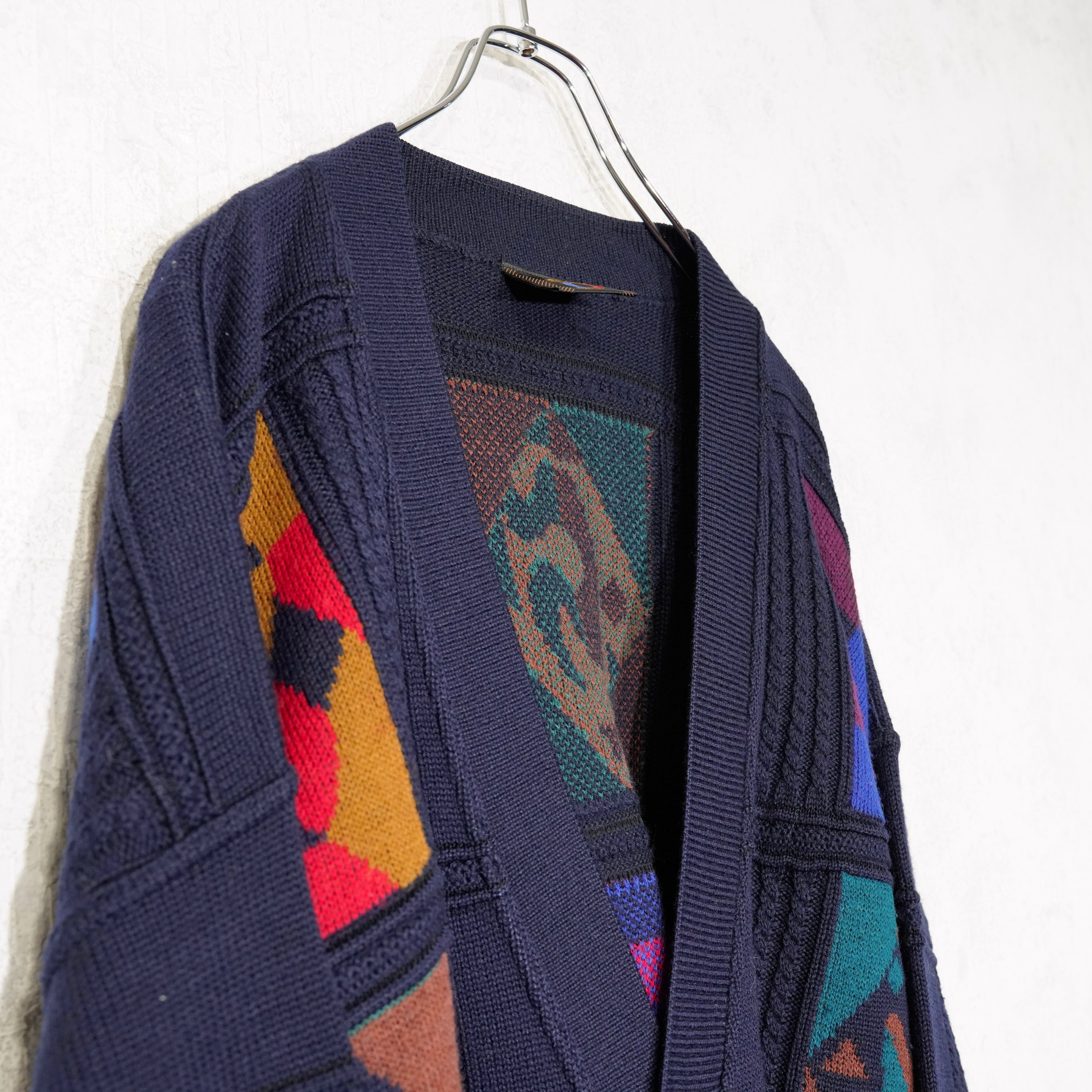 EU VINTAGE BAFFO RETRO ARTISTIC PATTERNED DESIGN WOOL KNIT CARDIGAN/ヨーロッパ古着レトロアーティスティックデザインウールニット
