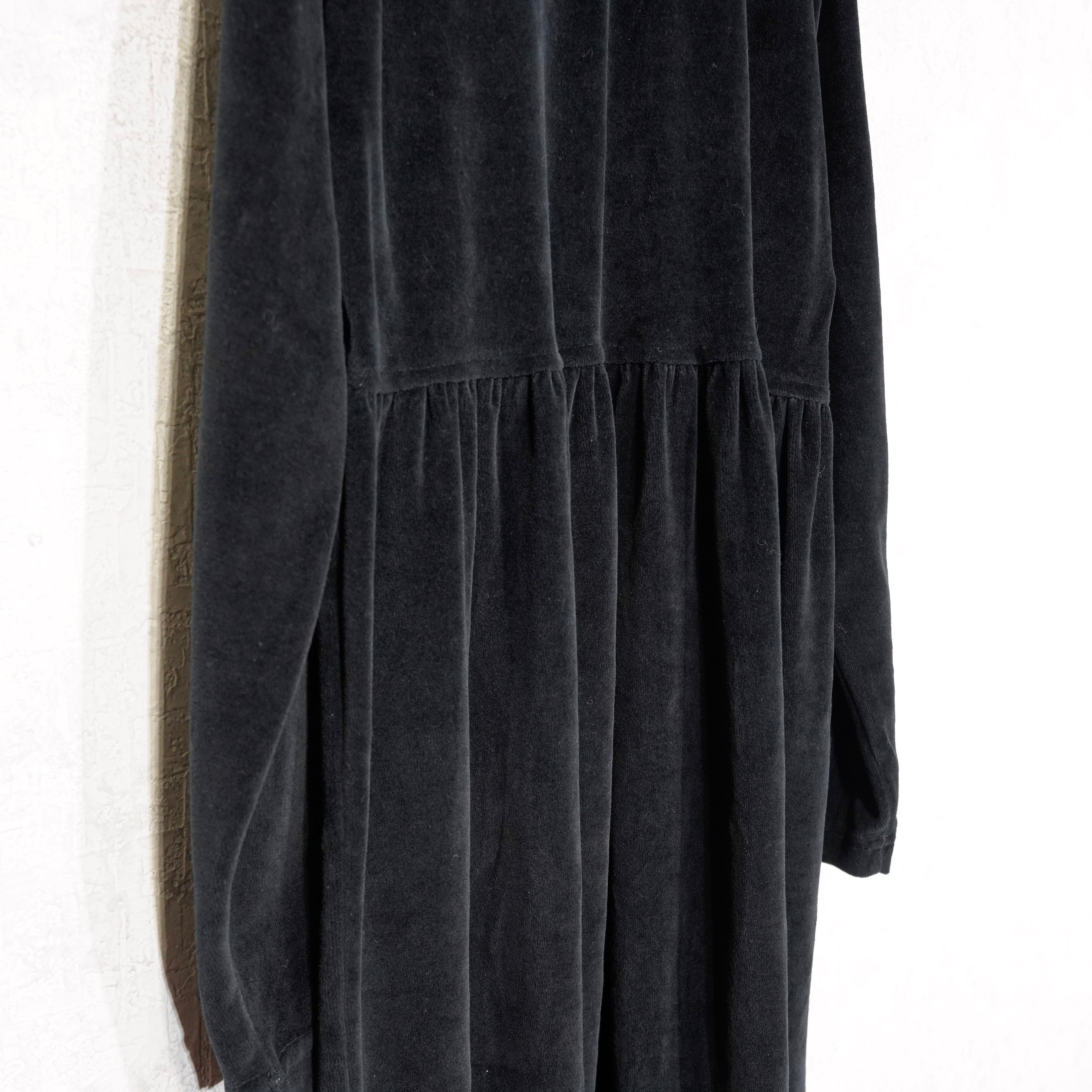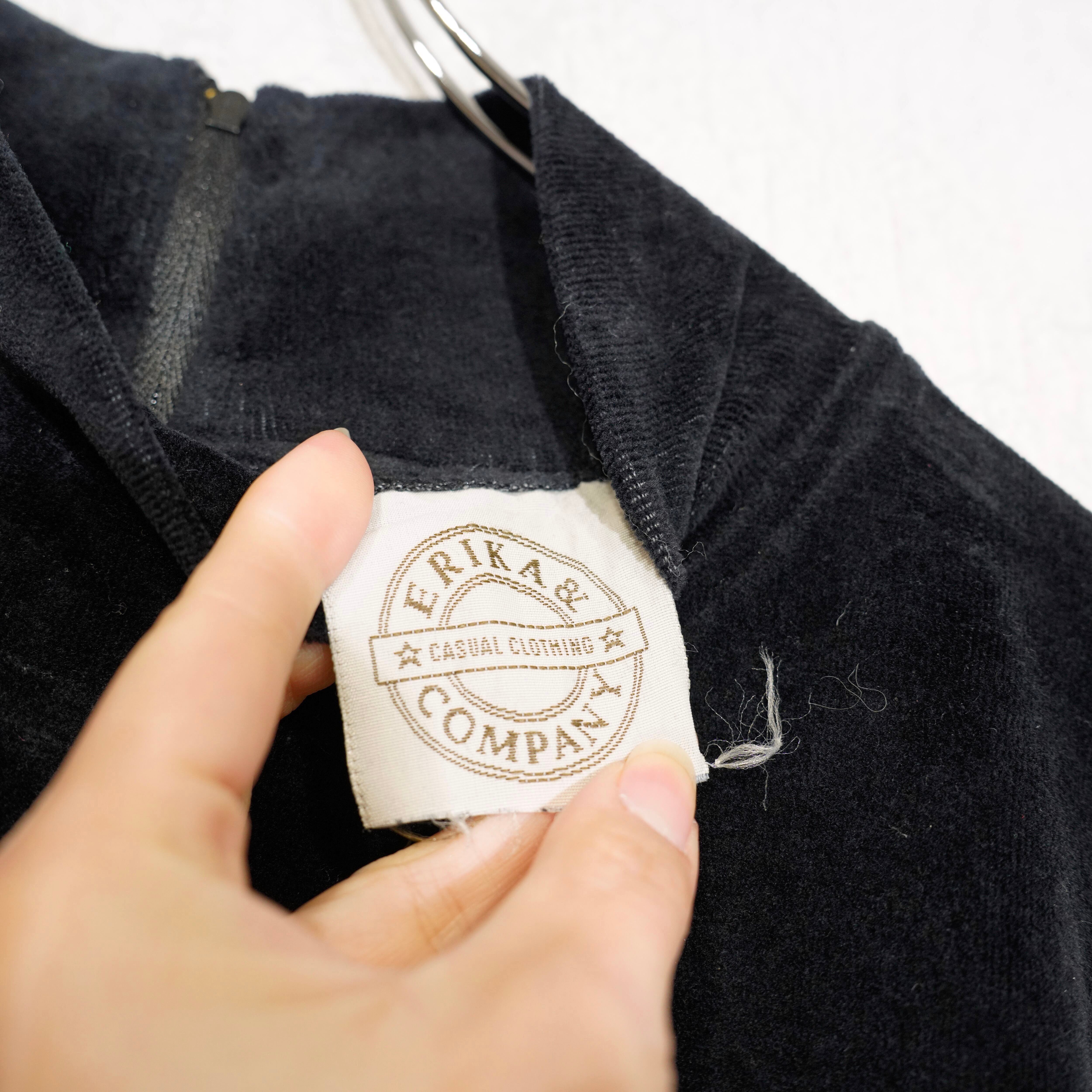 USA VINTAGE ERIKA&COMPANY BLACK COLOR DESIGN VELOUR ONE PIECE/アメリカ古着ブラックカラーデザインベロアワンピース