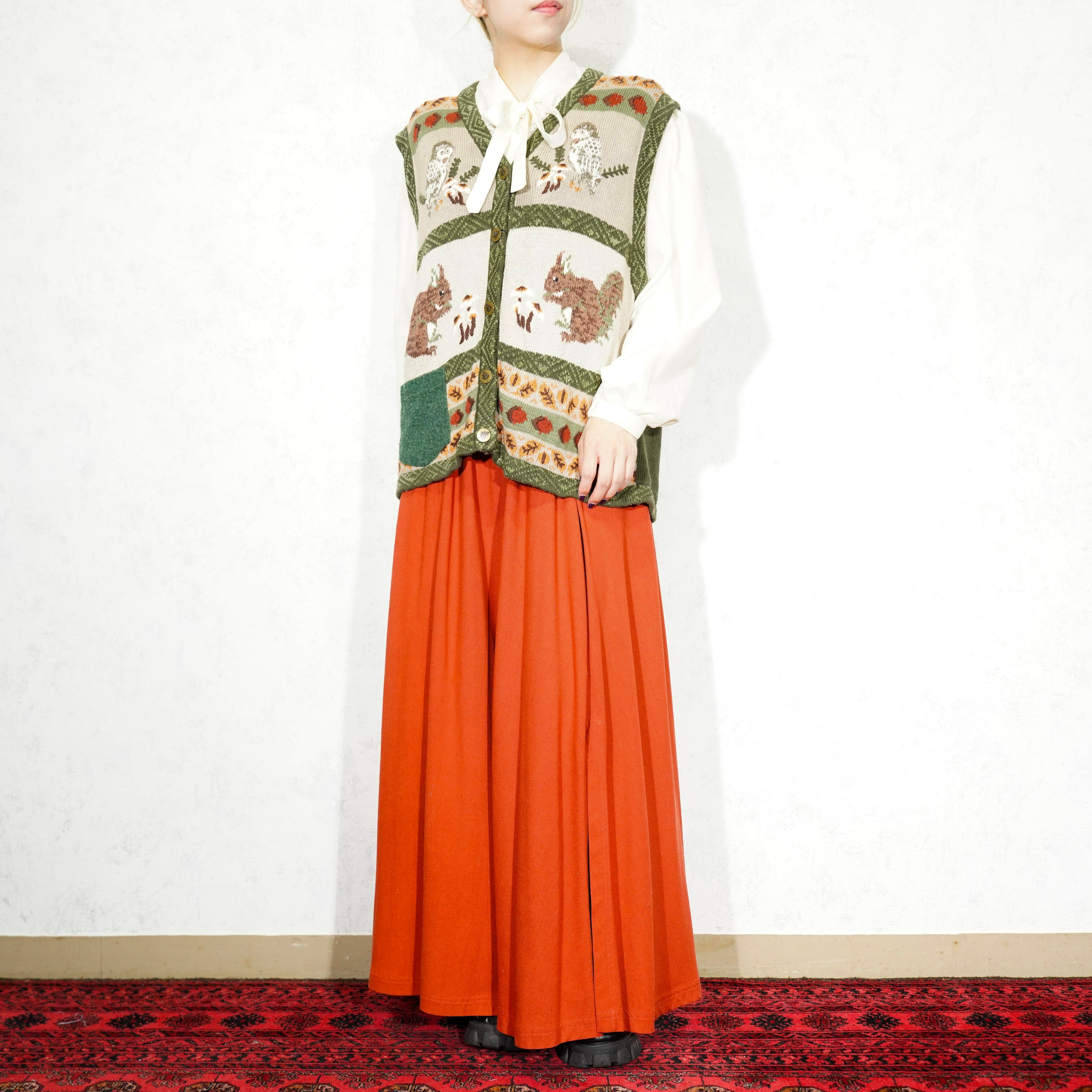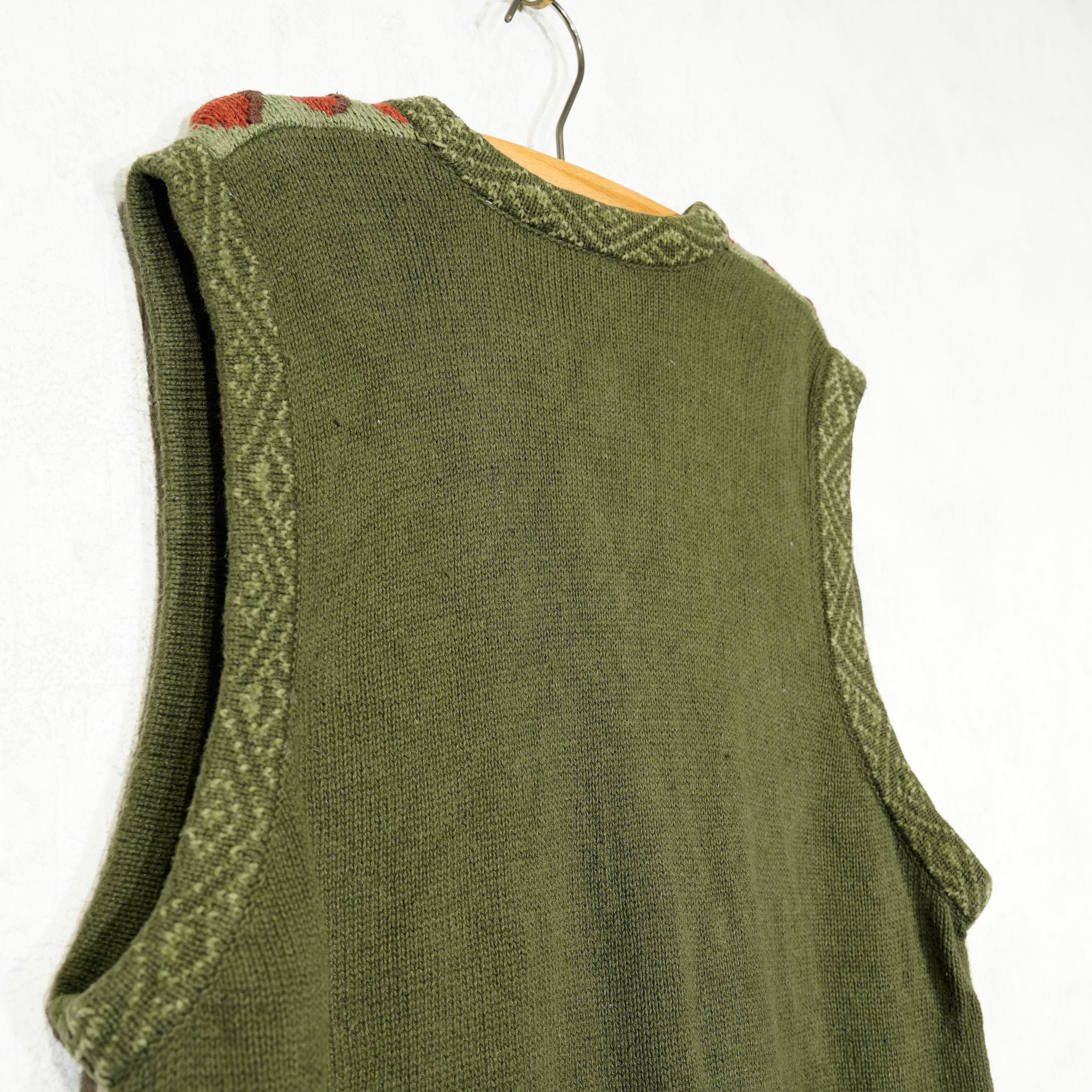 USA VINTAGE NORTHERN REFLECTIONS ANIMAL EMBROIDERY DESIGN COTTON RAMIE KNIT VEST/アメリカ古着アニマル刺繍デザインコットンラミーニットベスト