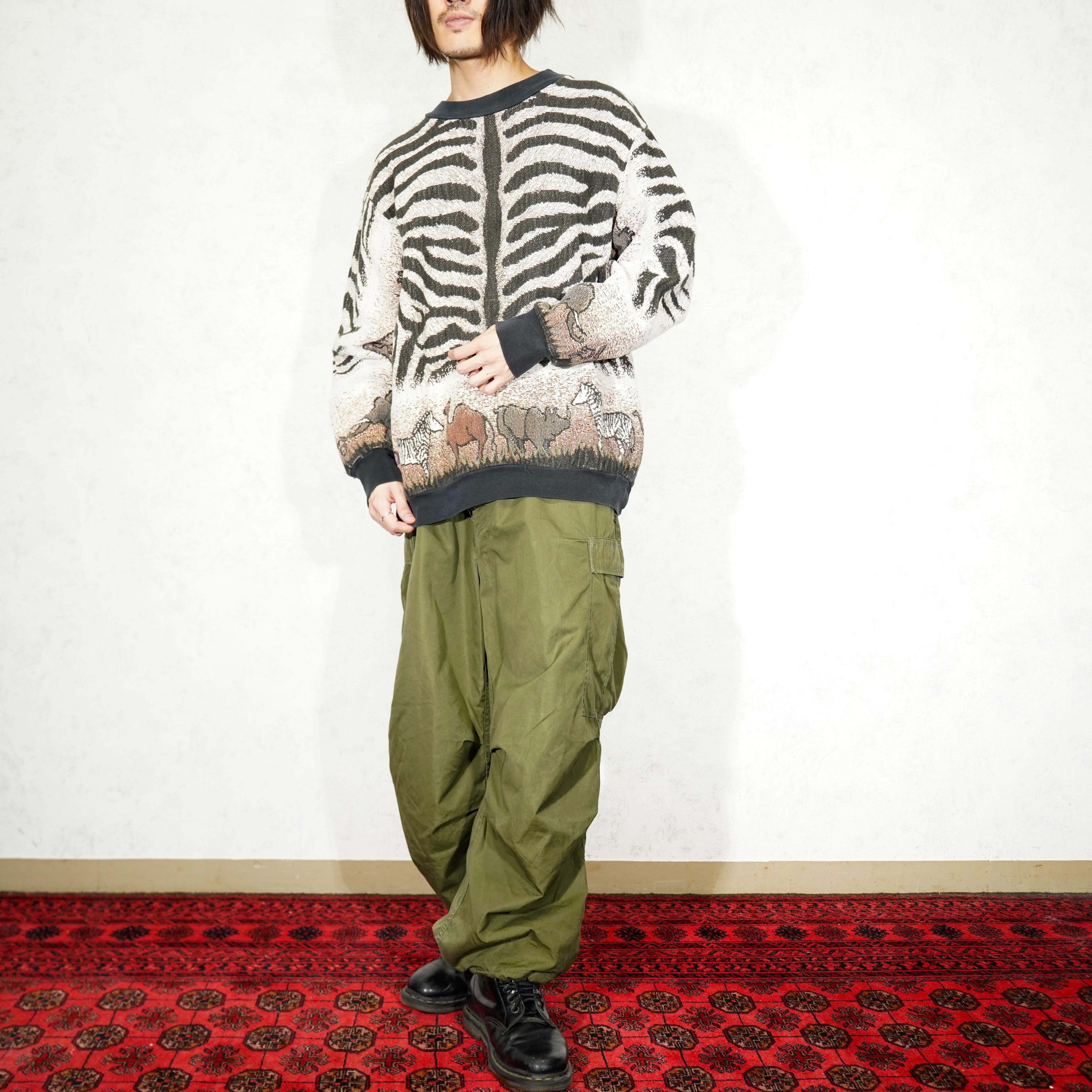 USA VINTAGE SUGAR STREET WEAVERS ANIMAL EMBROIDERY GOBELIN DESIGN PULL OVER/アメリカ古着アニマルゴブラン刺繍デザインプルオーバー(スウェット)
