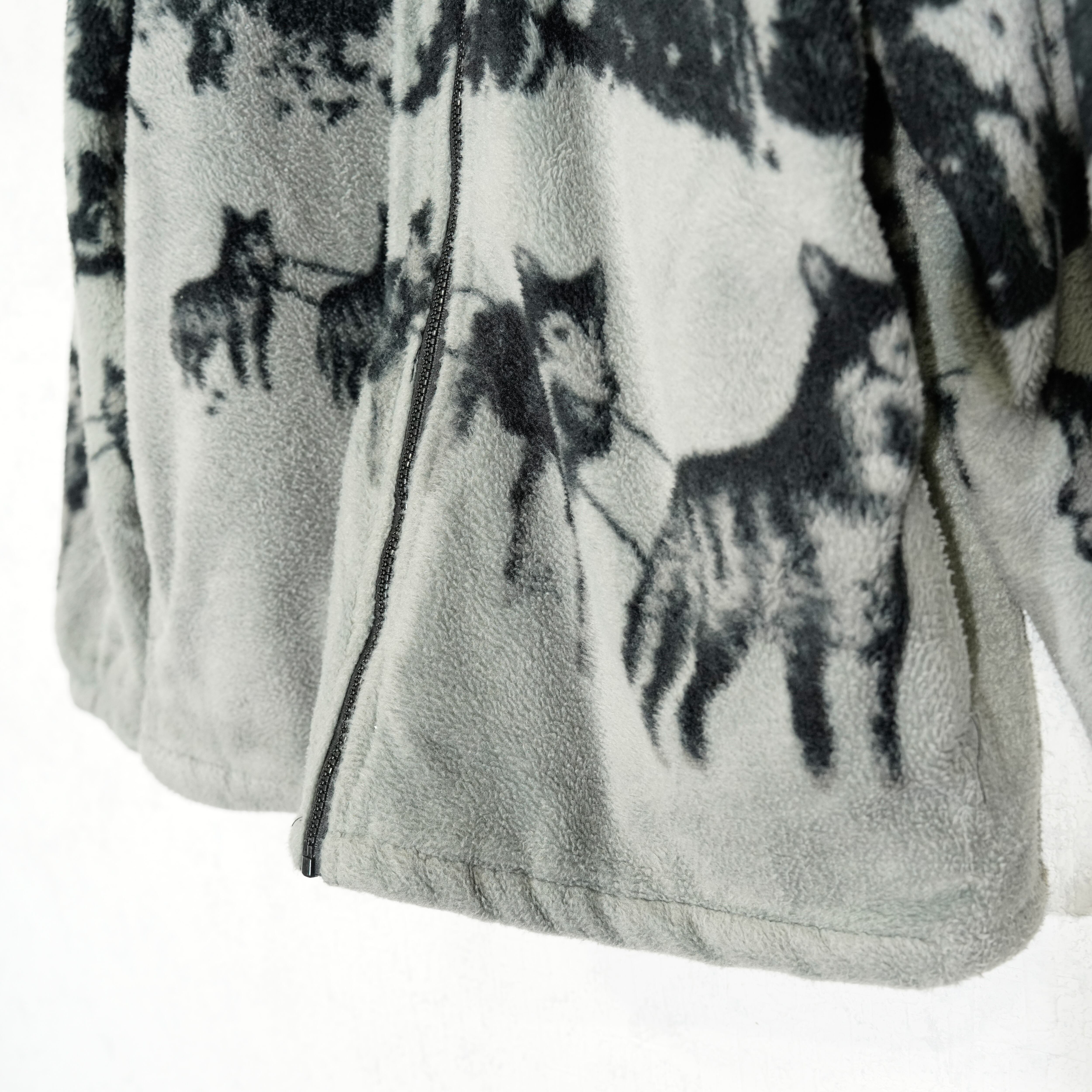 USA VINTAGE WEST END WOLF PRINT DESIGN FLEECE ZIP UP BLOUSON/アメリカ古着オオカミプリントデザインフリースジップアップブルゾン