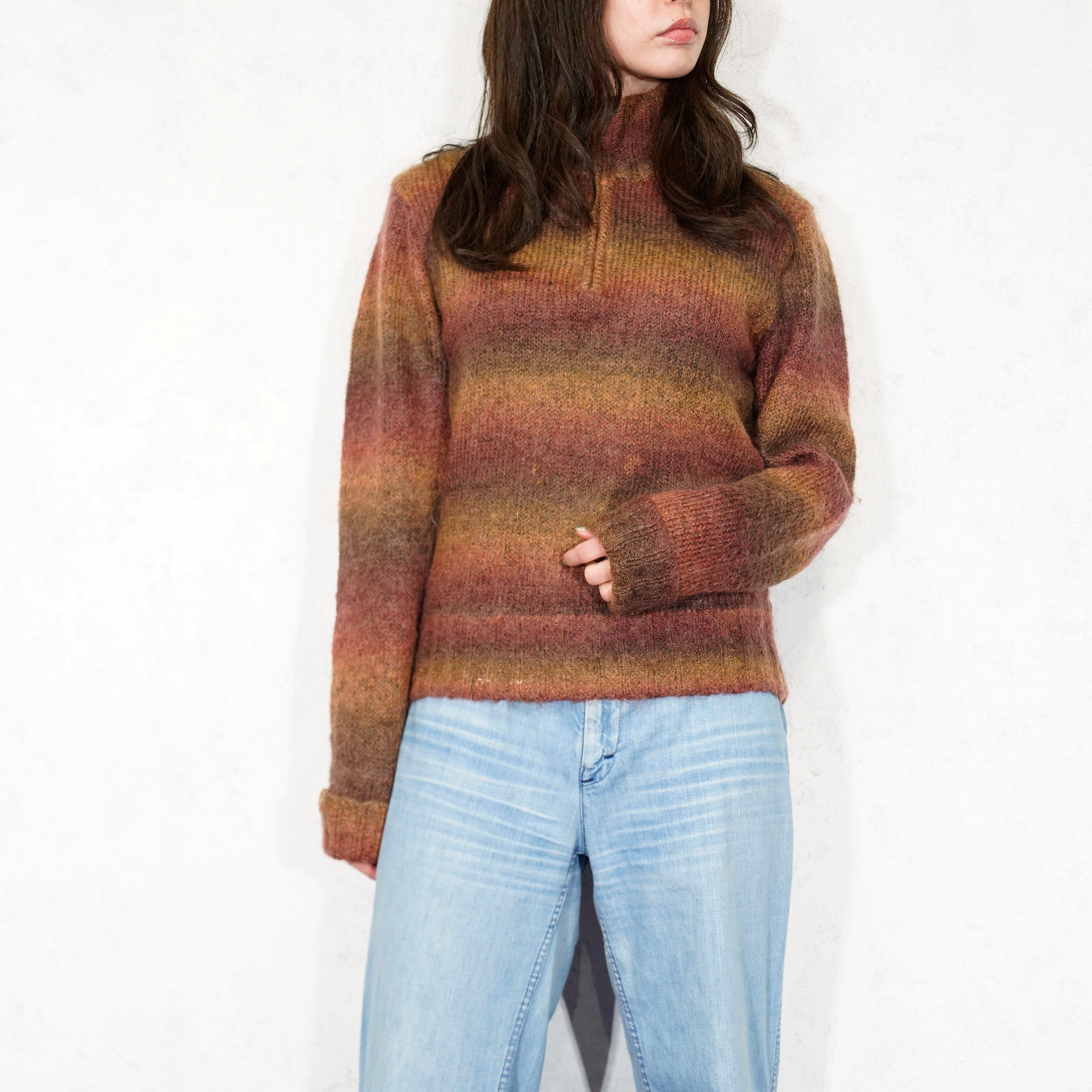 USA VINTAGE EX FFICIO GRADATION BORDER PATTERNED MOHAIR HALF ZIP KNIT/アメリカ古着グラデーションボーダー柄モヘアハーフジップニット