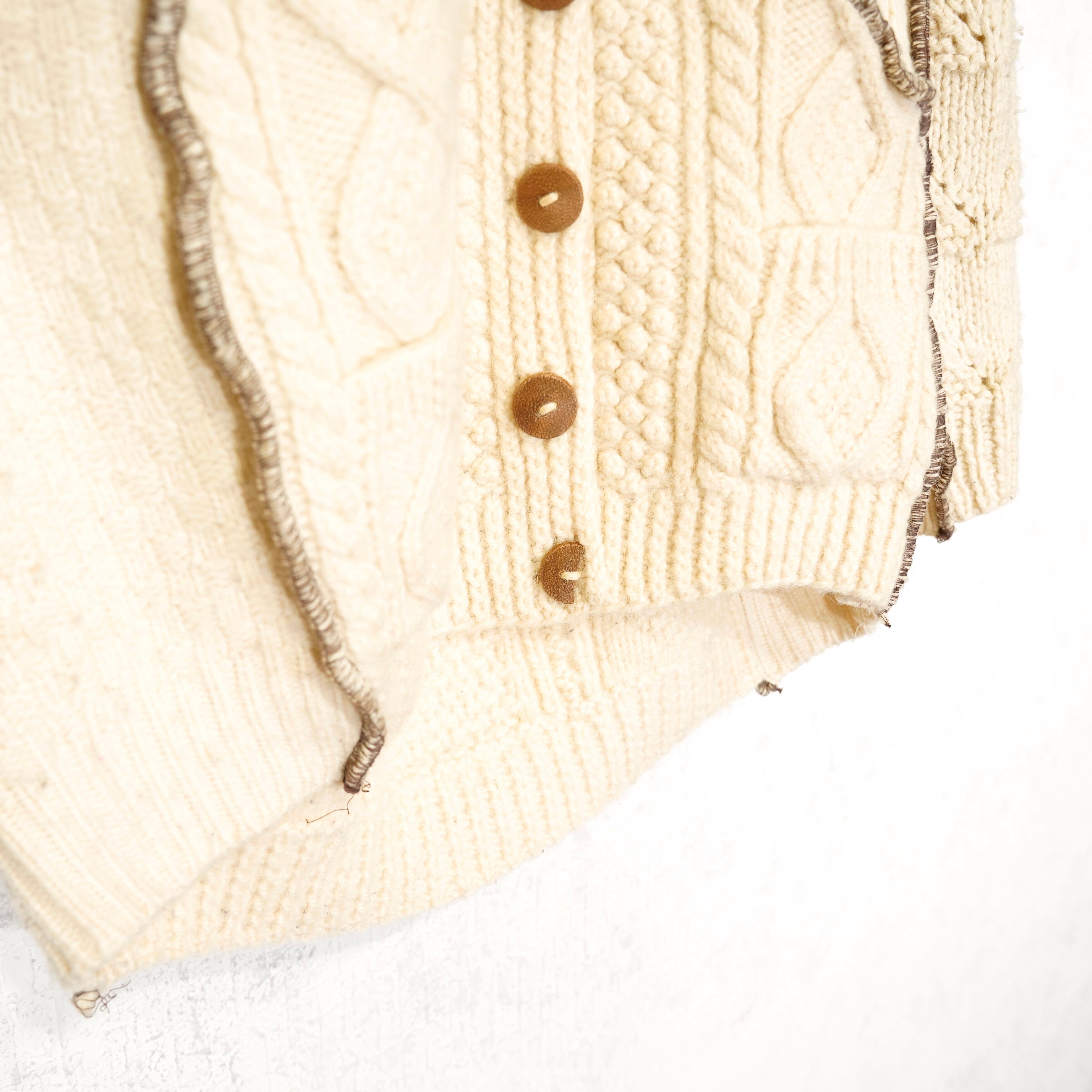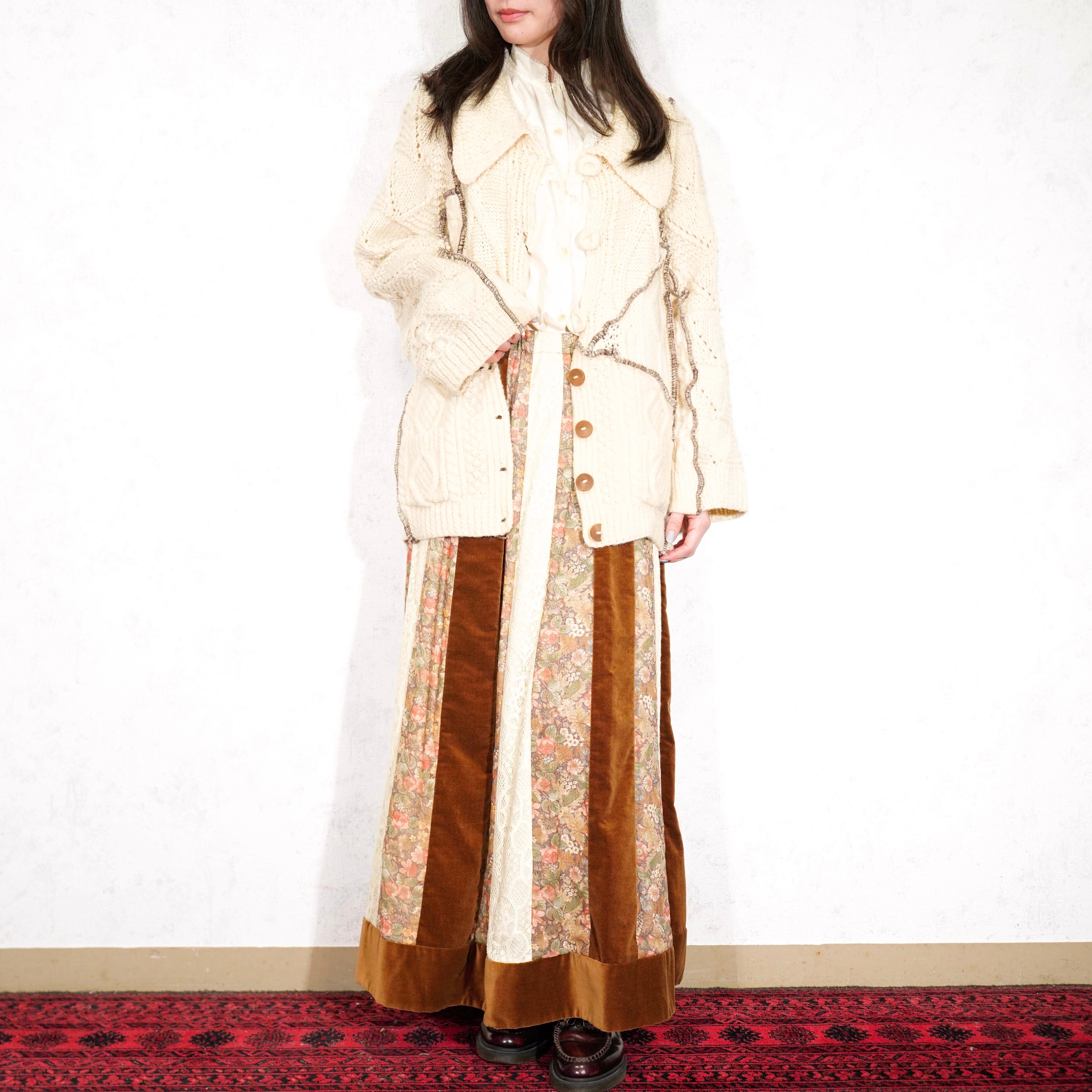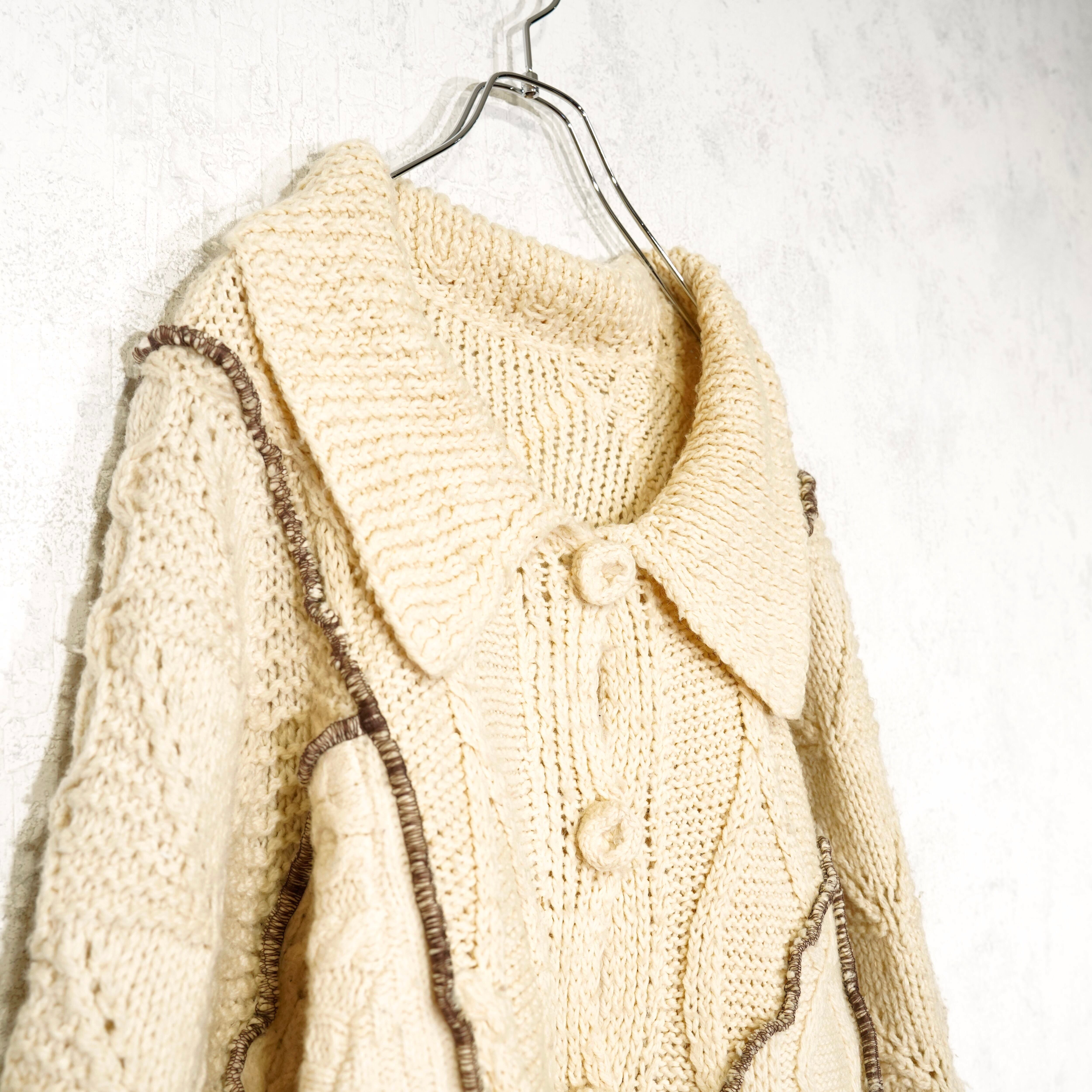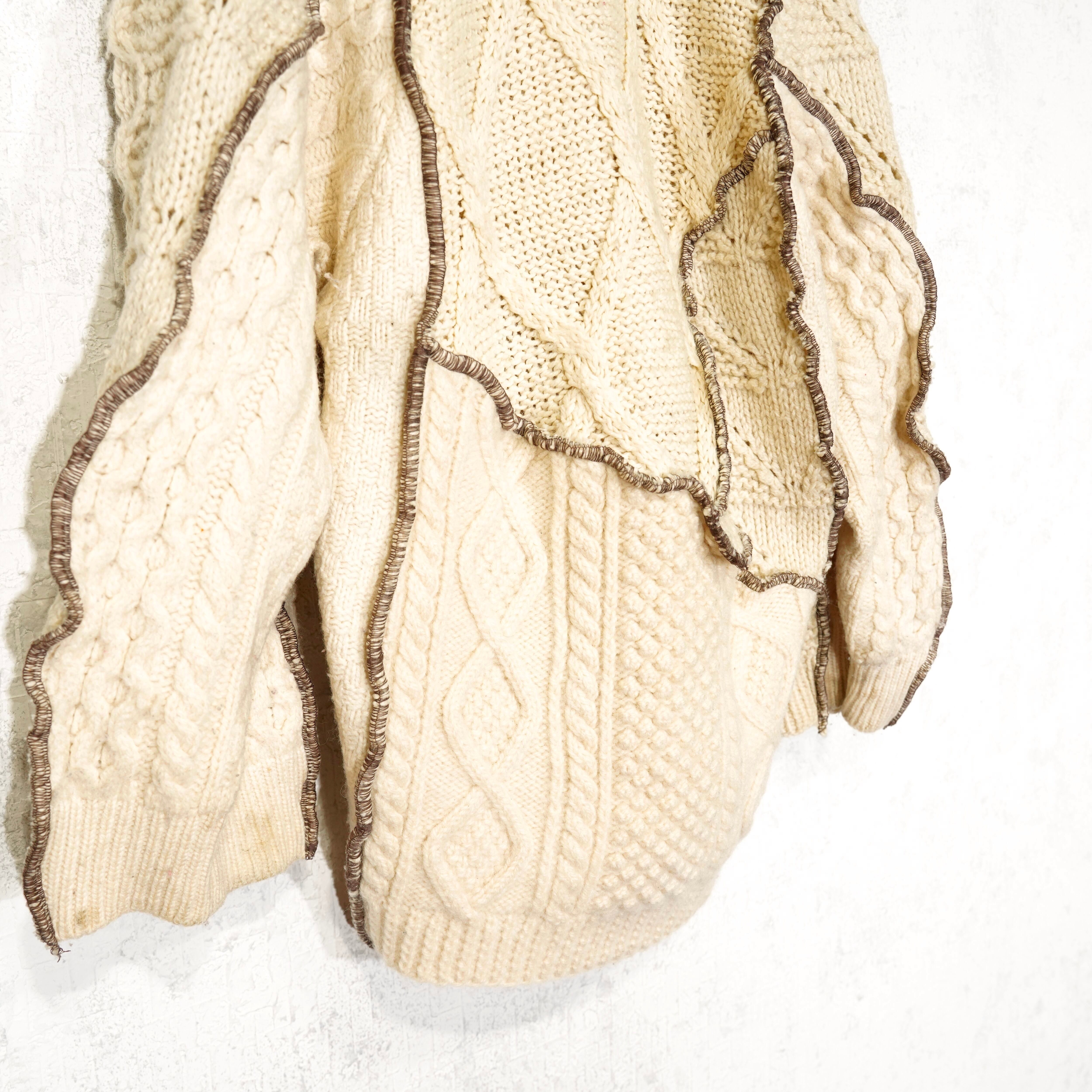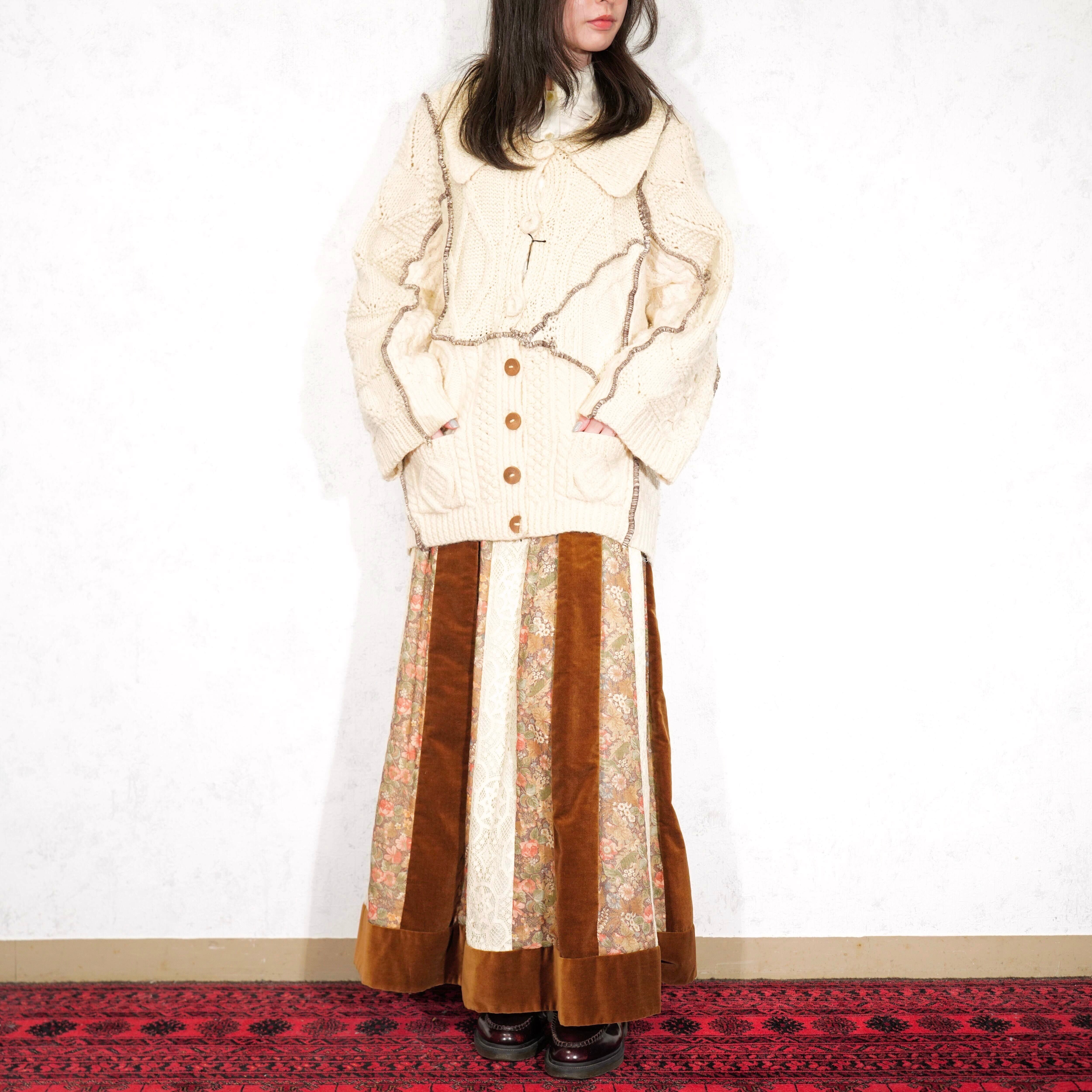 EU VINTAGE COLLAR DESIGN PATCHWORK REMAKE CABLE KNIT CARDIGAN/ヨーロッパ古着襟付きデザインパッチワークリメイクケーブルニットカーディガン(ニットジャケット)(フィッシャーマンセーター/アランニット)