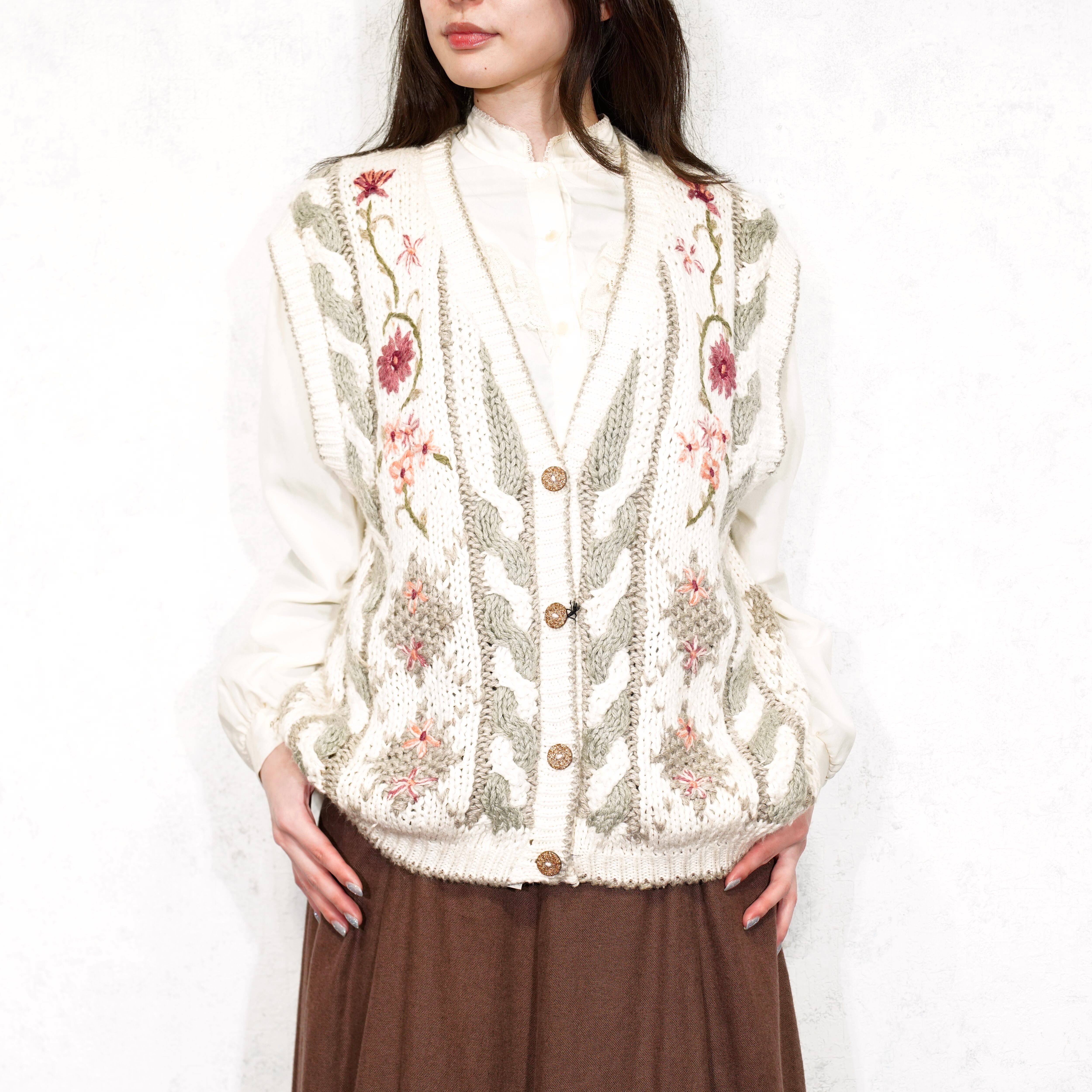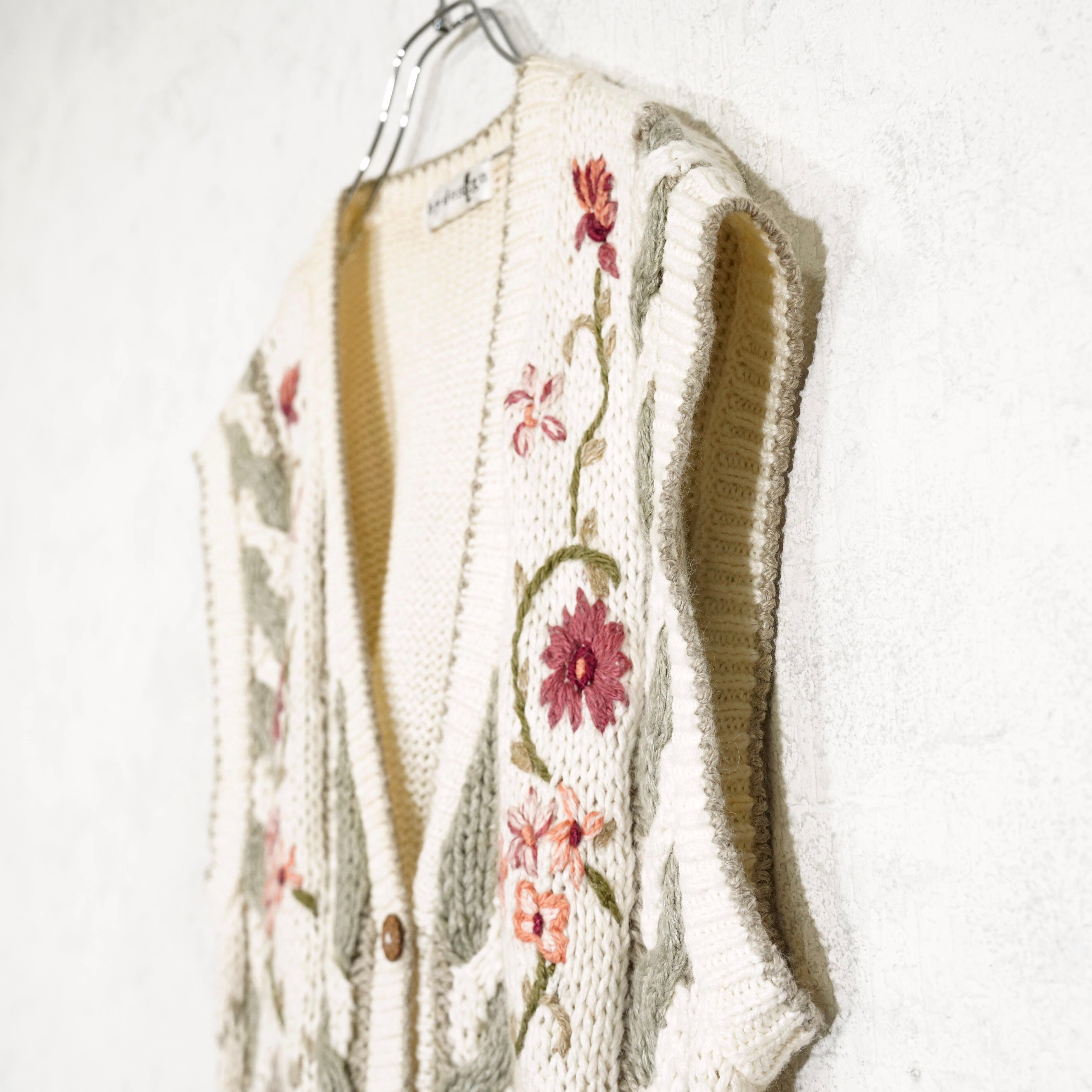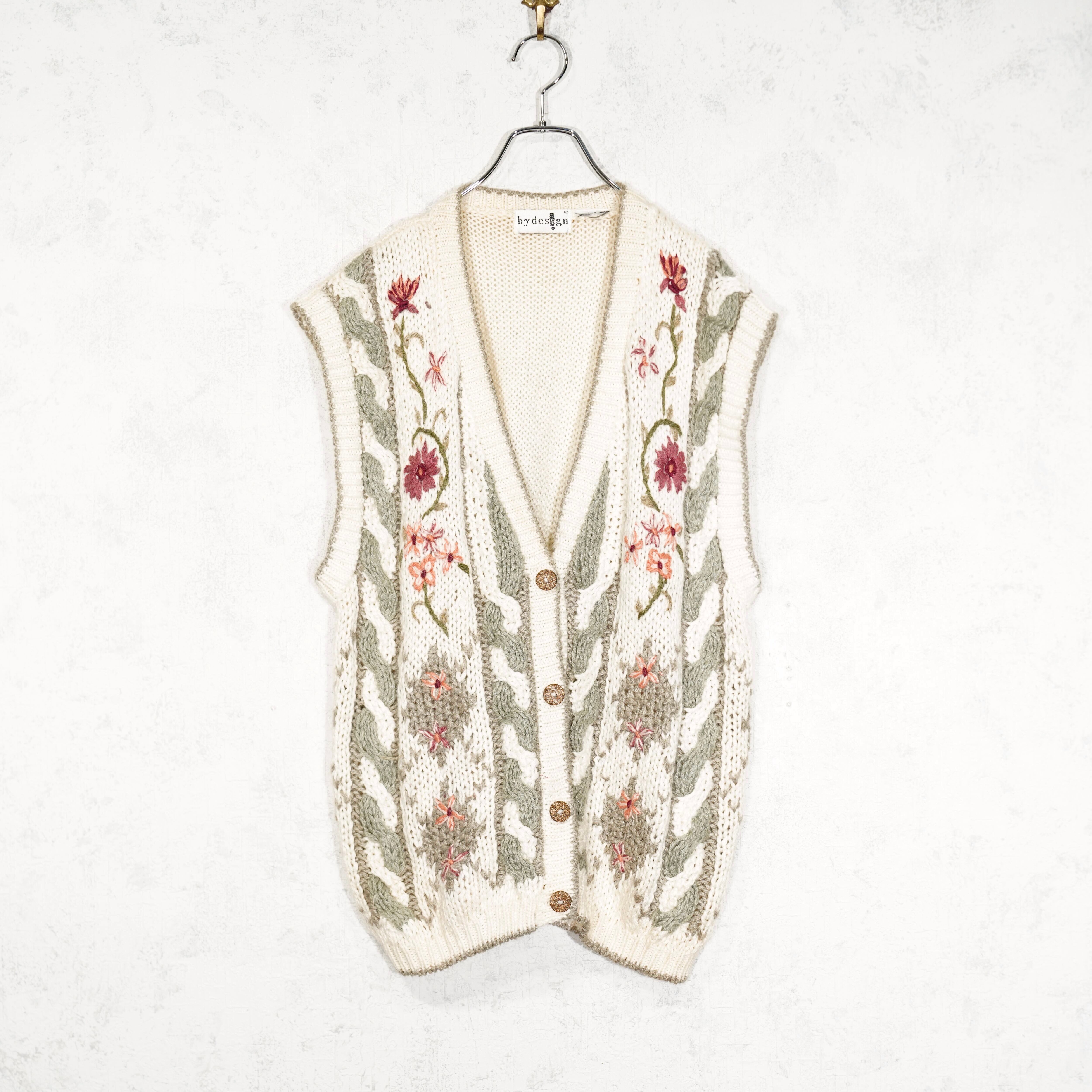 USA VINTAGE by design FLOWER EMBROIDERY DESIGN KNIT VEST/アメリカ古着お花刺繍デザインニットベスト