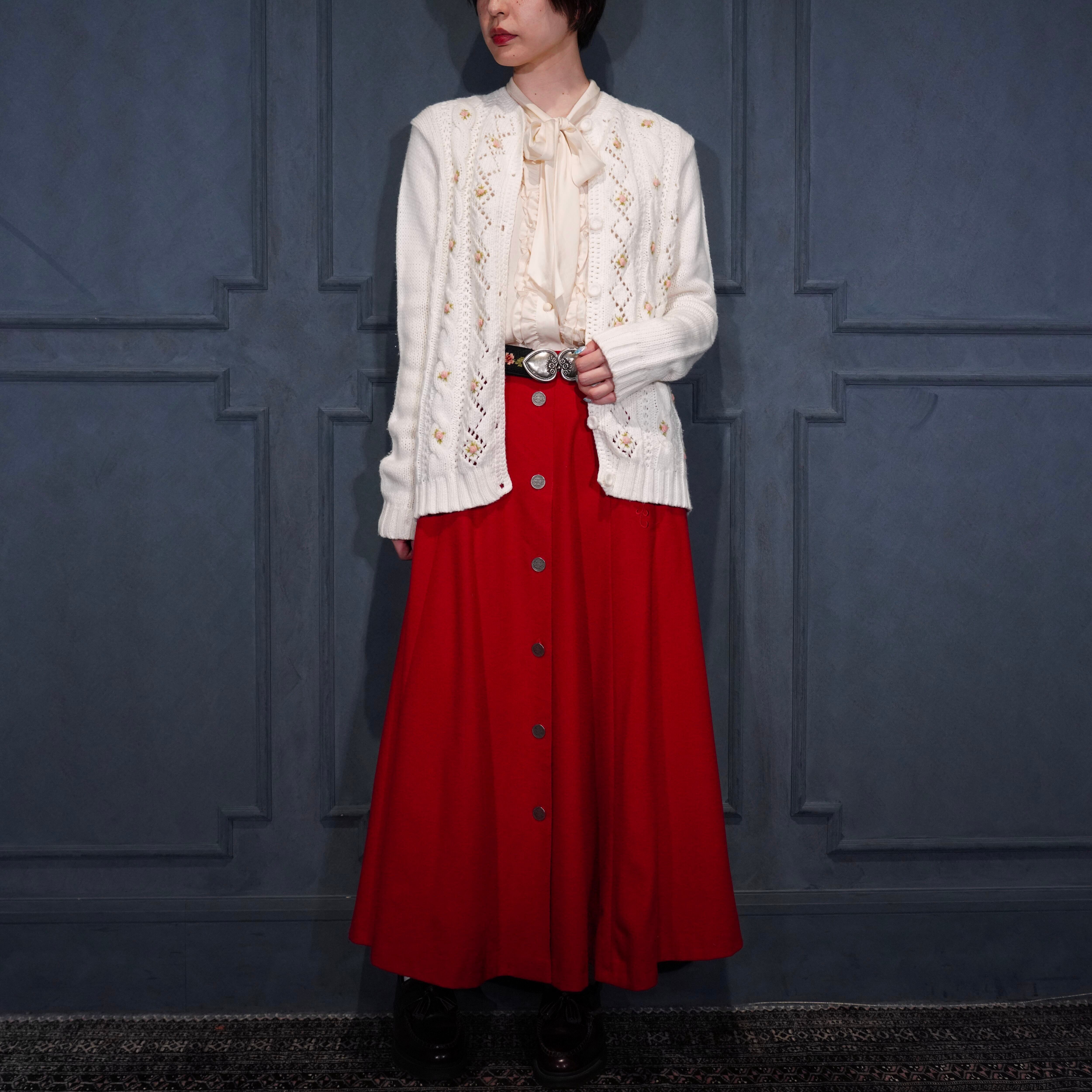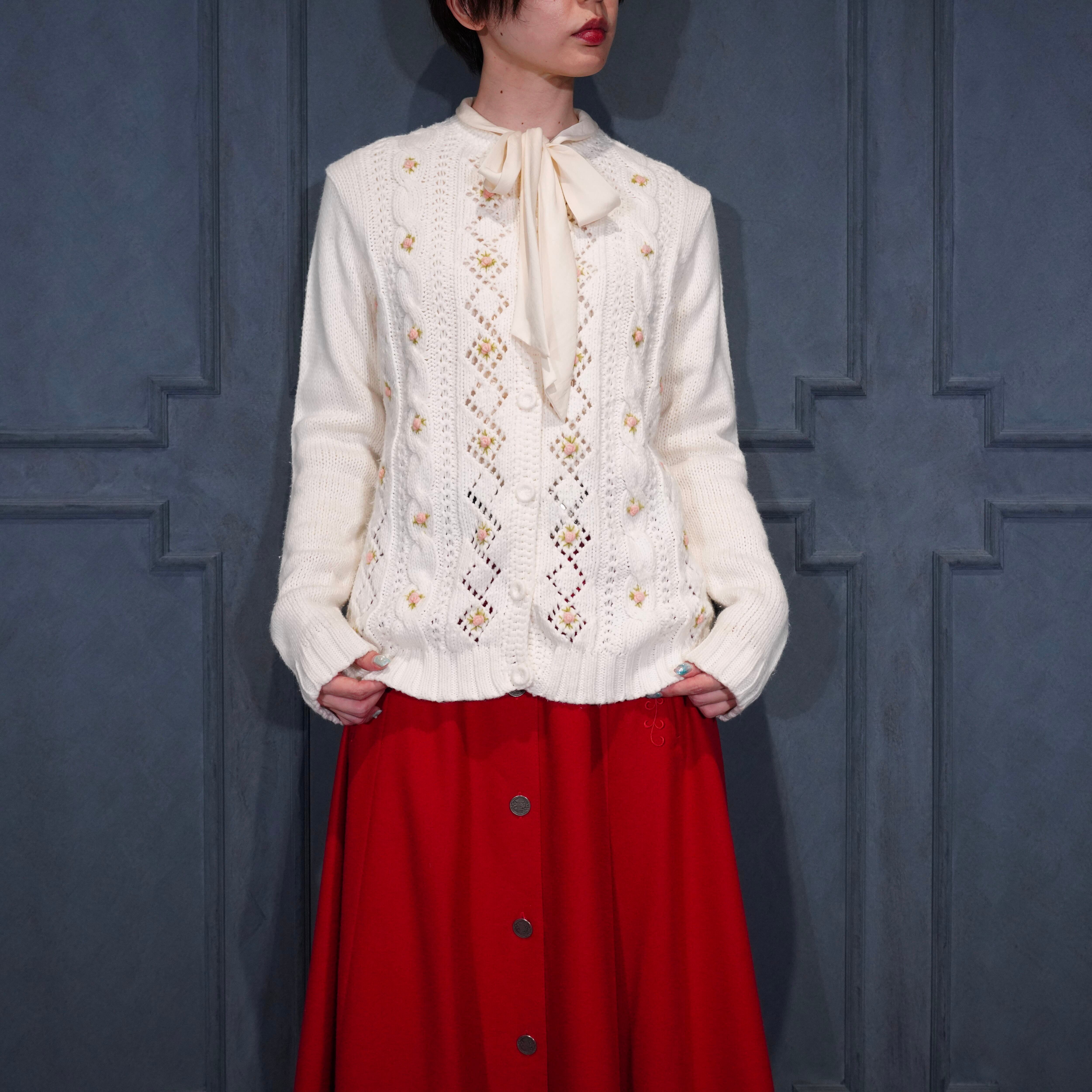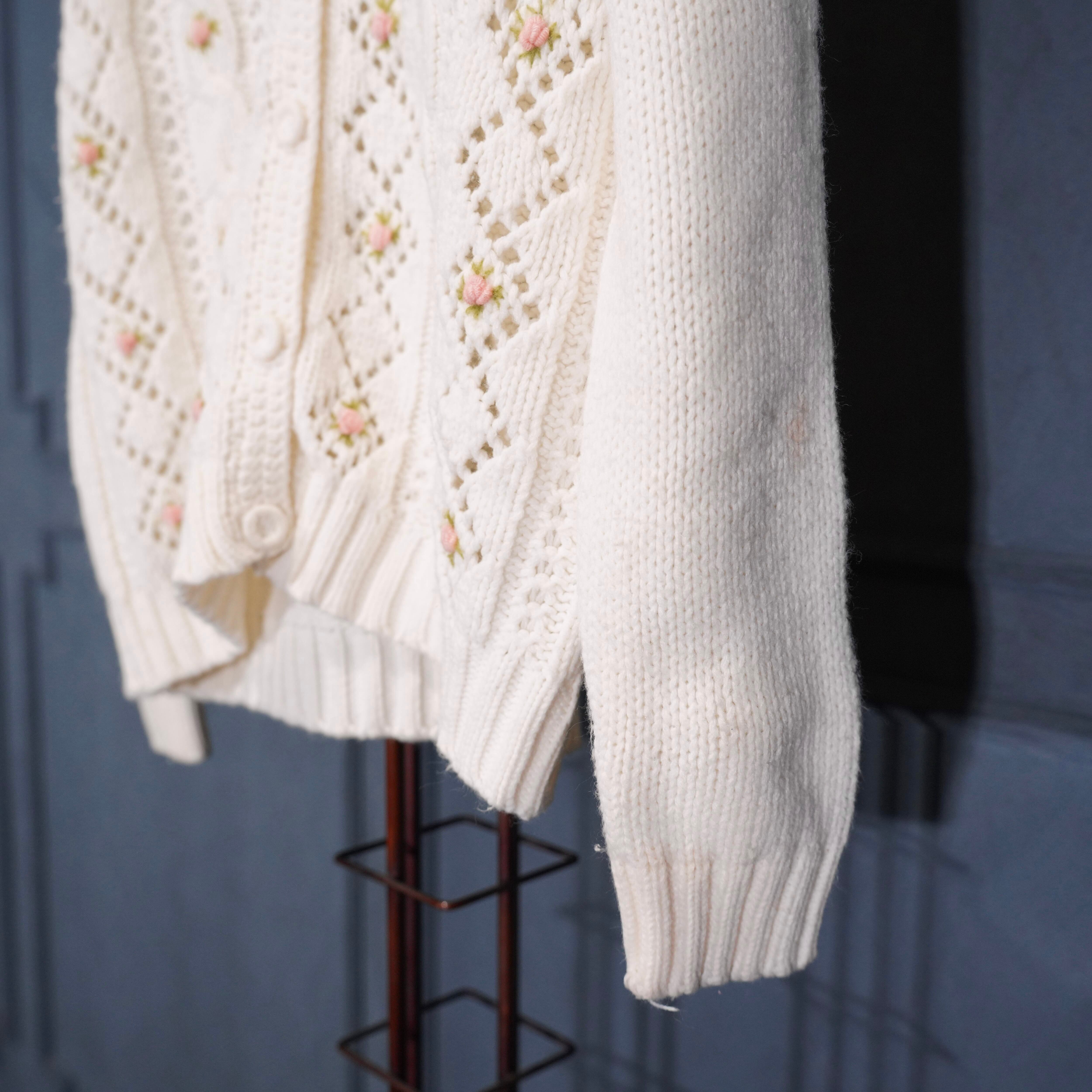 *SPECIAL ITEM* 70’s〜 USA VINTAGE Jan Lee FLOWER EMBROIDERY DESIGN KNIT CARDIGAN/70年代〜アメリカ古着お花刺繍ニットカーディガン