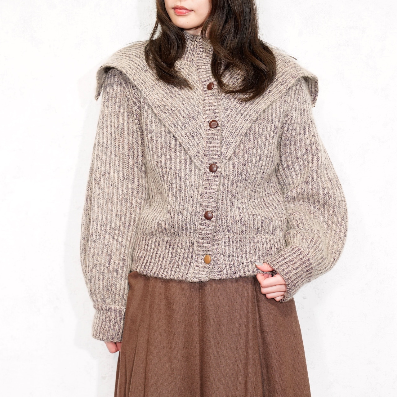*SPECIAL ITEM* USA VINTAGE I.B.DIFFUSION BIG COLLAR DESIGN MOHAIR KNIT JACKET/アメリカ古着ビッグカラーデザインモヘアニットジャケット(カーディガン)