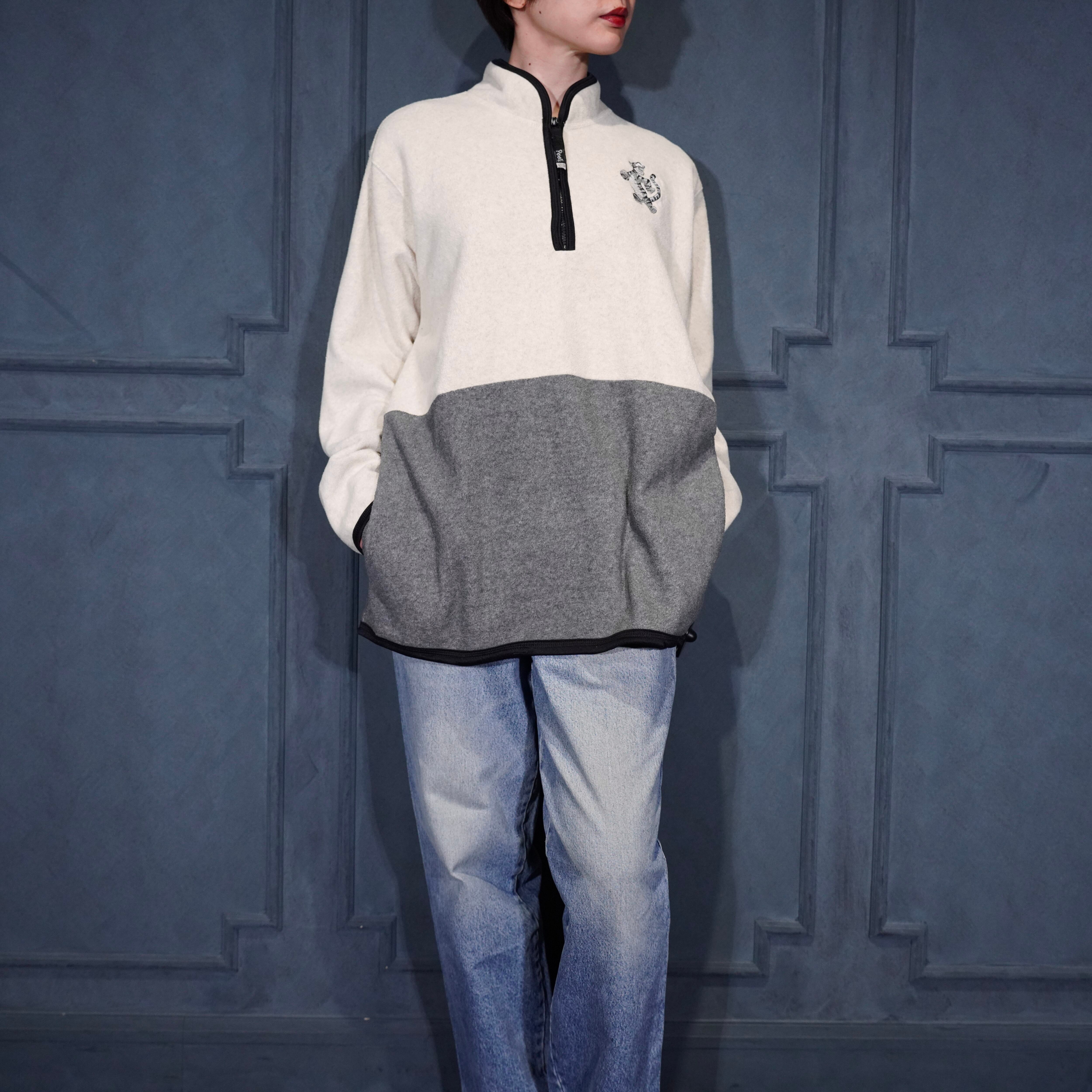 USA VINTAGE Pooh CHARACTER EMBROIDERY DESIGN FLEECE HALF ZIP JACKET/アメリカ古着キャラクター刺繍デザインハーフジップフリース