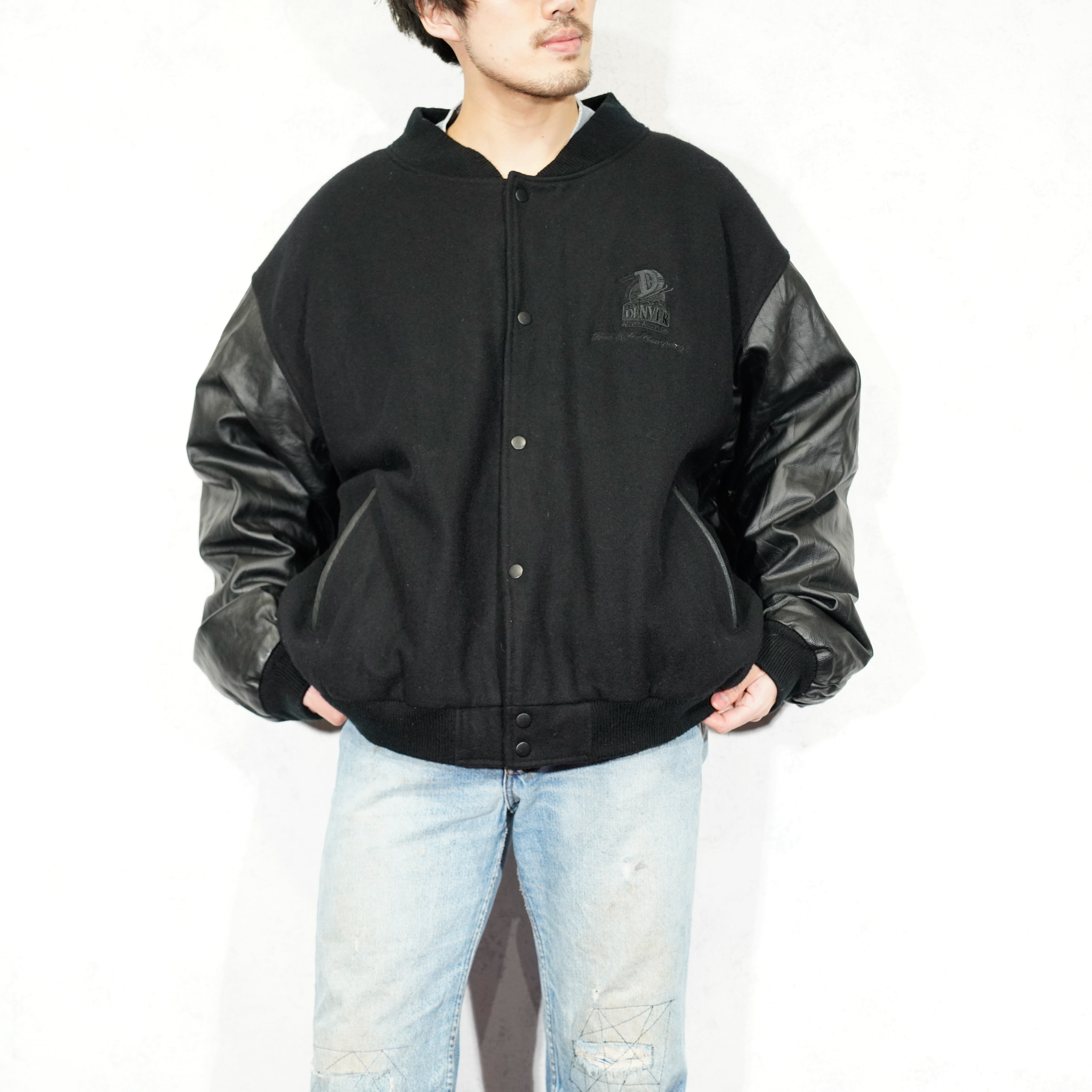 USA VINTAGE Dunbrooke Distinctive images DENVER EMBROIDERY DESIGN LEATHER MELTON STADIUM JAMPER/アメリカ古着刺繍デザインレザーメルトンスタジャン