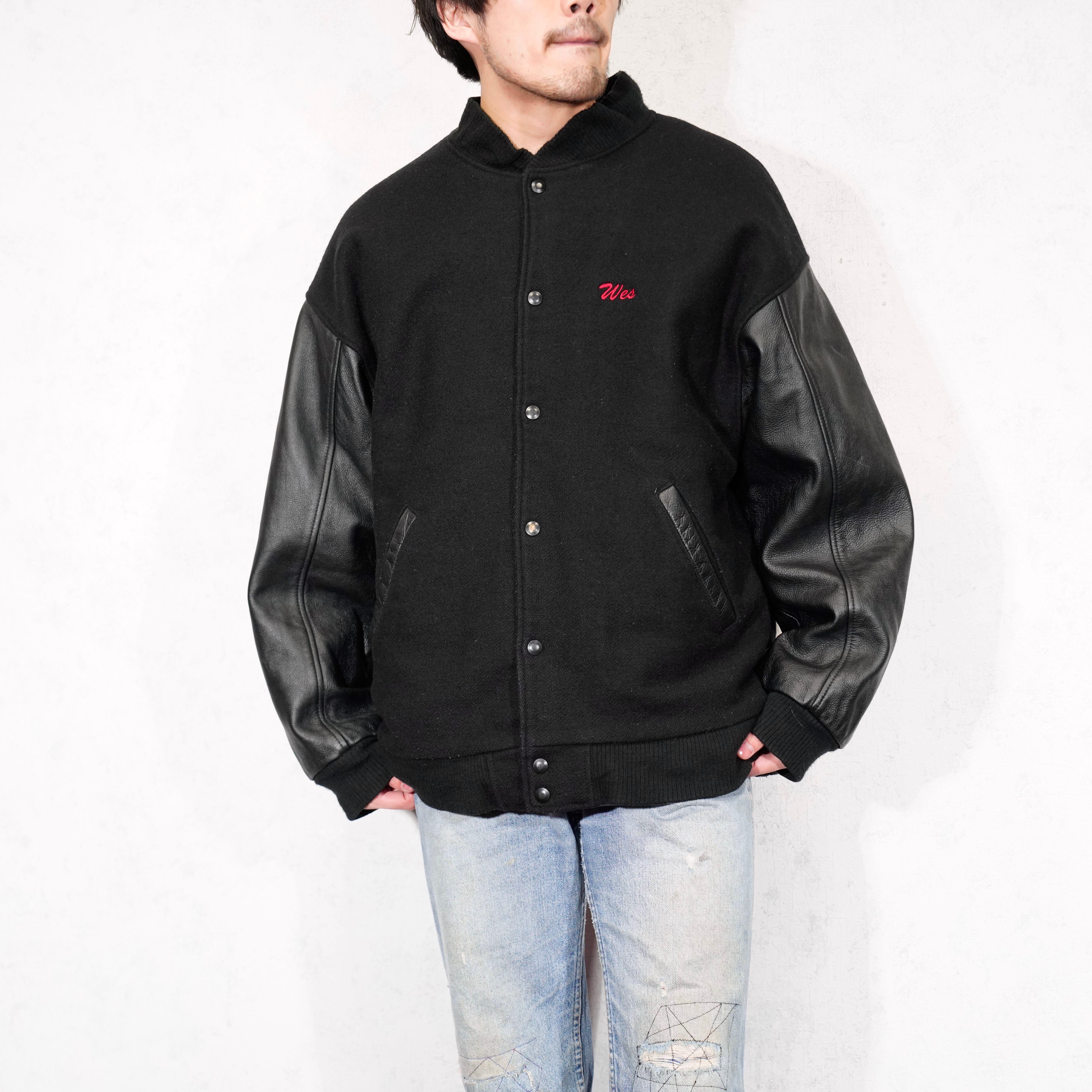 USA VINTAGE LAMASZ SPORT Wes Wer EMBROIDERY DESIGN LEATHER MELTON STADIUM JAMPER/アメリカ古着刺繍デザインレザーメルトンスタジャン