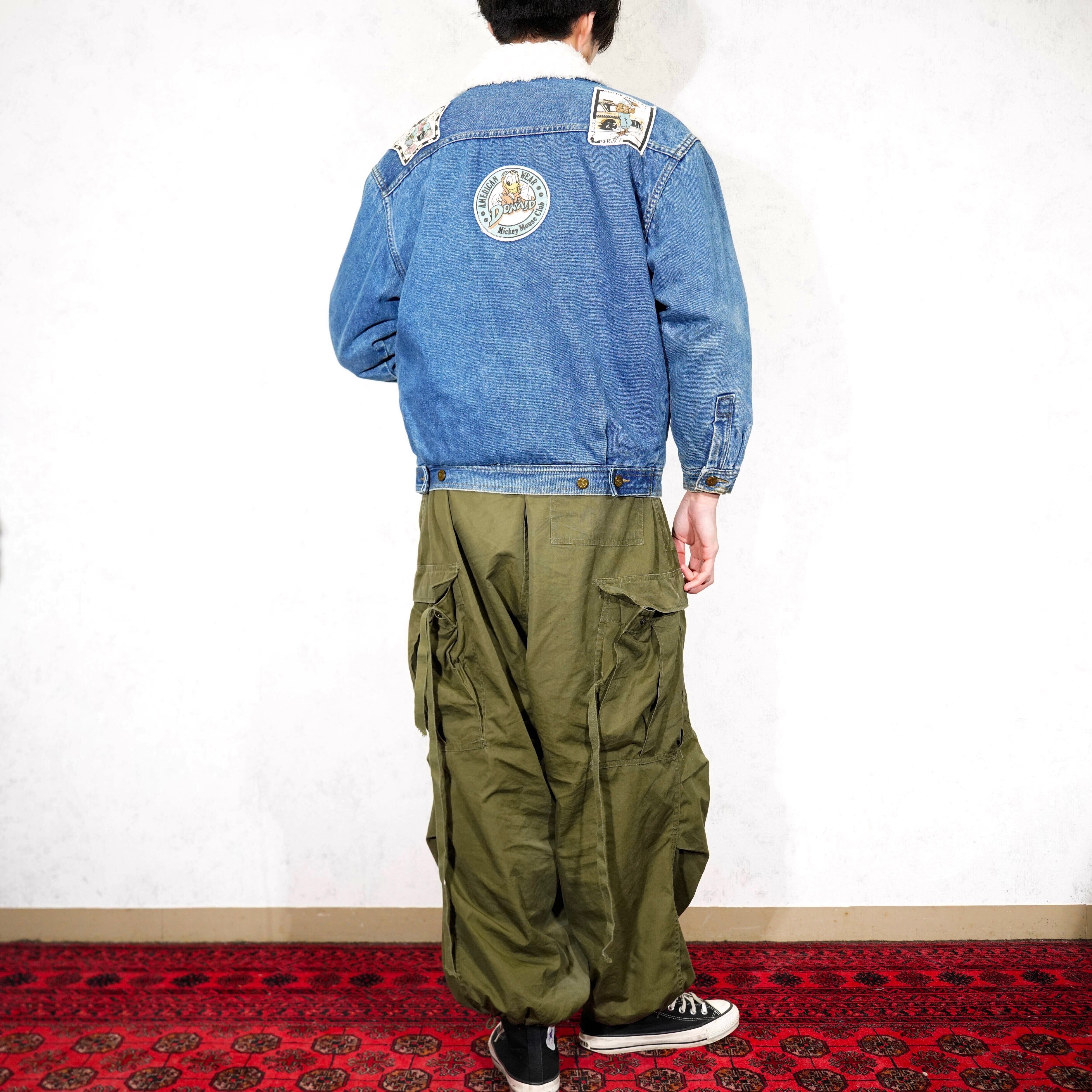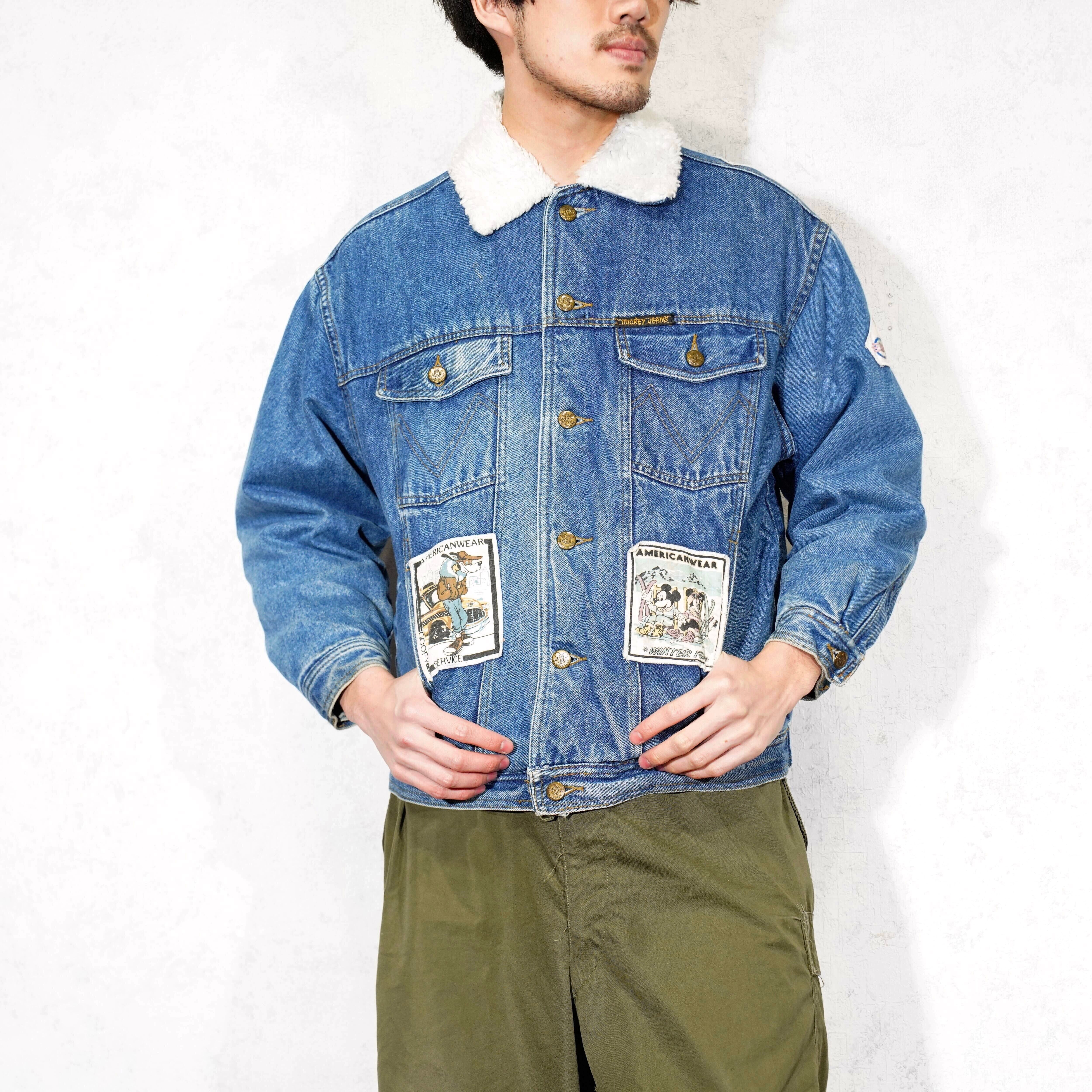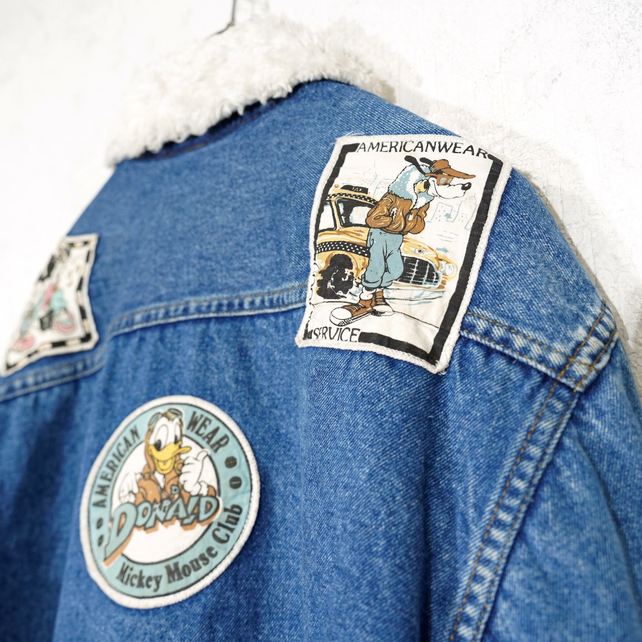*SPECIAL ITEM* USA VINTAGE mickey jeans CHARACTER PATCHWORK DESIGN DENIM BOA COLLAR BLOUSON/アメリカ古着キャラクターパッチワークデザインデニムボア襟ブルゾン