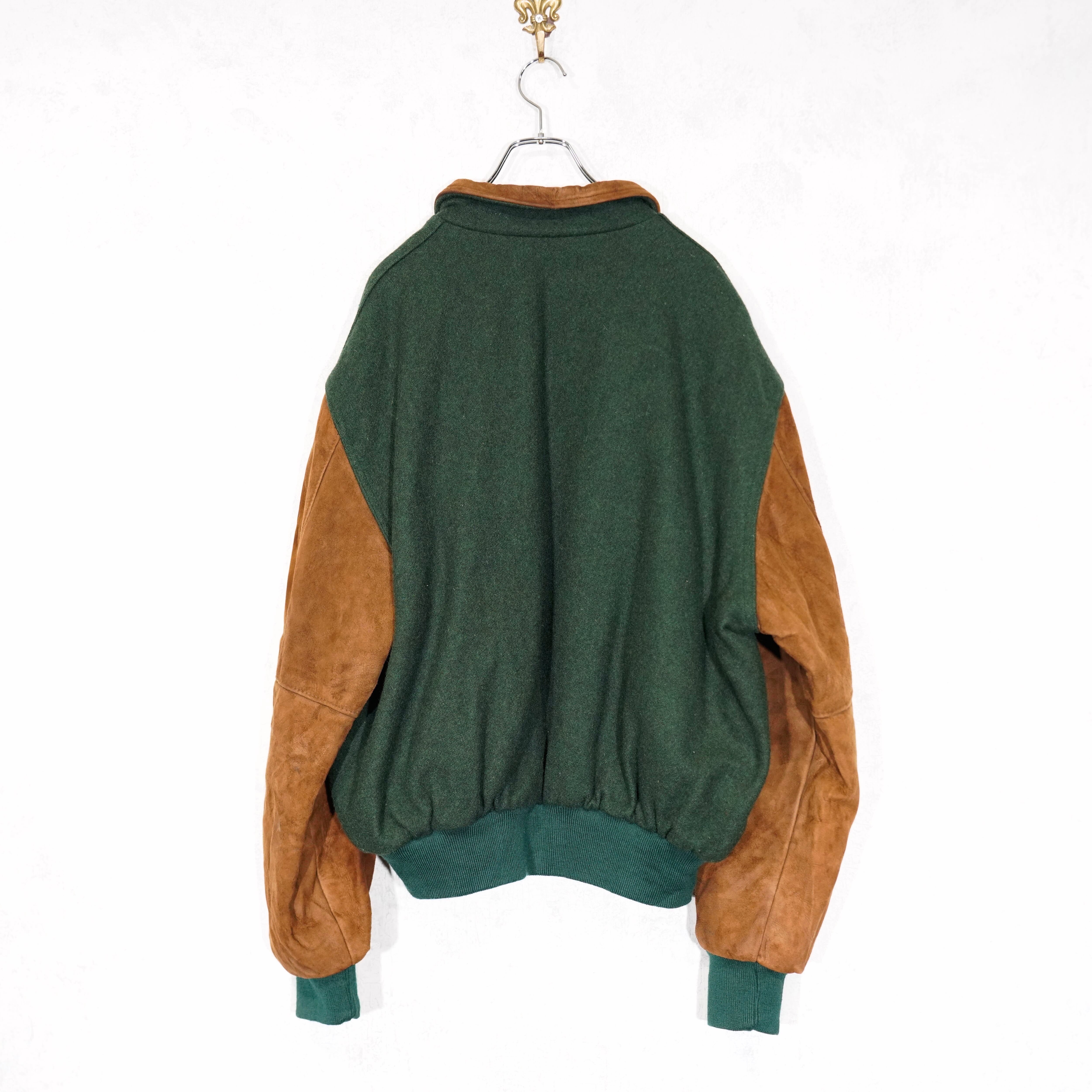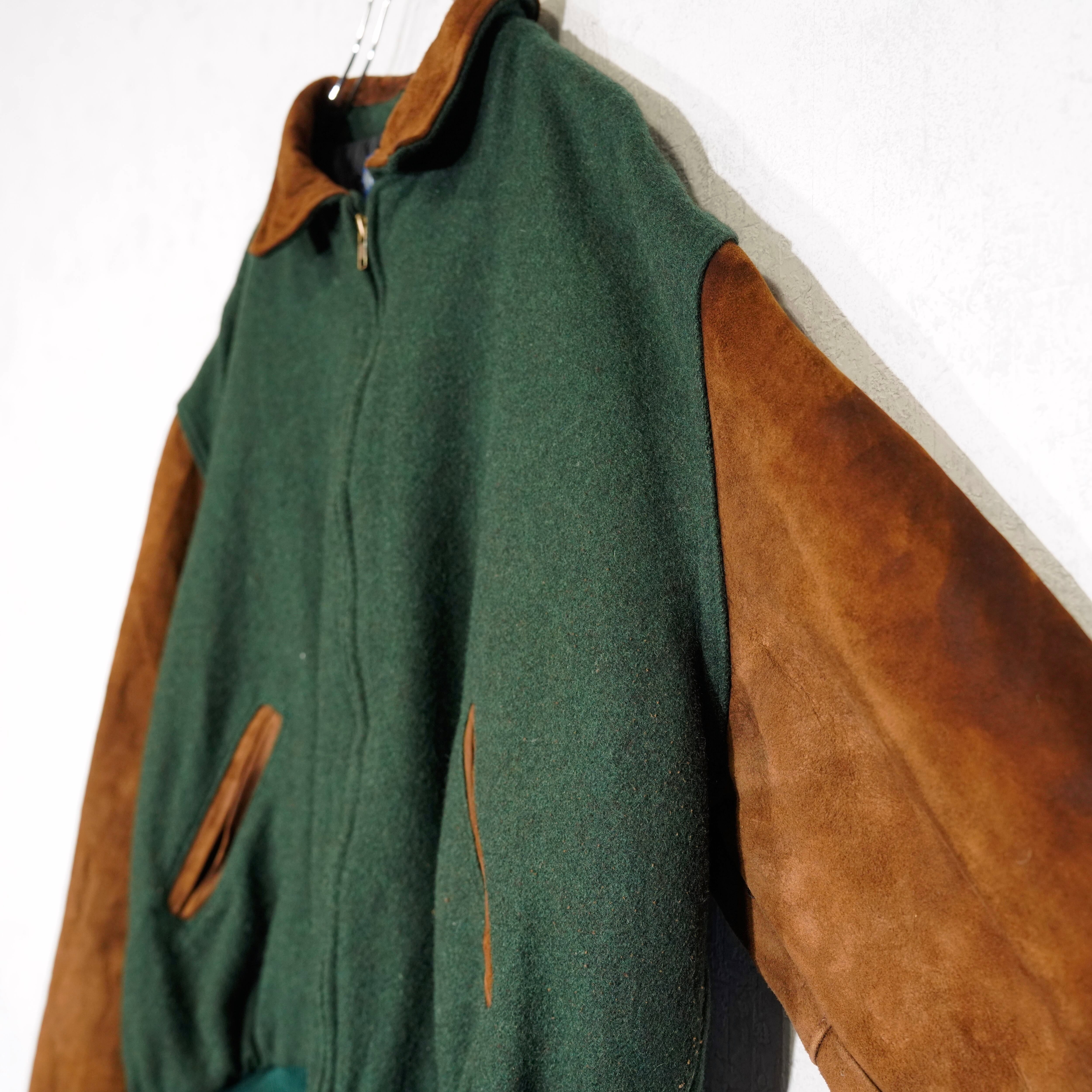USA VINTAGE Holloway LEATHER MELTON ZIP UP BLOUSON/アメリカ古着レザーメルトンジップアップブルゾン
