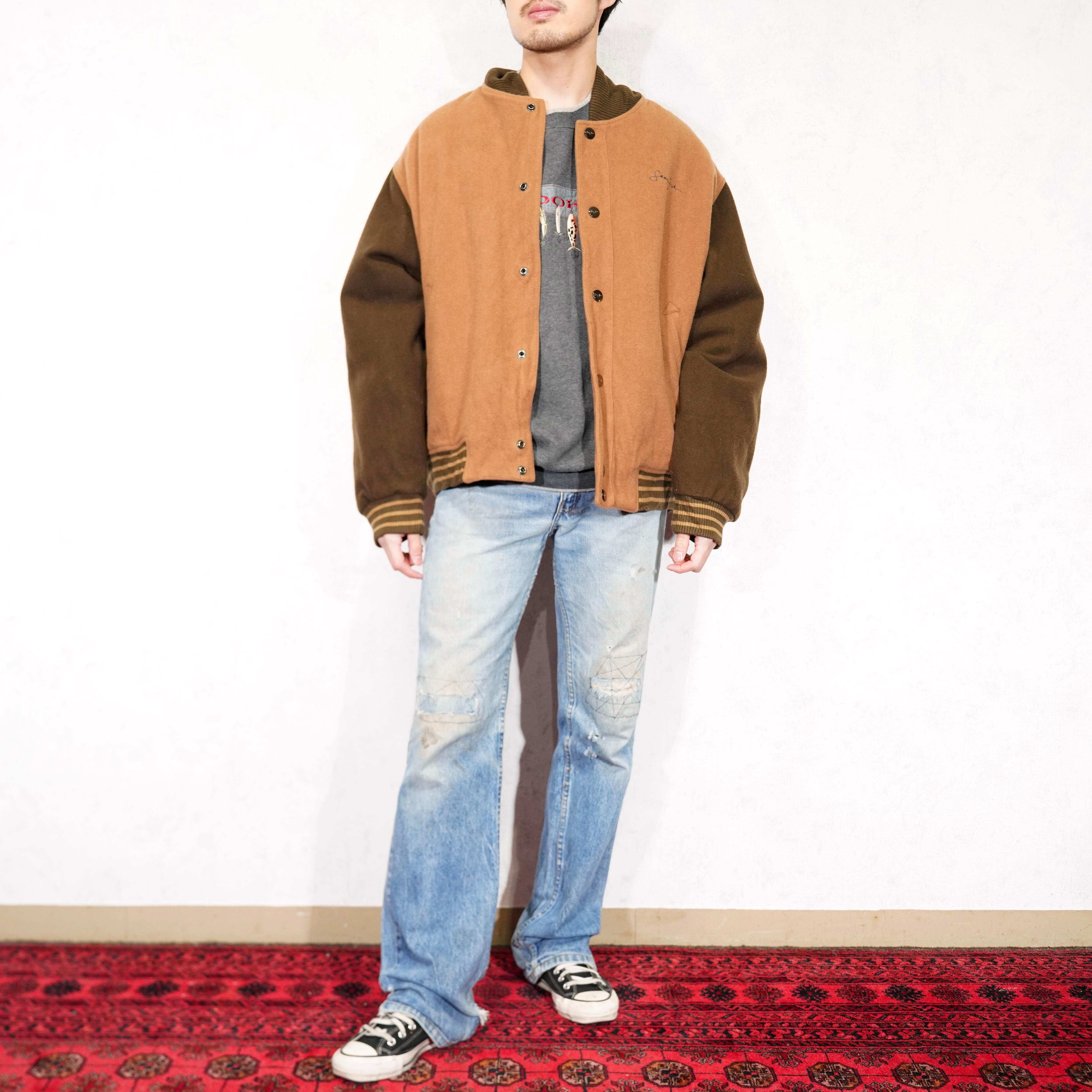 USA VINTAGE Sean John LOGO EMBROIDERY DESIGN 2 TONE WOOL STADIUM JUMPER/アメリカ古着ロゴ刺繍デザイン2トーンウールスタジャン