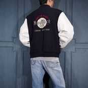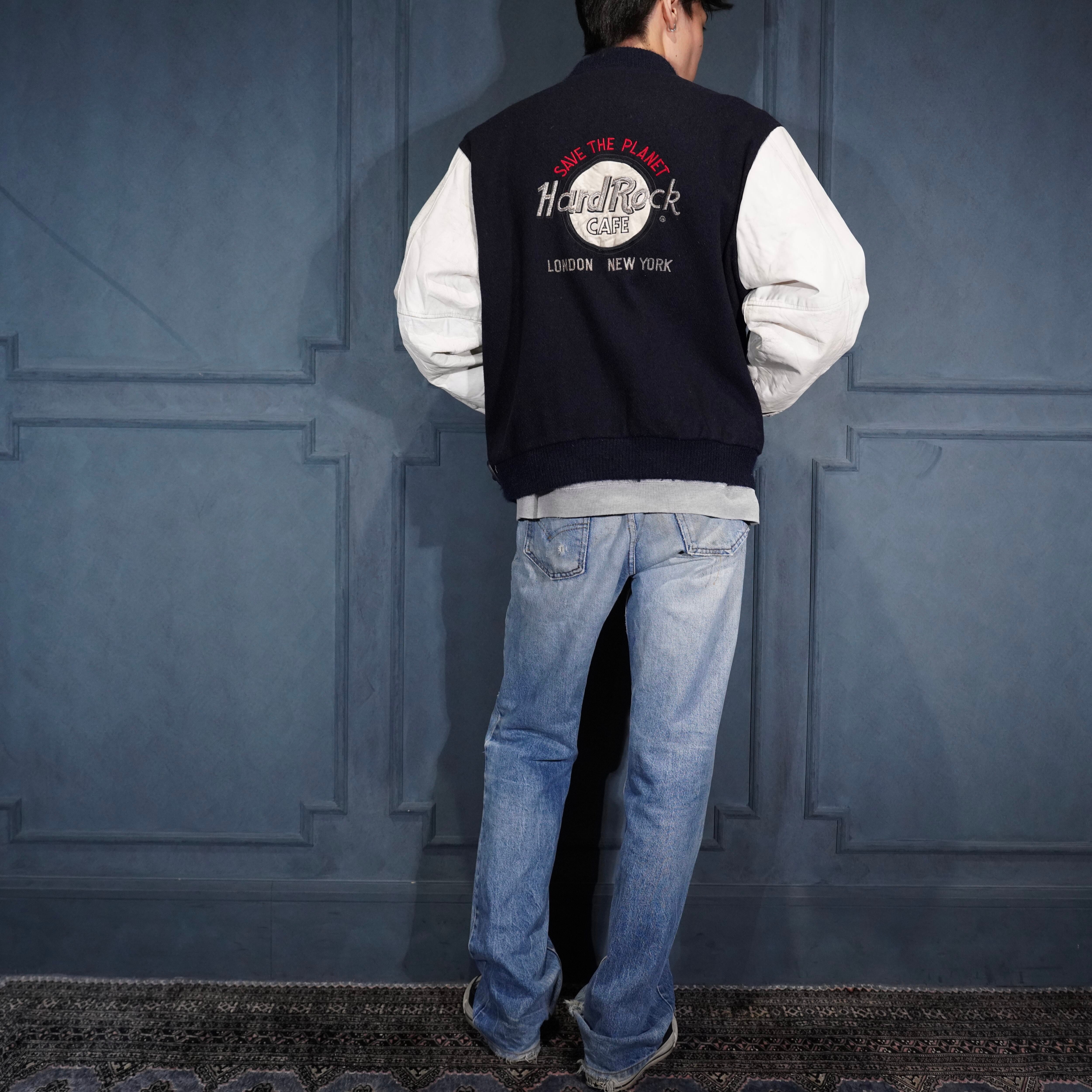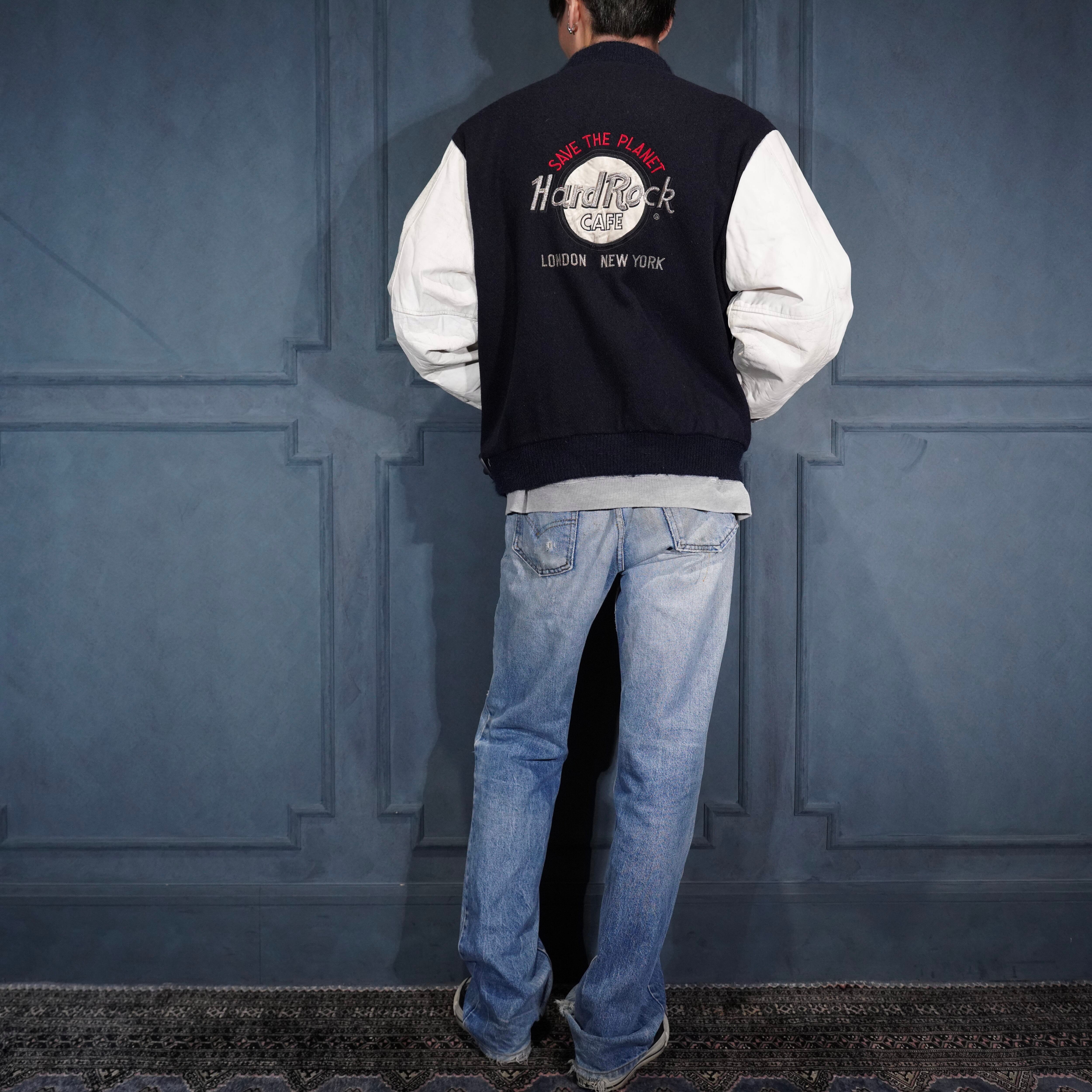*SPECIAL USA VINTAGE Hard Rock CAFE LOGO EMBROIDERY DESIGN LEATHER MELTON STADIUM JAMPER/アメリカ古着ハードロックカフェ刺繍デザインレザーメルトンスタジャン