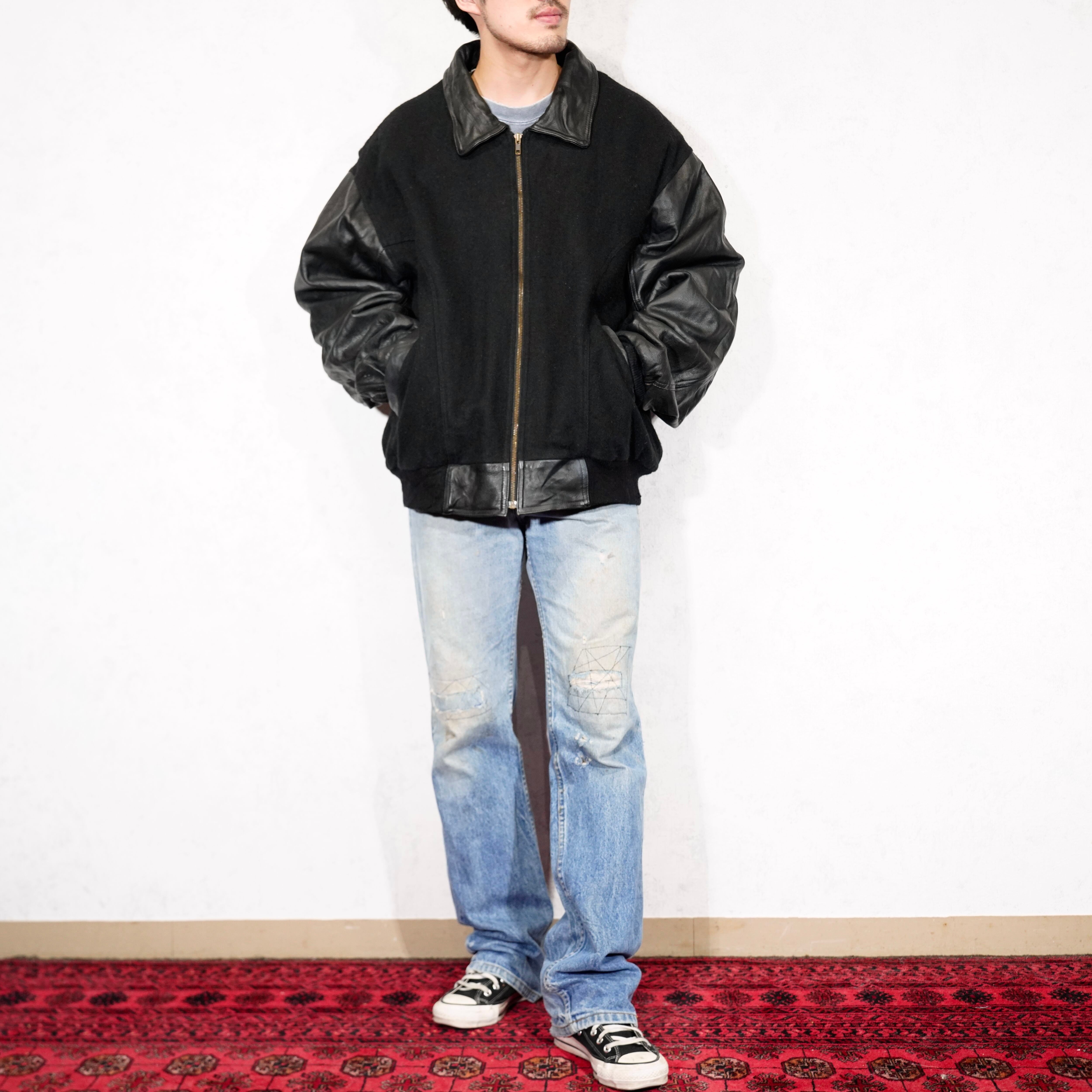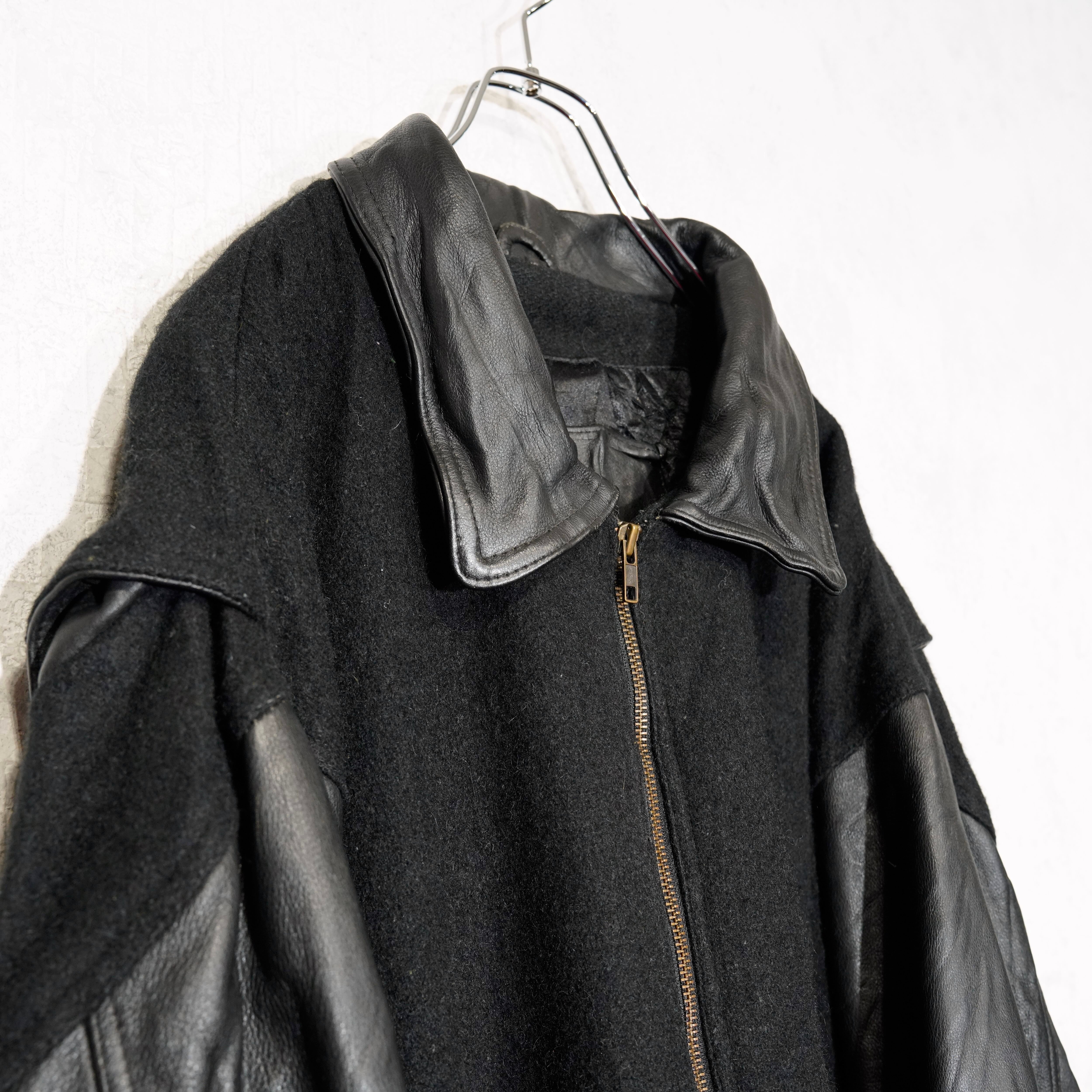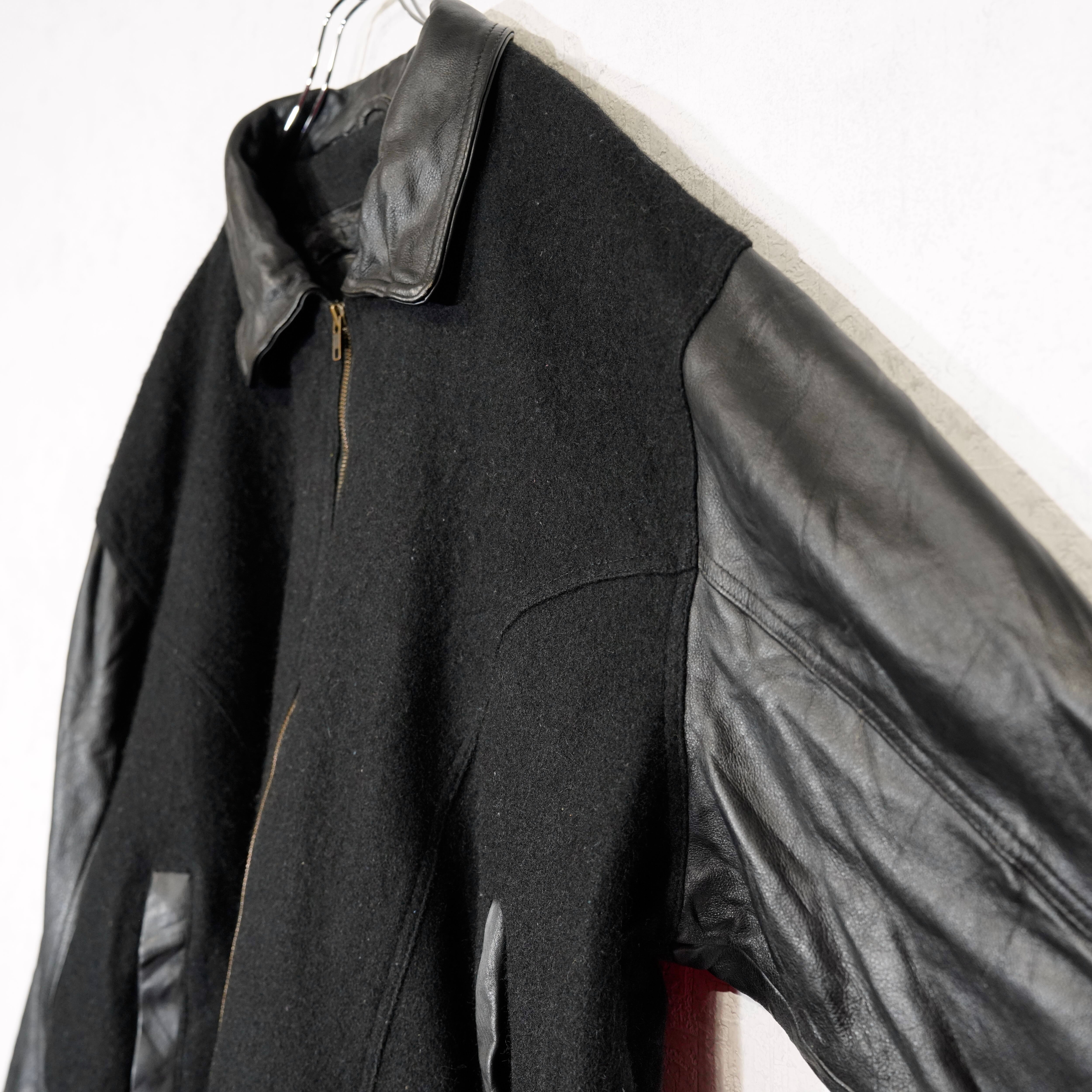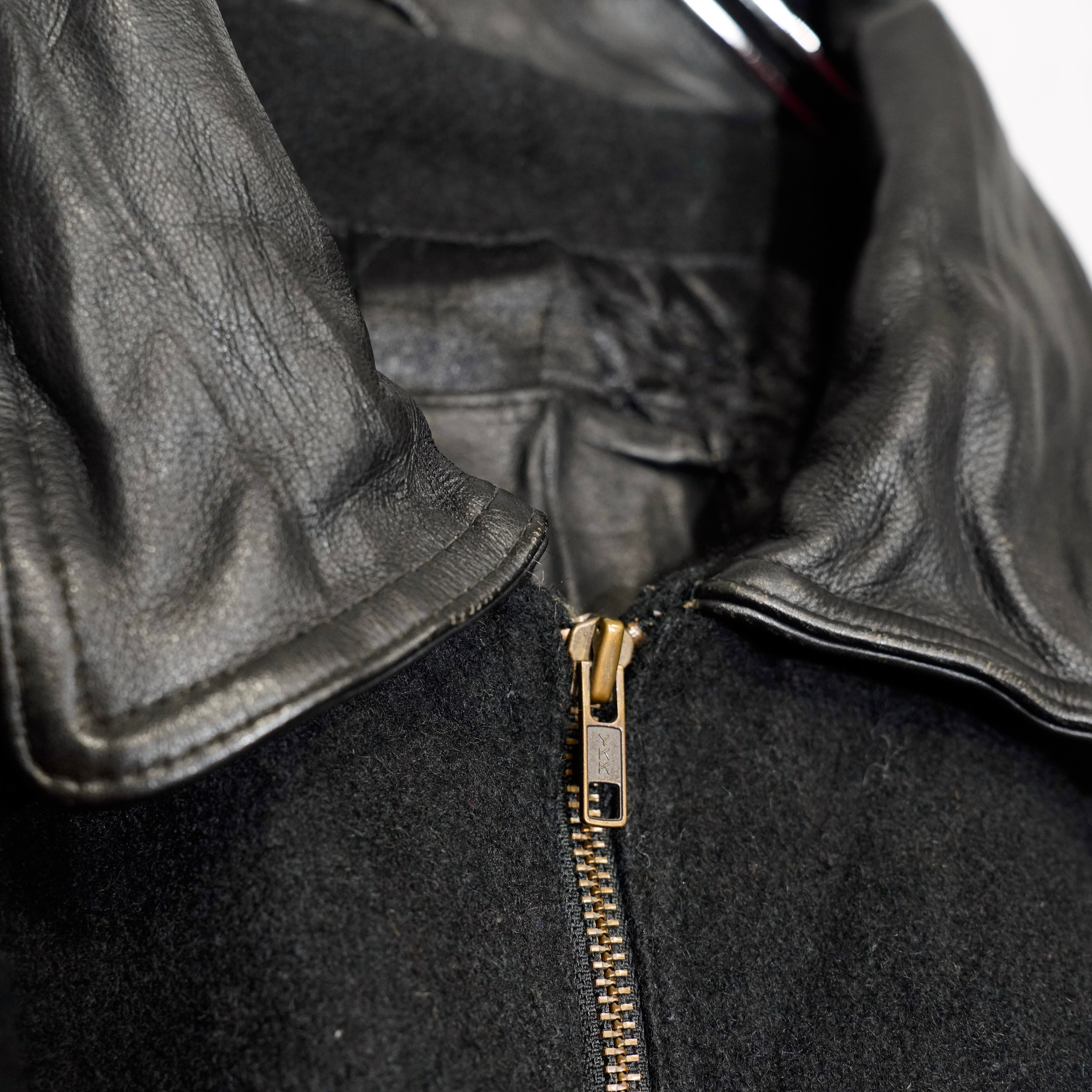USA VINTAGE BLACK COLOR LEATHER MELTON ZIP UP BLOUSON/アメリカ古着ブラックカラーレザーメルトンジップアップブルゾン