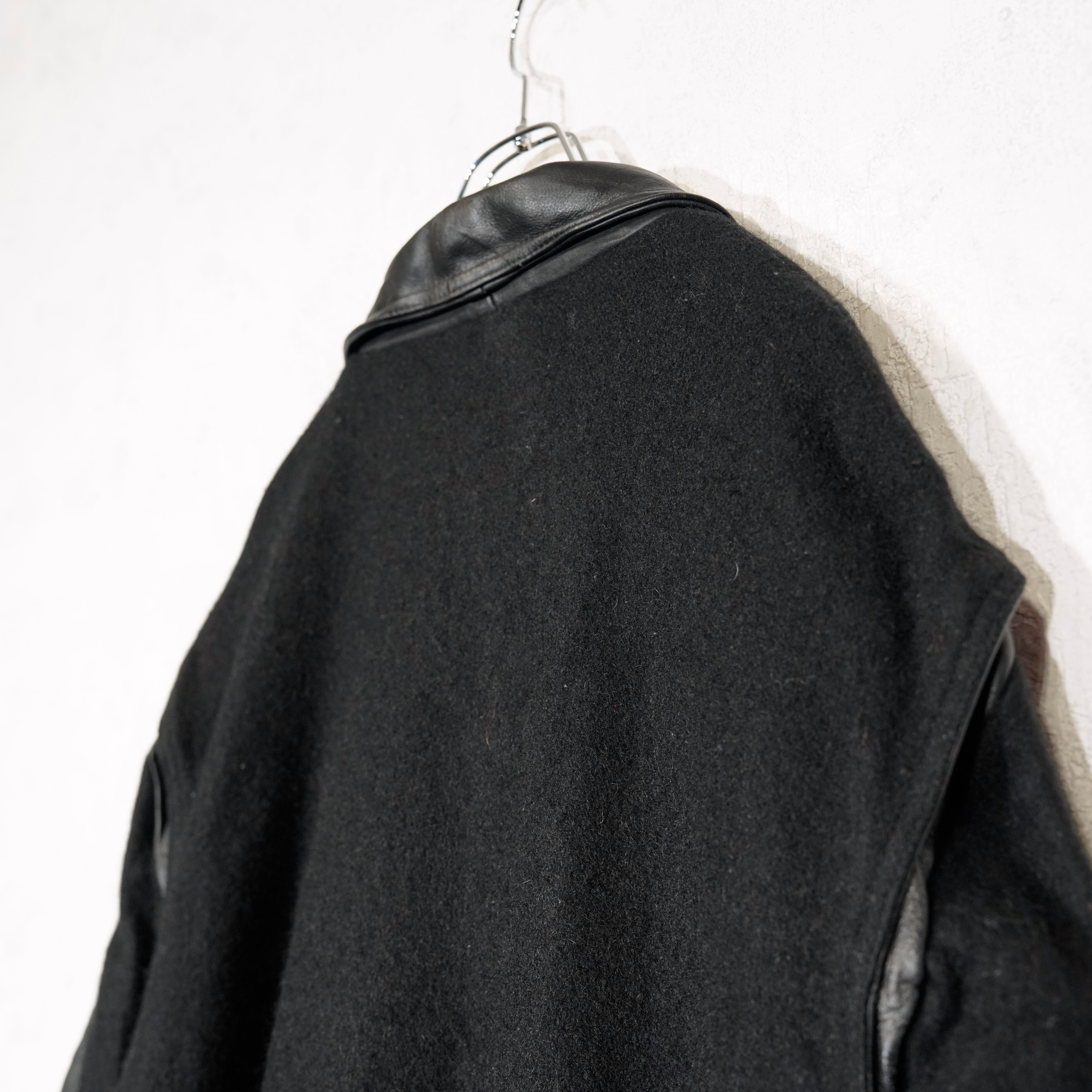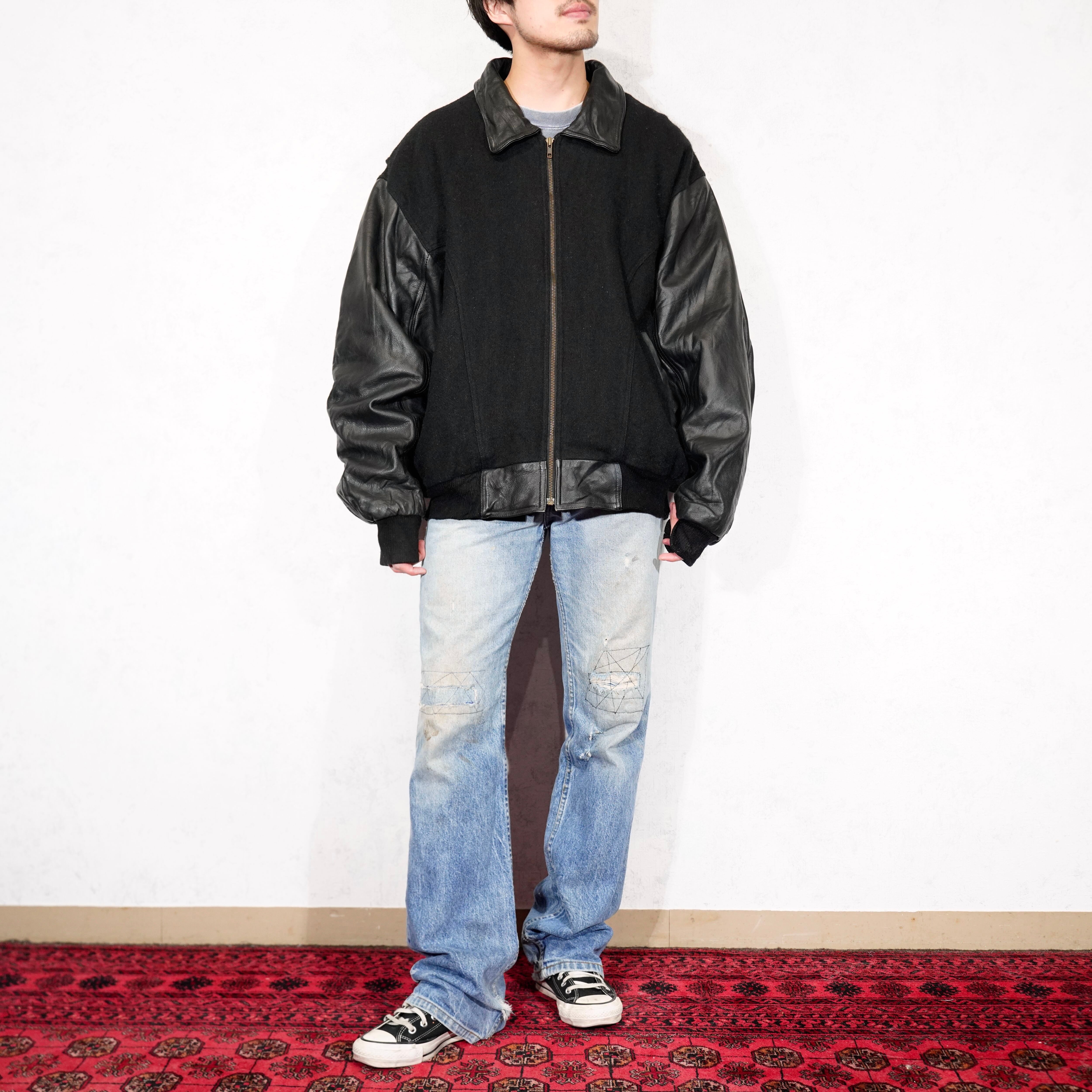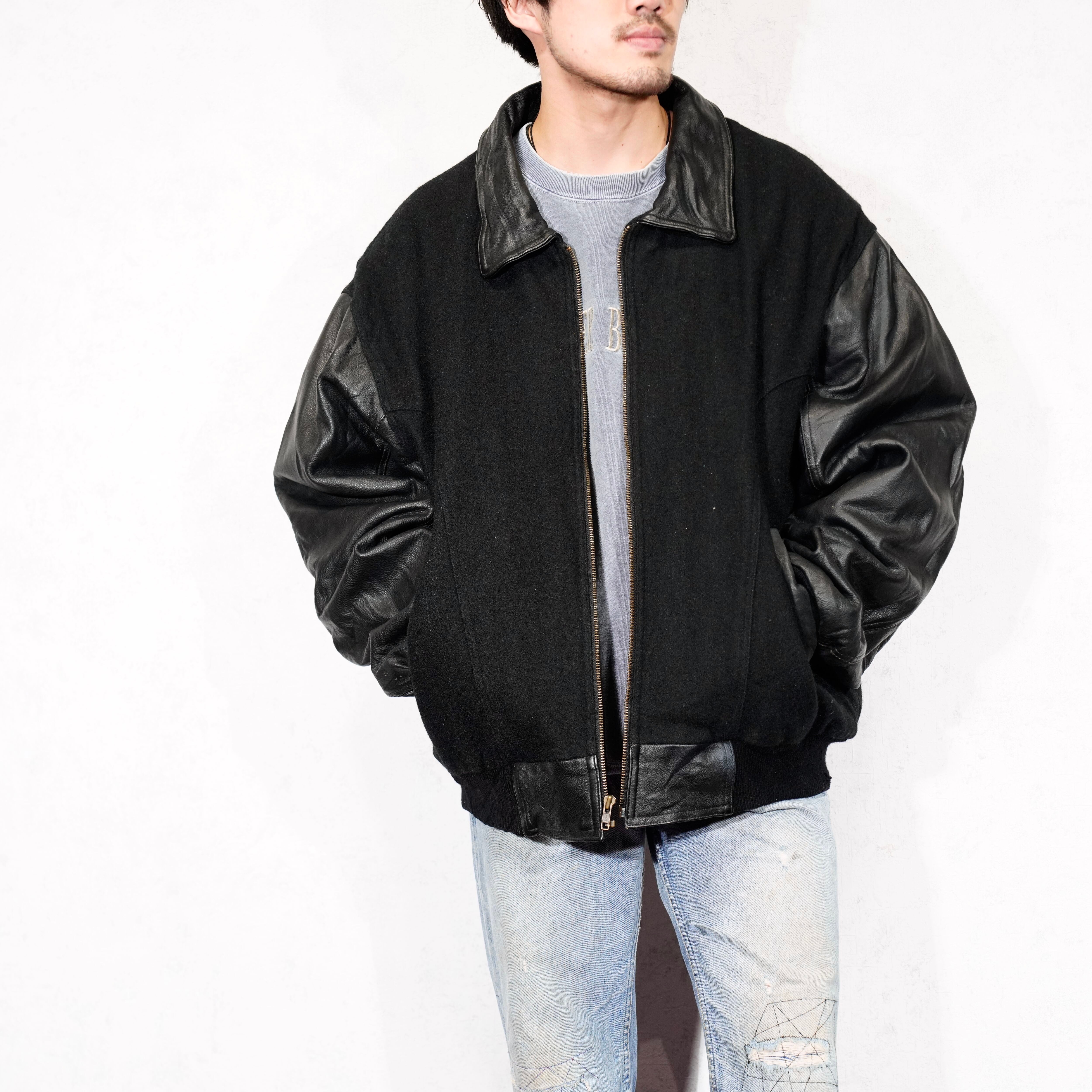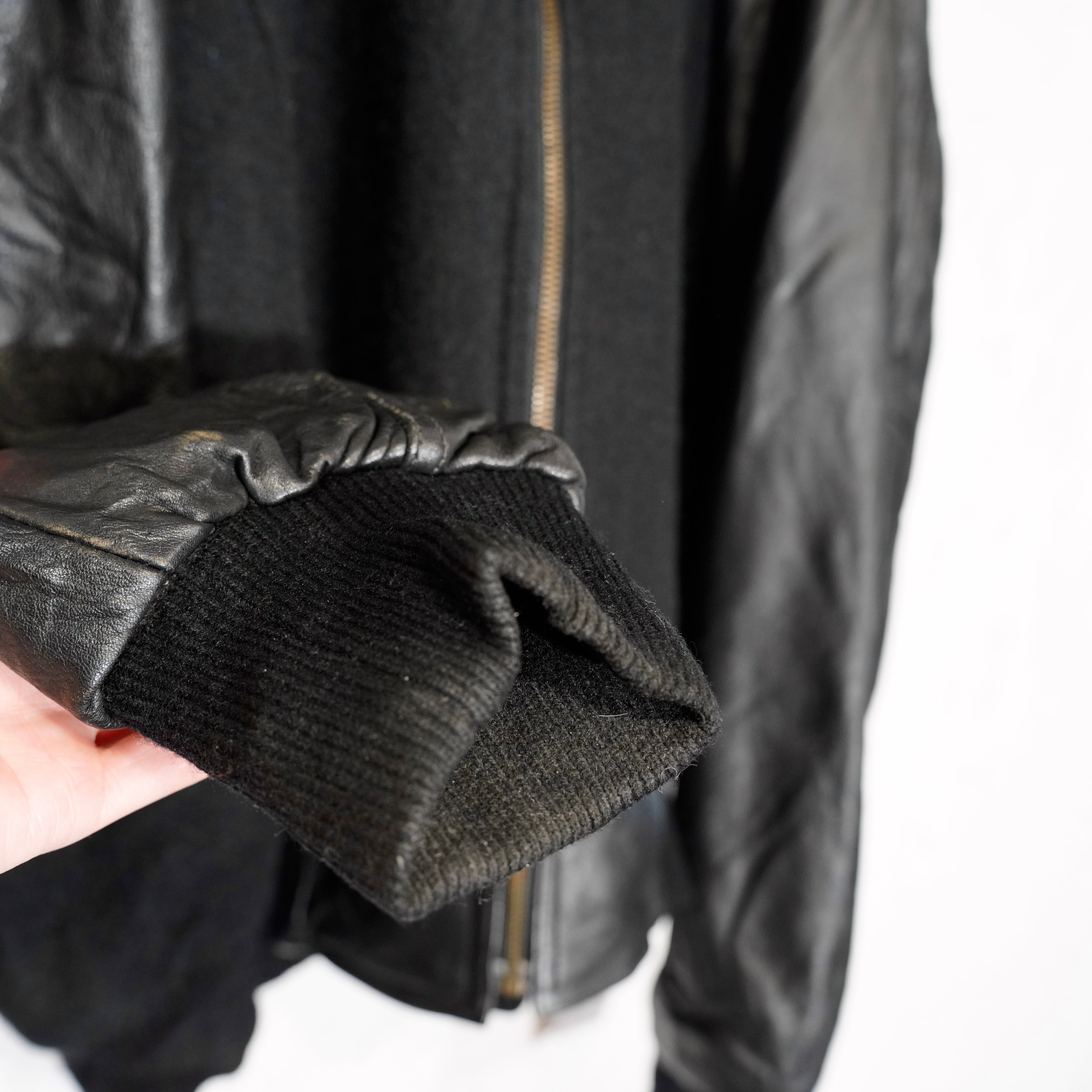 USA VINTAGE BLACK COLOR LEATHER MELTON ZIP UP BLOUSON/アメリカ古着ブラックカラーレザーメルトンジップアップブルゾン