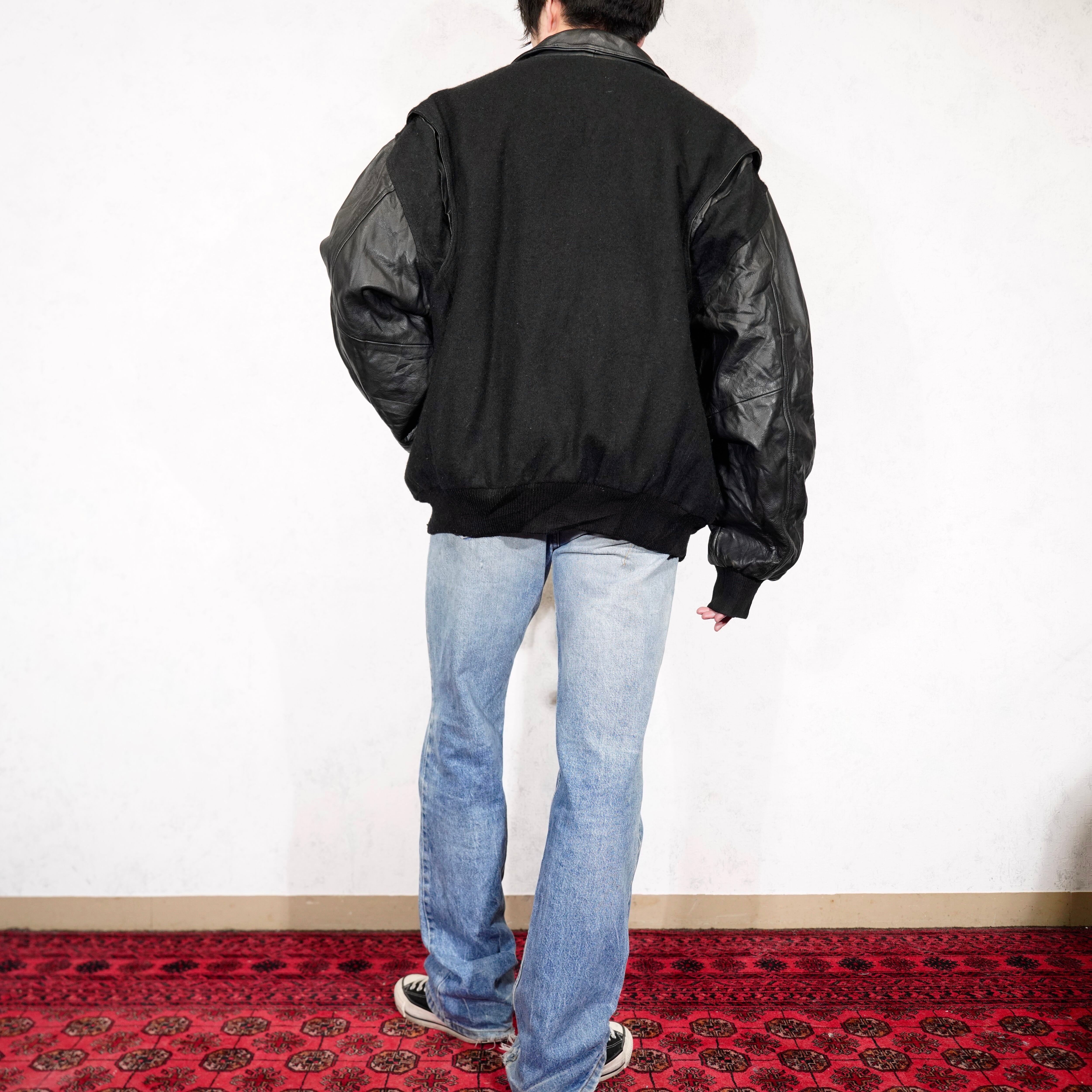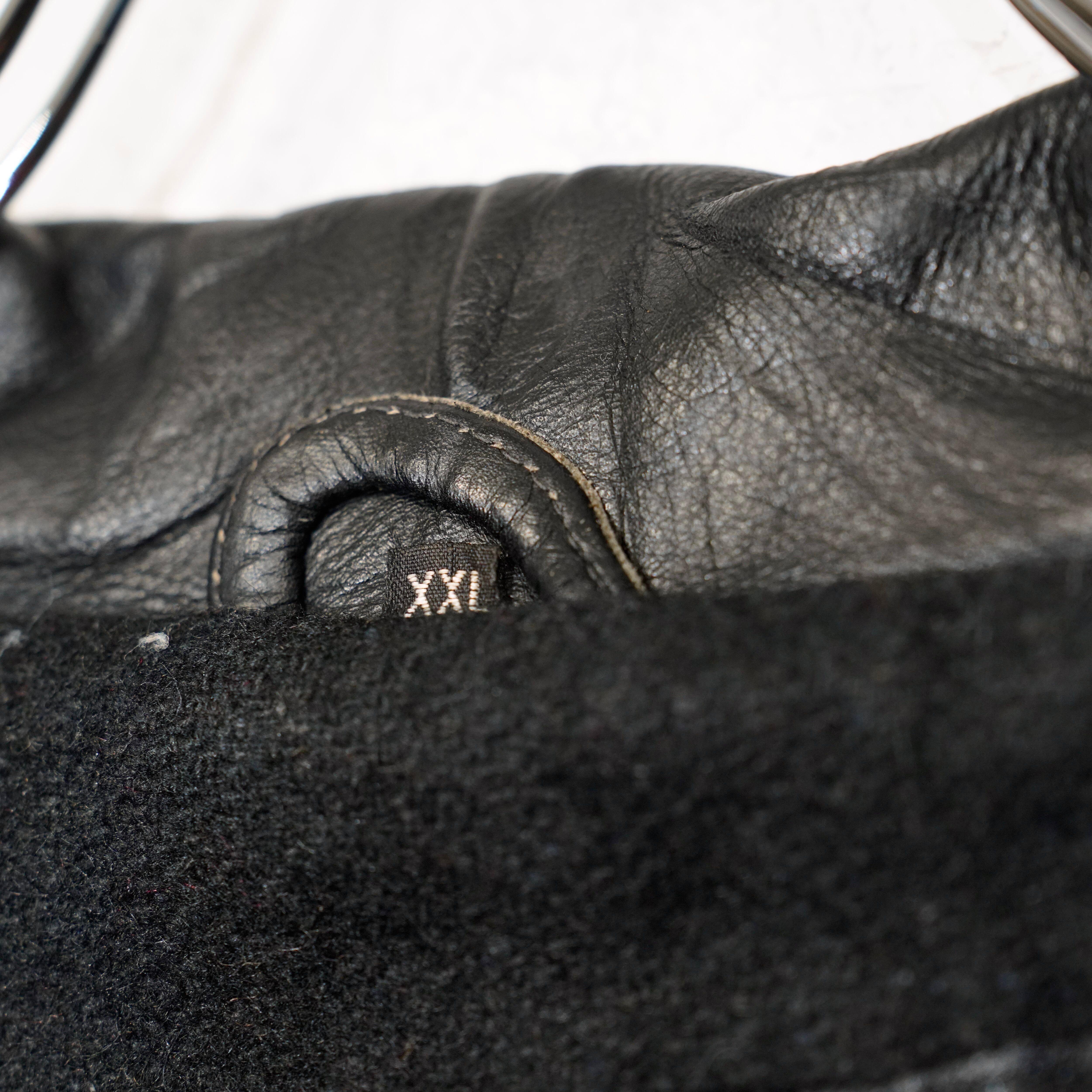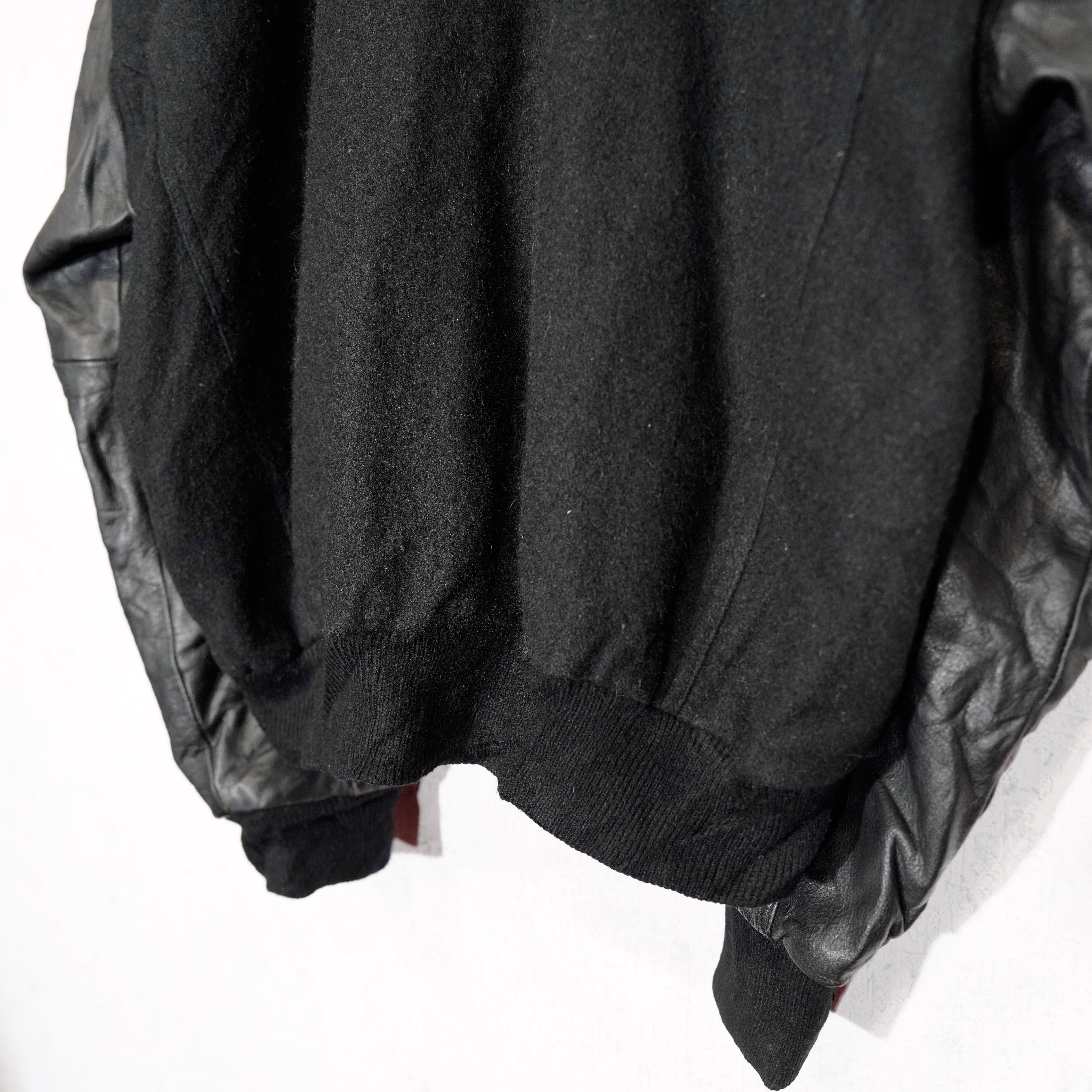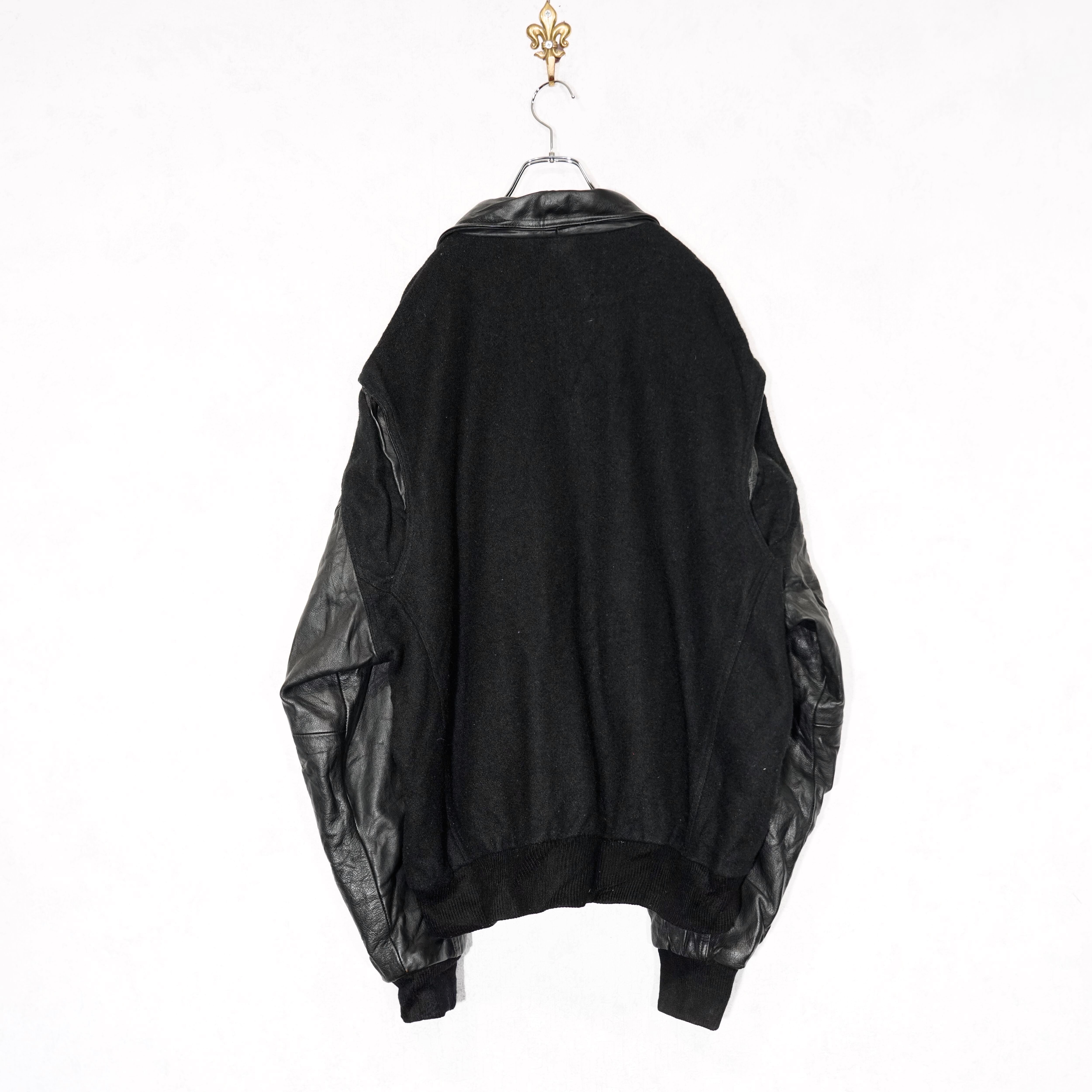 USA VINTAGE BLACK COLOR LEATHER MELTON ZIP UP BLOUSON/アメリカ古着ブラックカラーレザーメルトンジップアップブルゾン