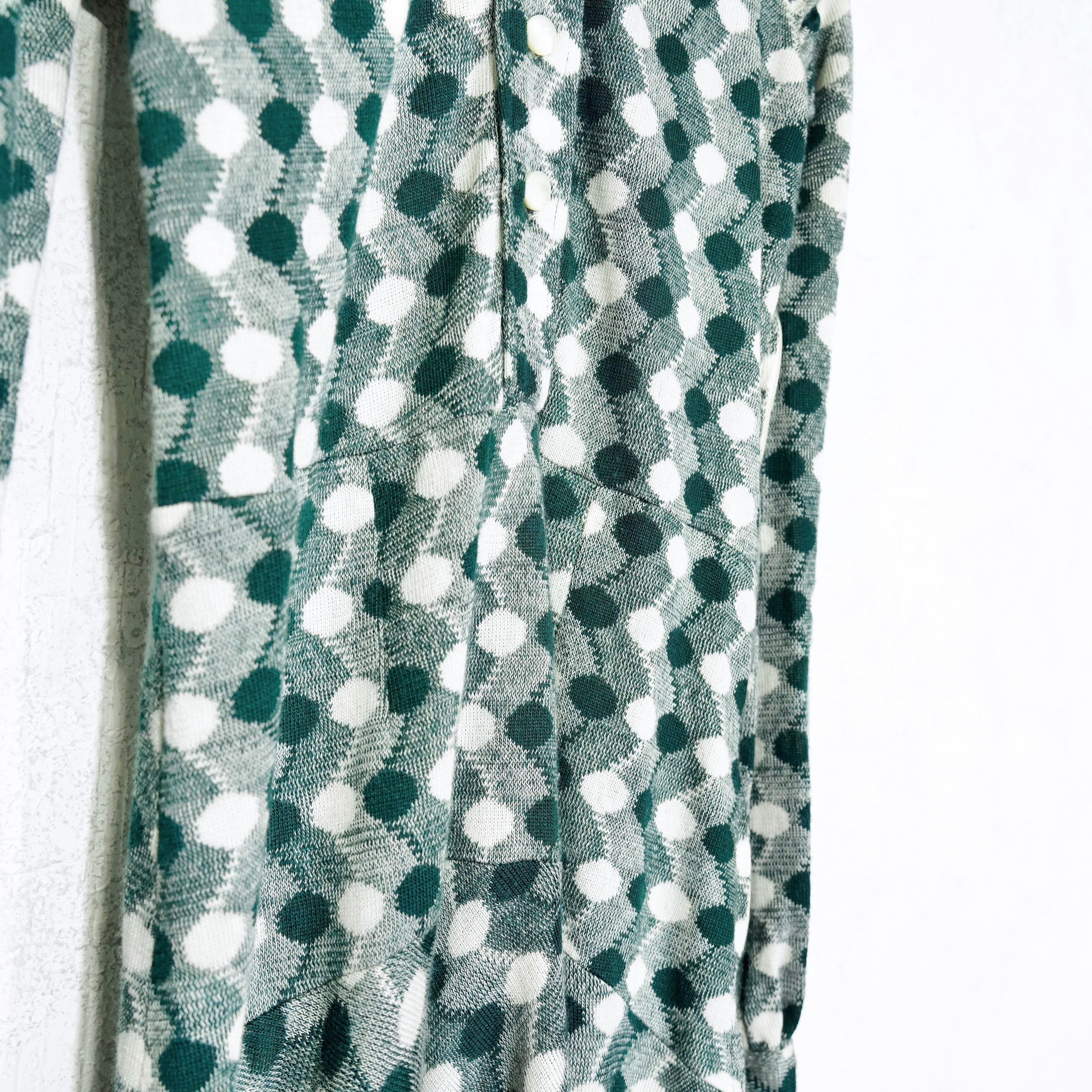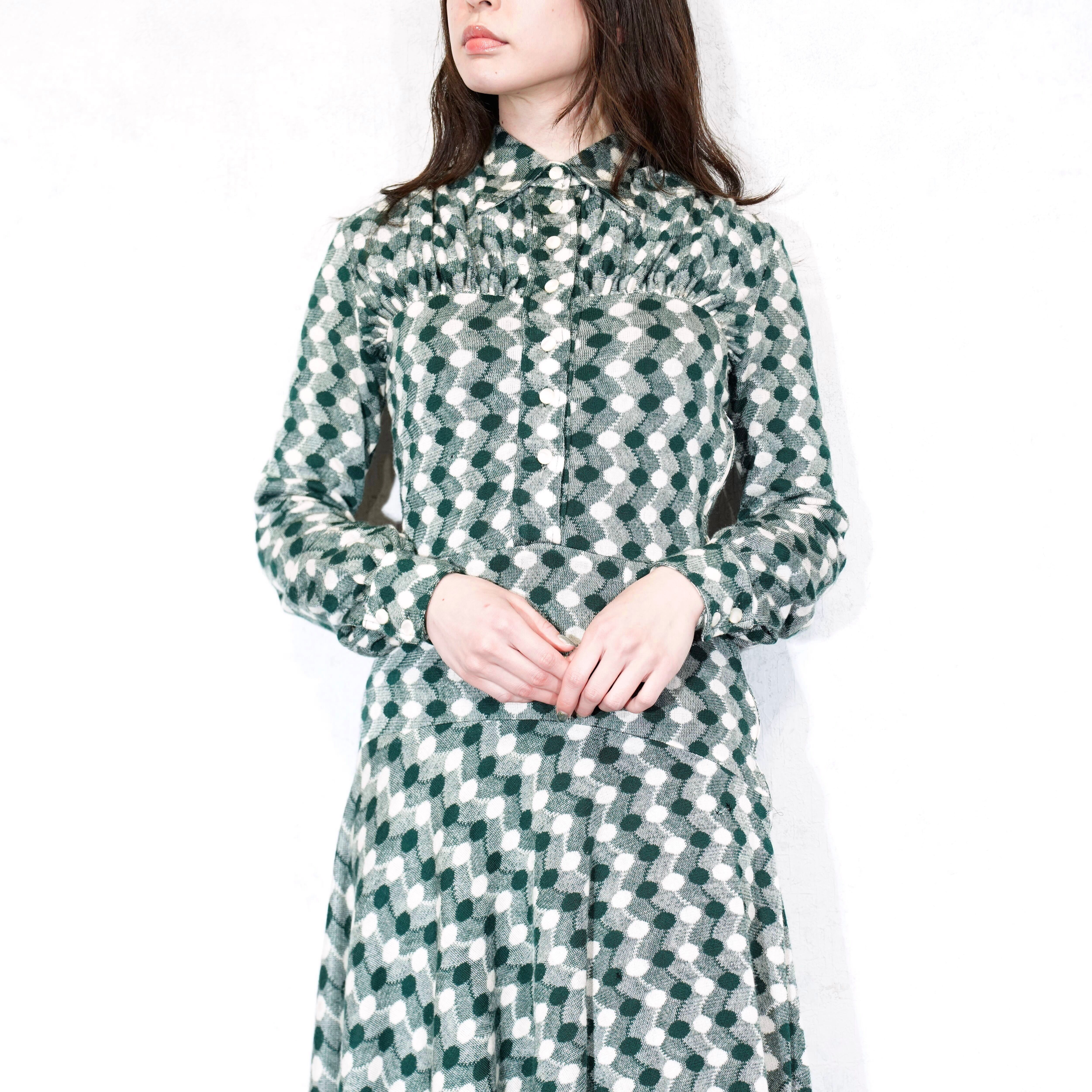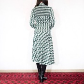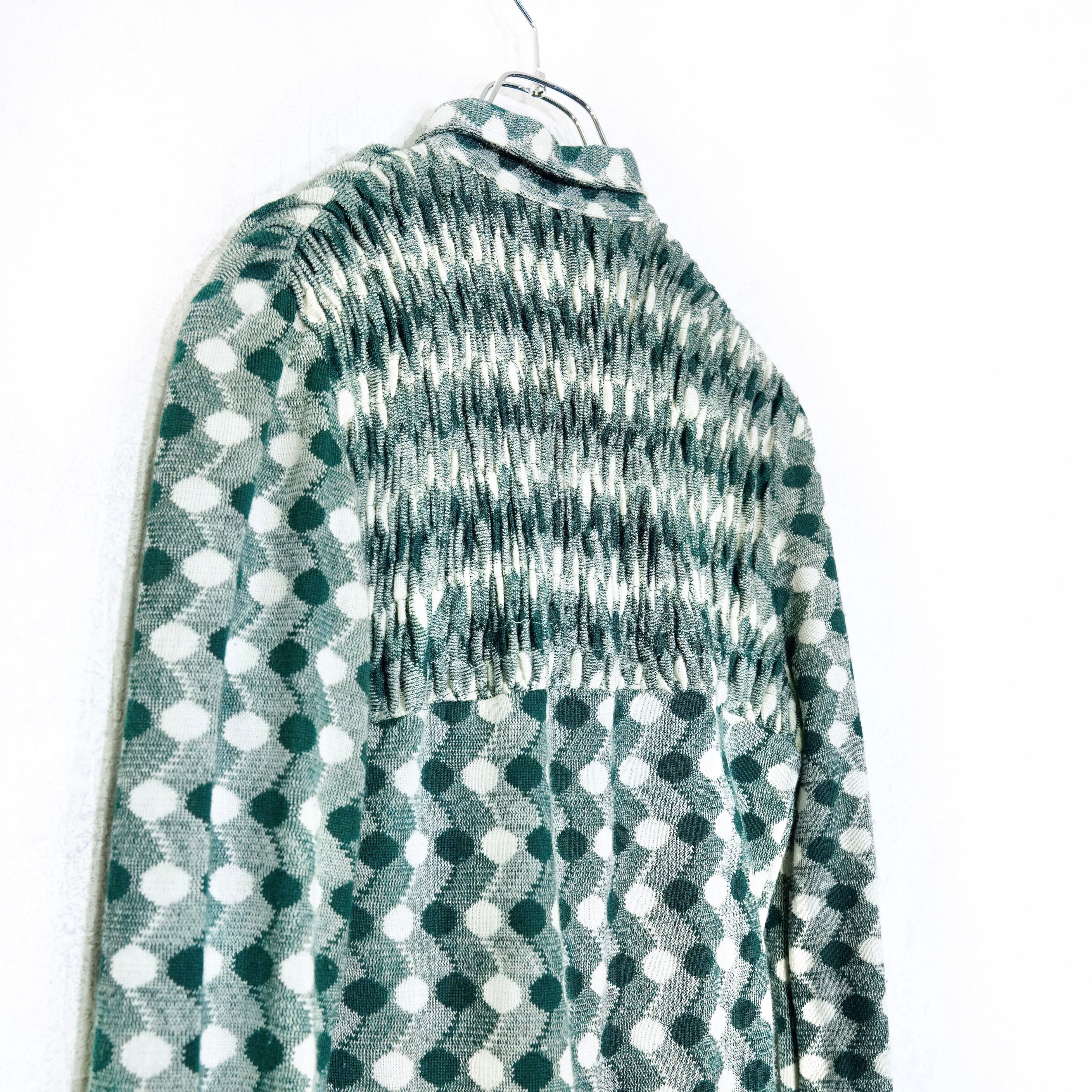 60's USA VINTAGE PATTERNED SMOCKING DESIGN KNIT ONE PIECE/60年代アメリカ古着柄スモッキングデザインニットワンピース