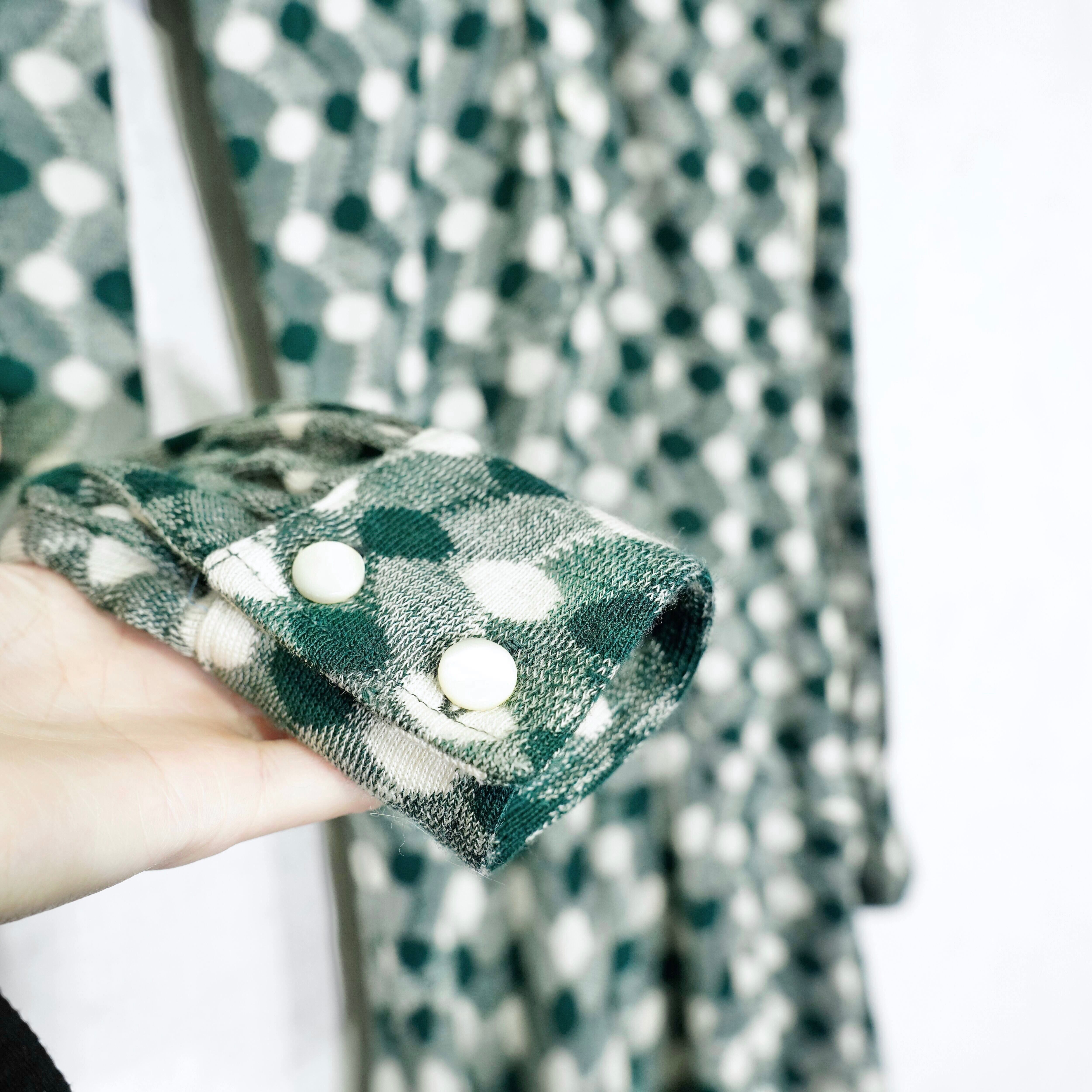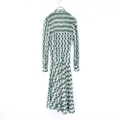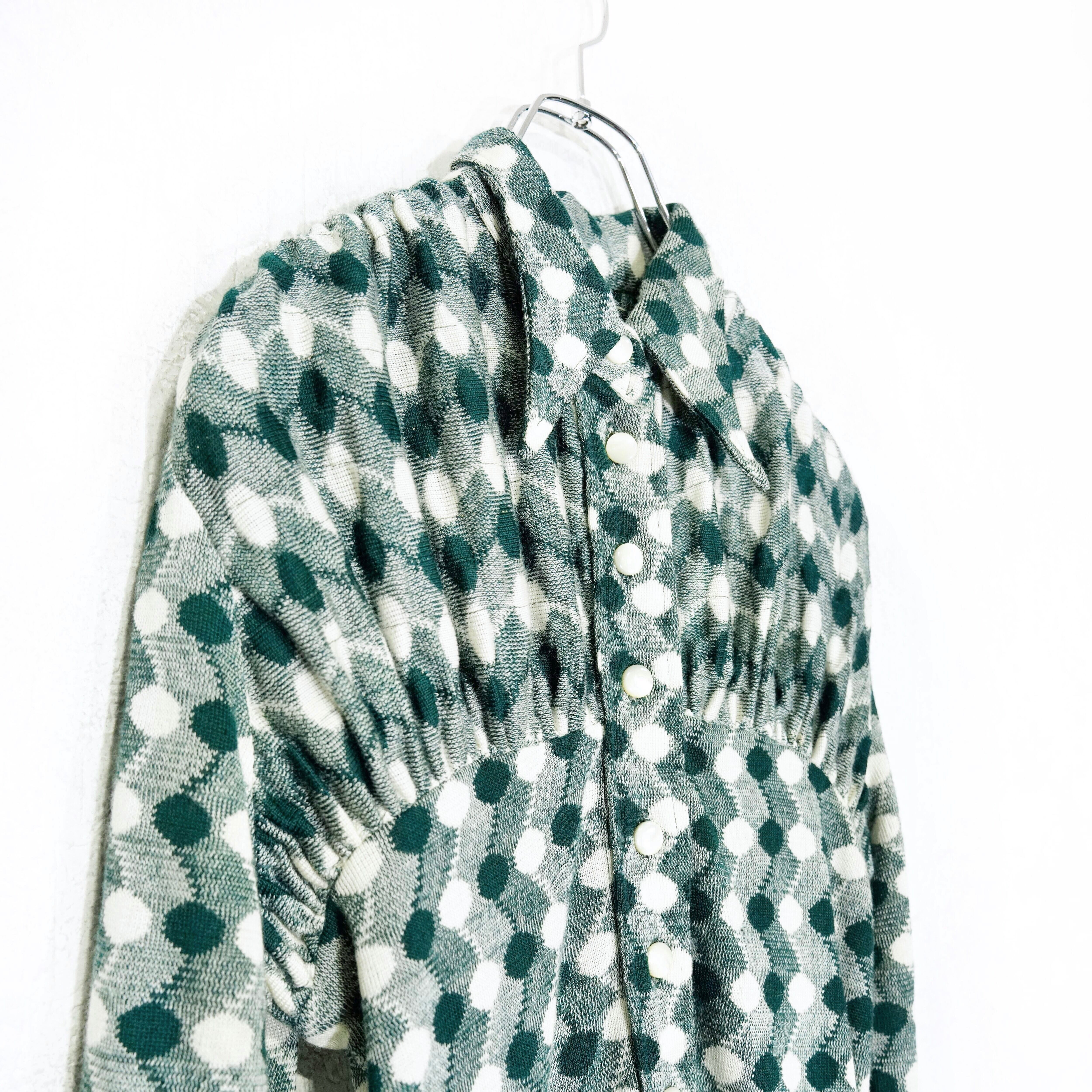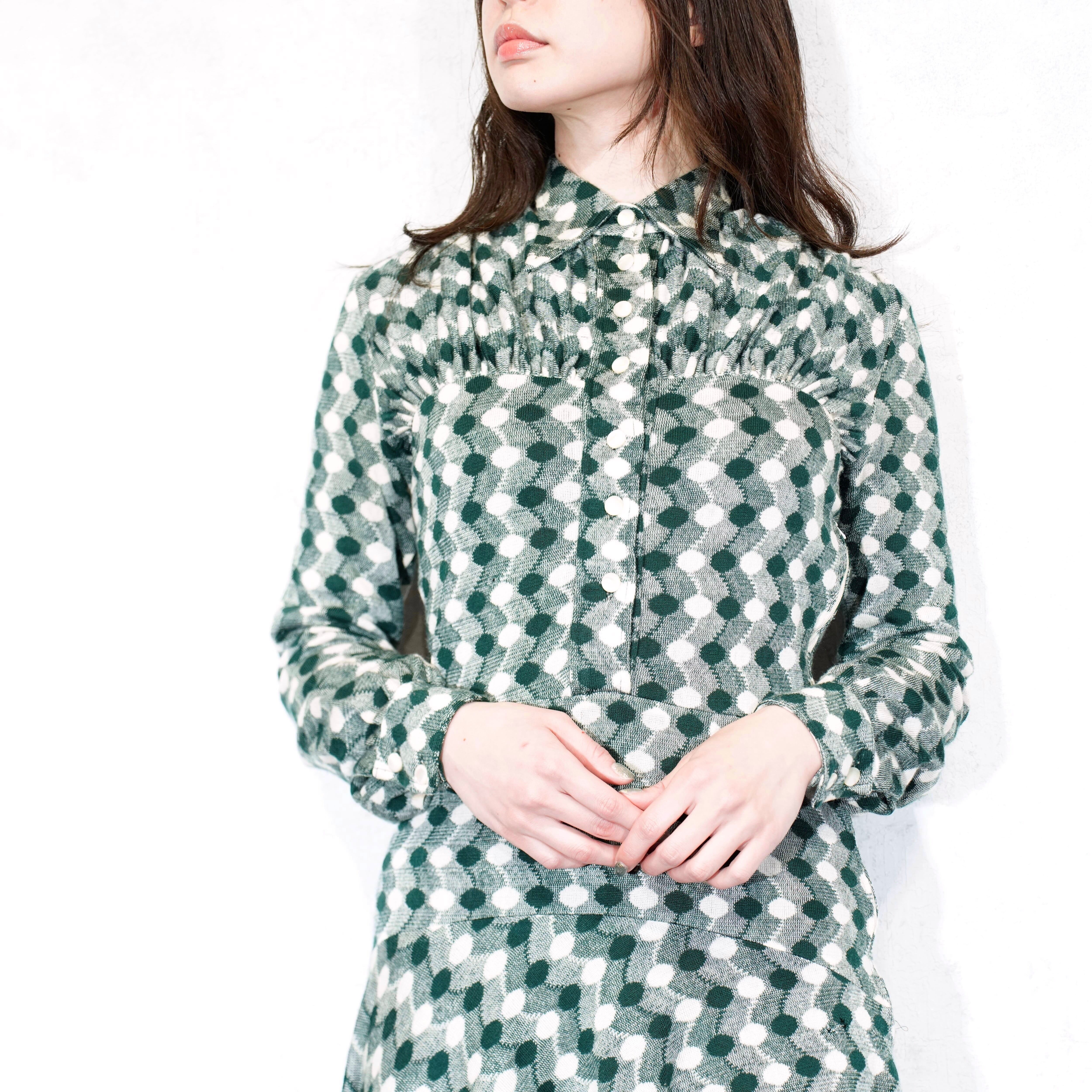 60's USA VINTAGE PATTERNED SMOCKING DESIGN KNIT ONE PIECE/60年代アメリカ古着柄スモッキングデザインニットワンピース