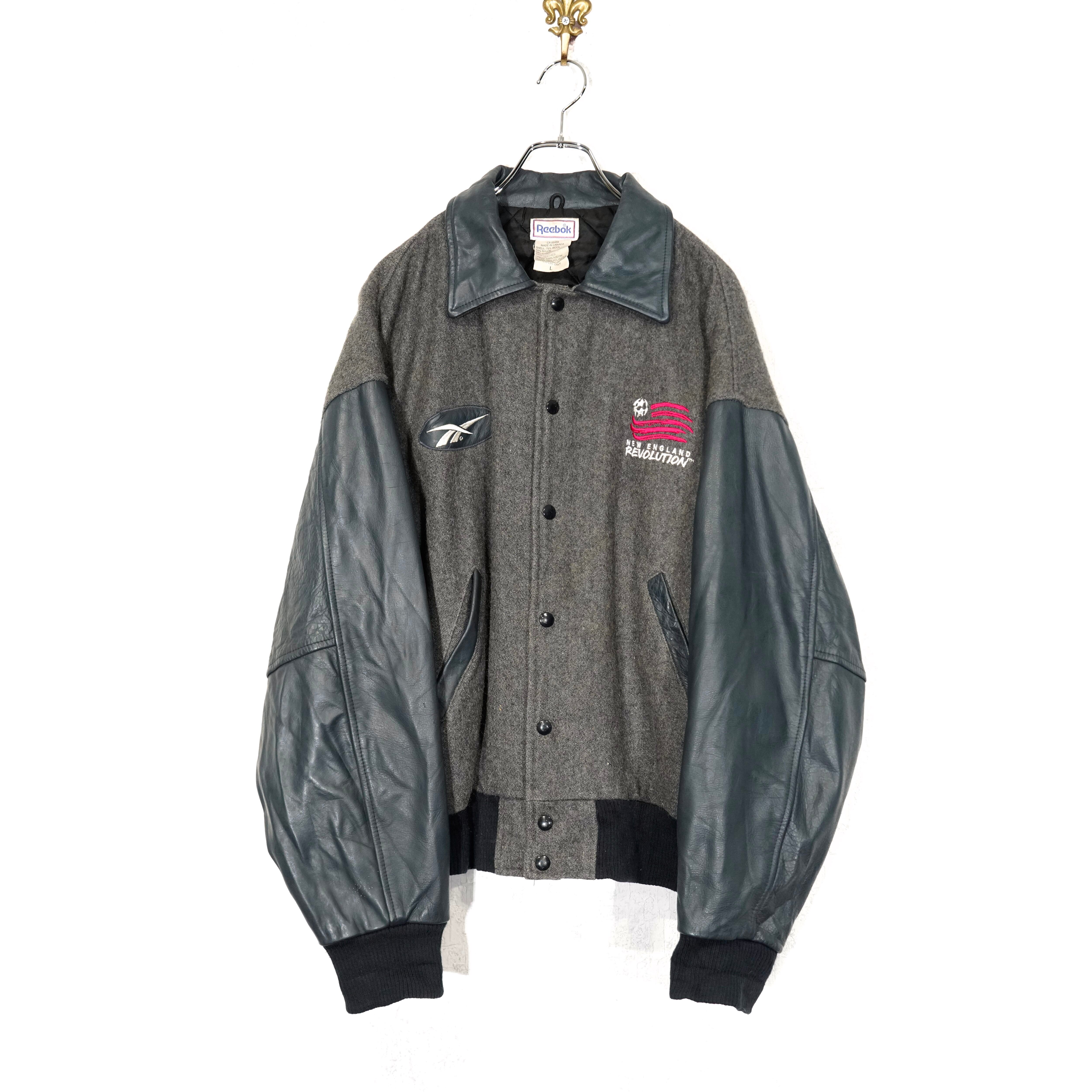 *SPECIAL ITEM* USA VINTAGE Reebok EMBROIDERY DESIGN LEATHER WOOL STADIUM JUMPER/アメリカ古着リーボック刺繍デザインレザーウールスタジャン