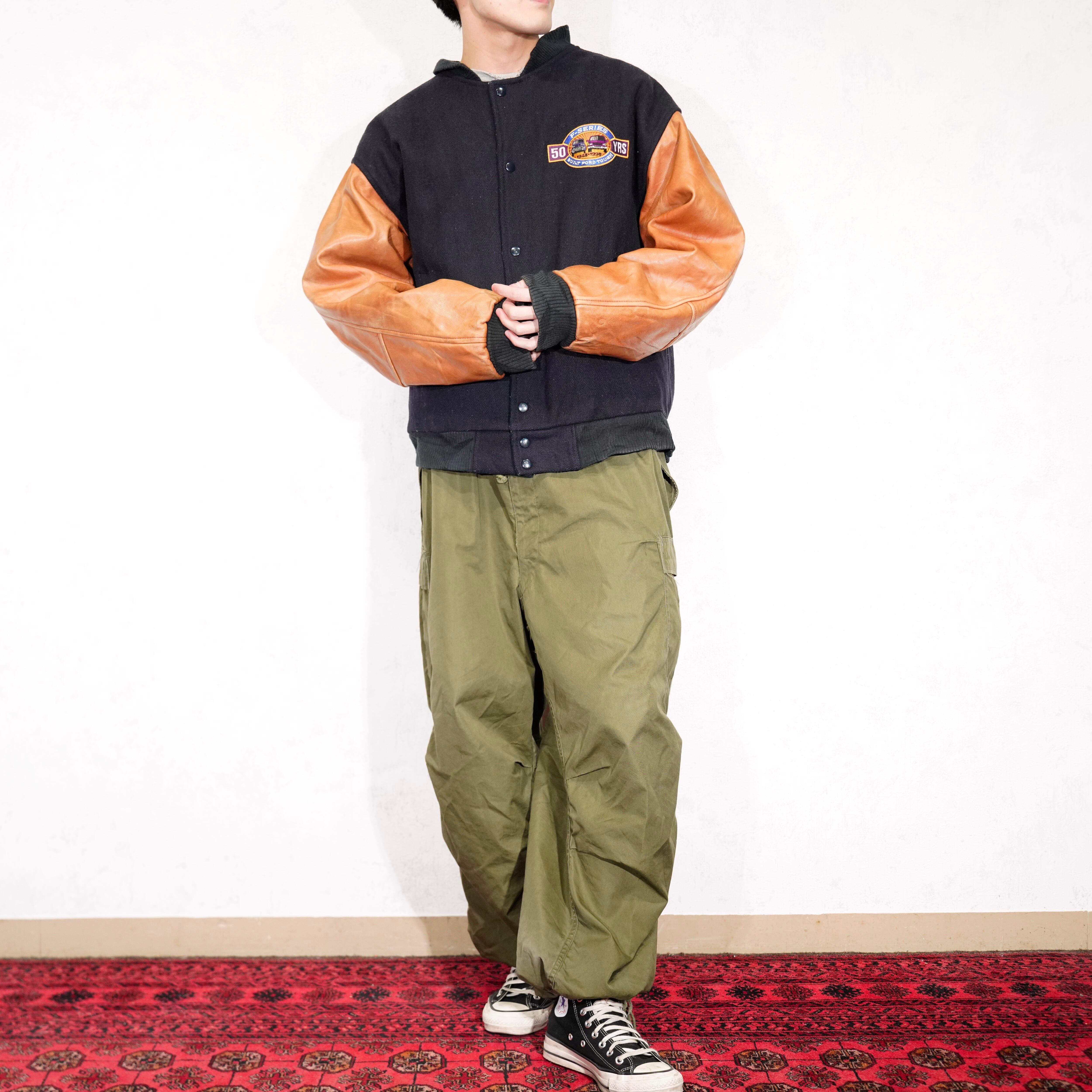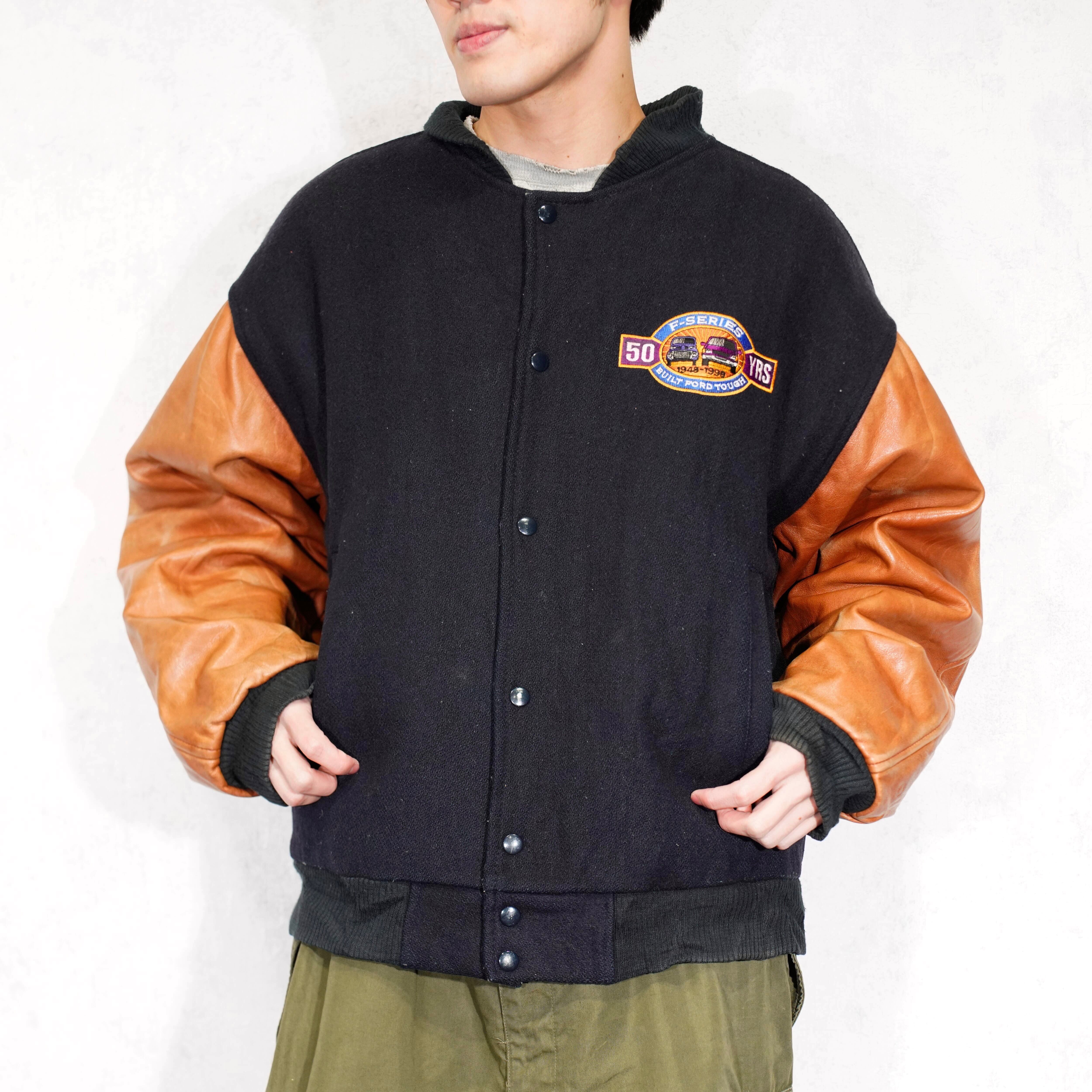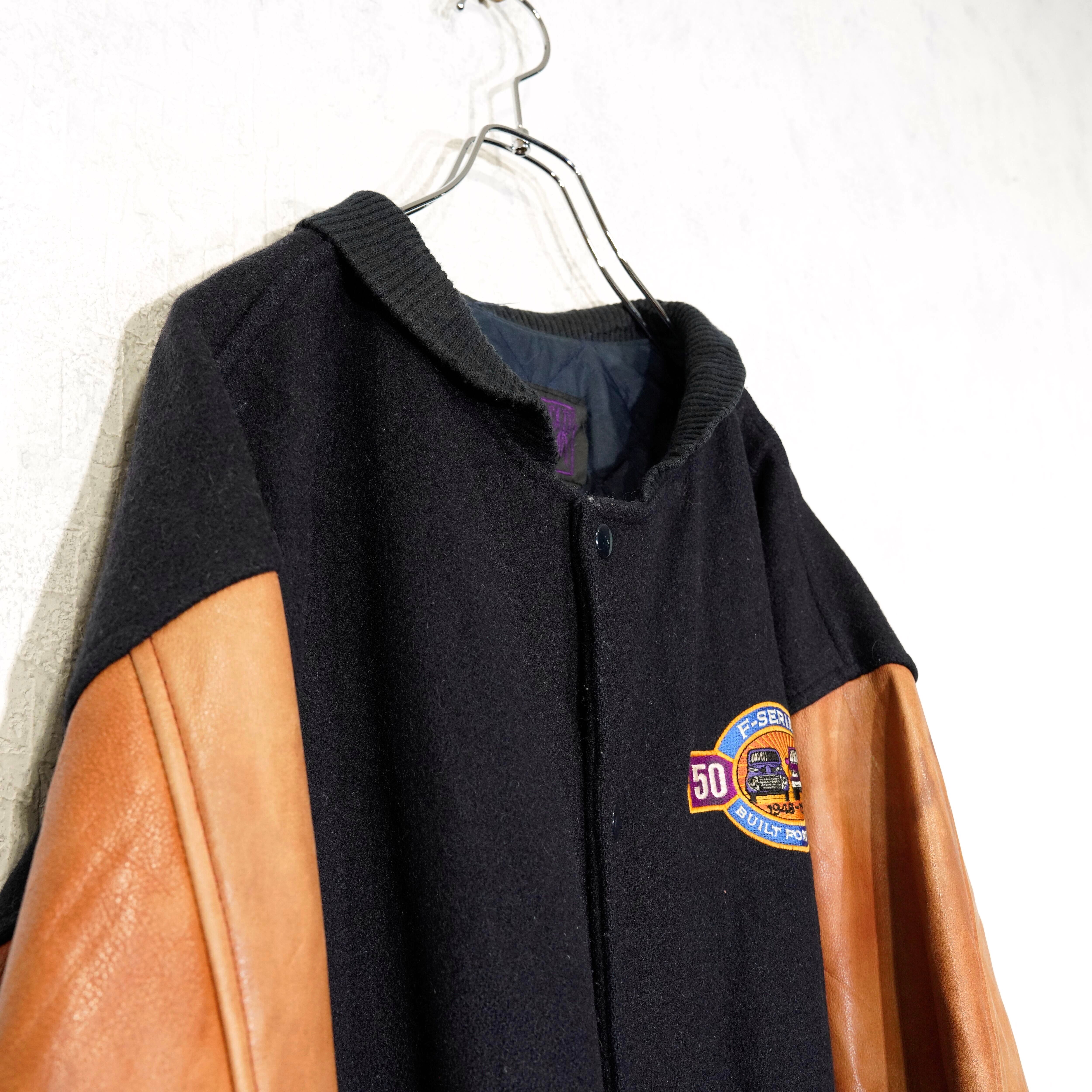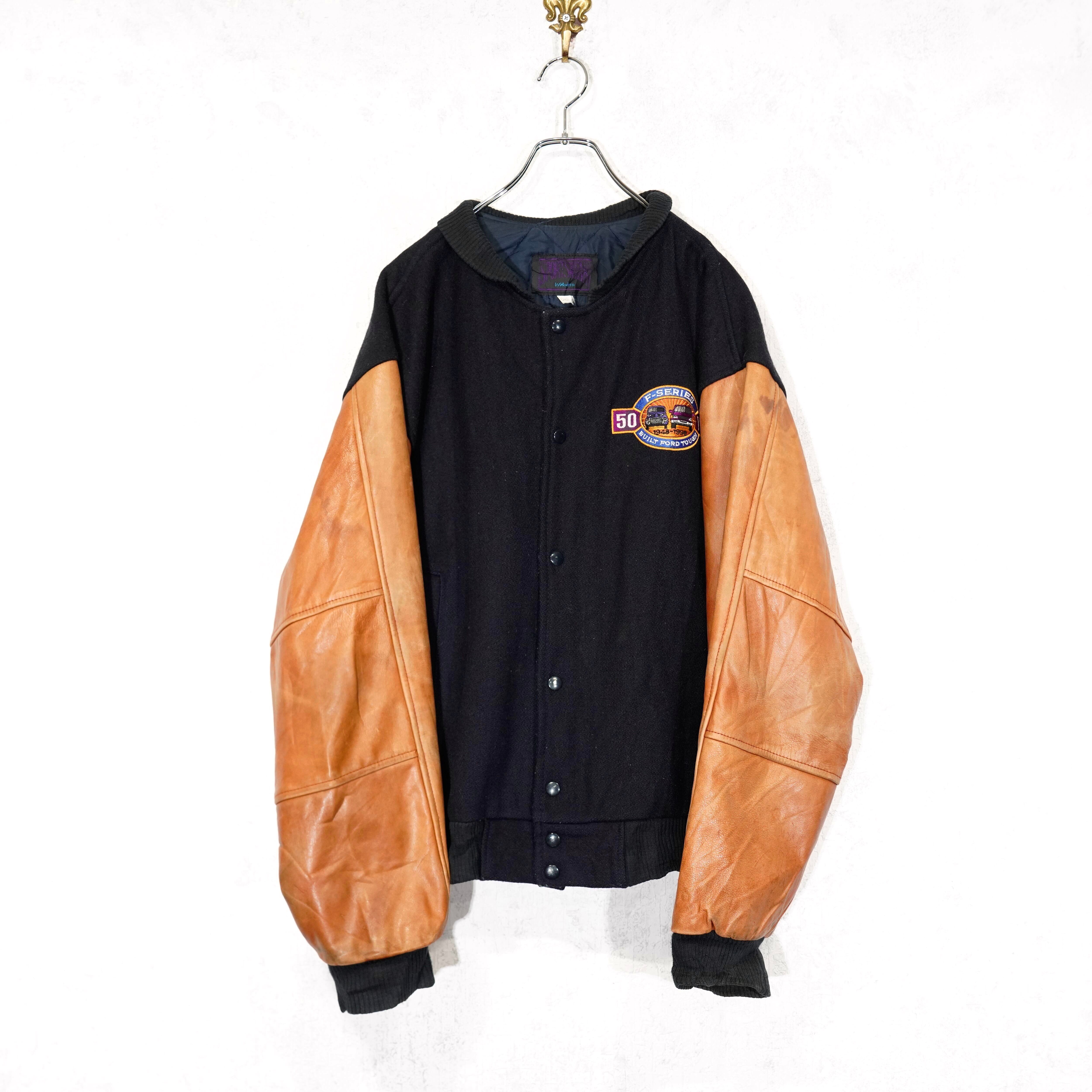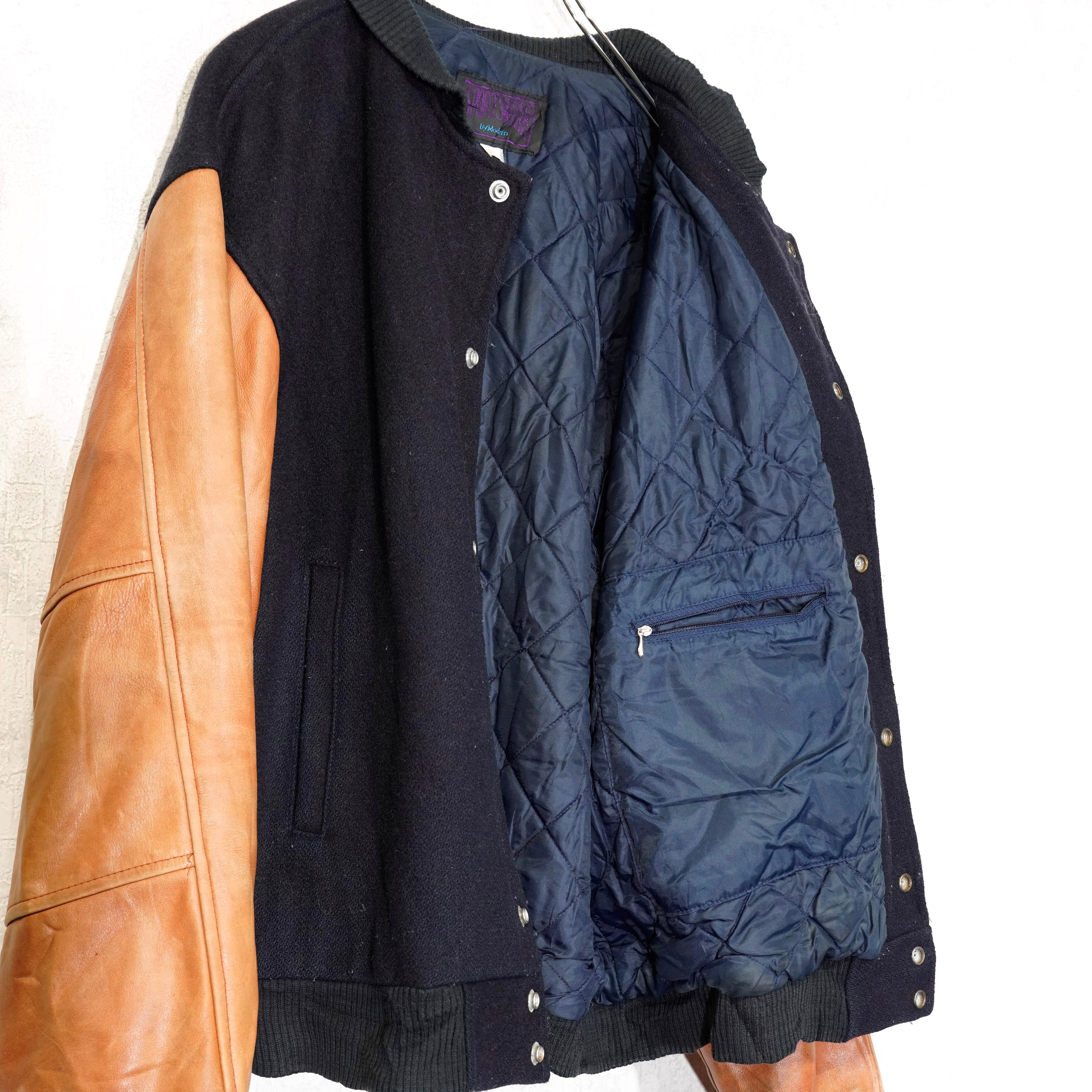USA VINTAGE SPORWSWEAR by Modern EMBROIDERY DESIGN LEATHER WOOL STUDIAM JUMPER/アメリカ古着刺繍デザインレザーウールスタジャン