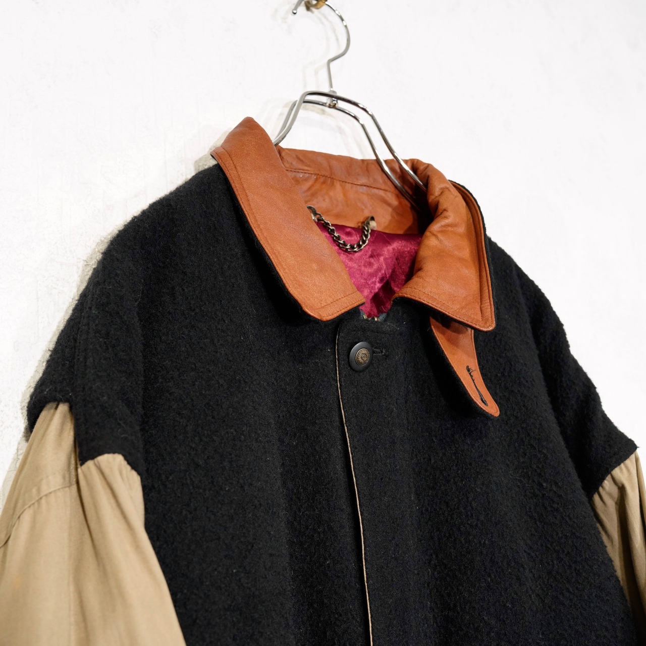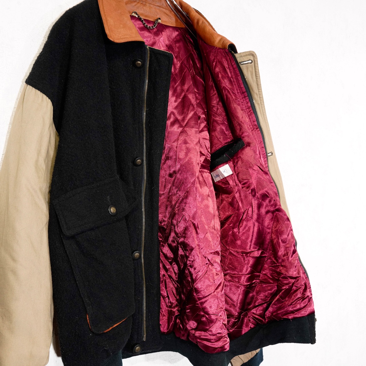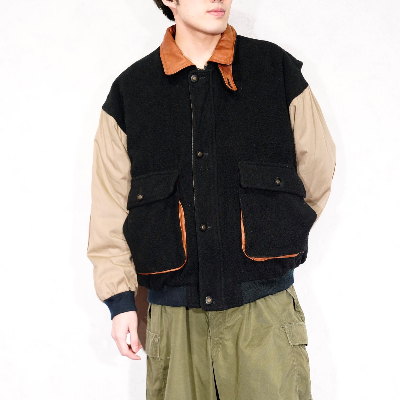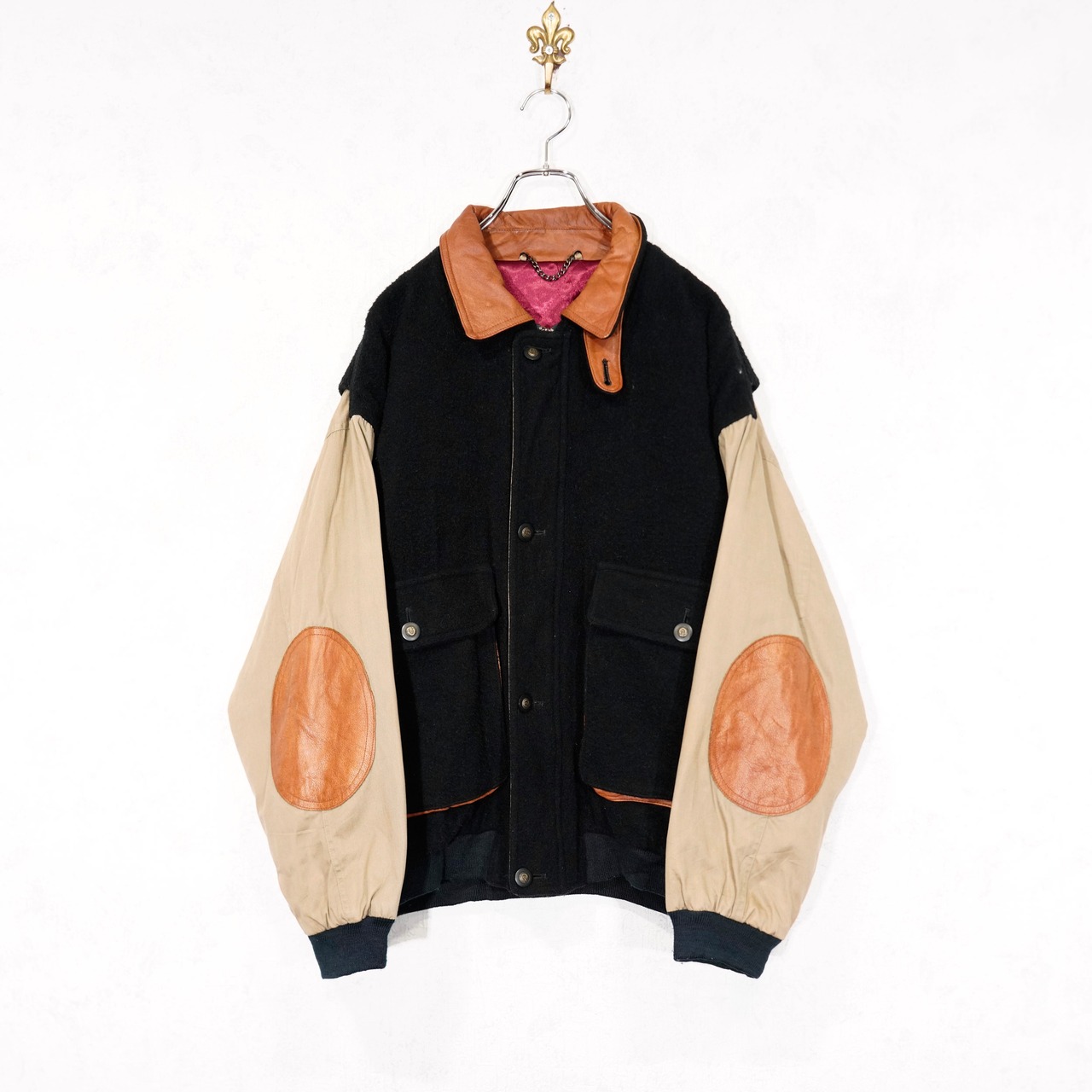 USA VINTAGE Bhs LEATHER PATCH DESIGN WOOL BLOUSON/アメリカ古着レザーパッチデザインウールブルゾン
