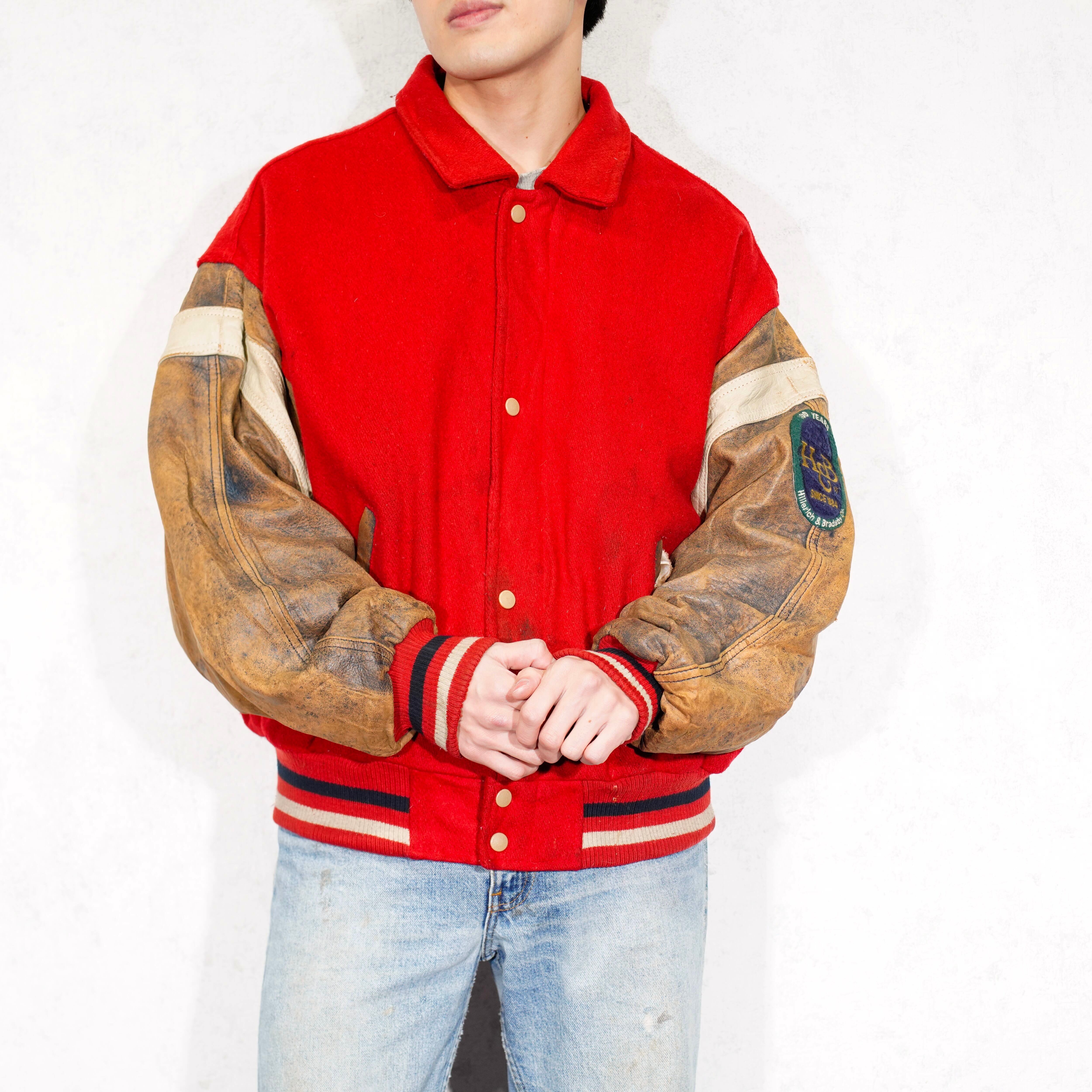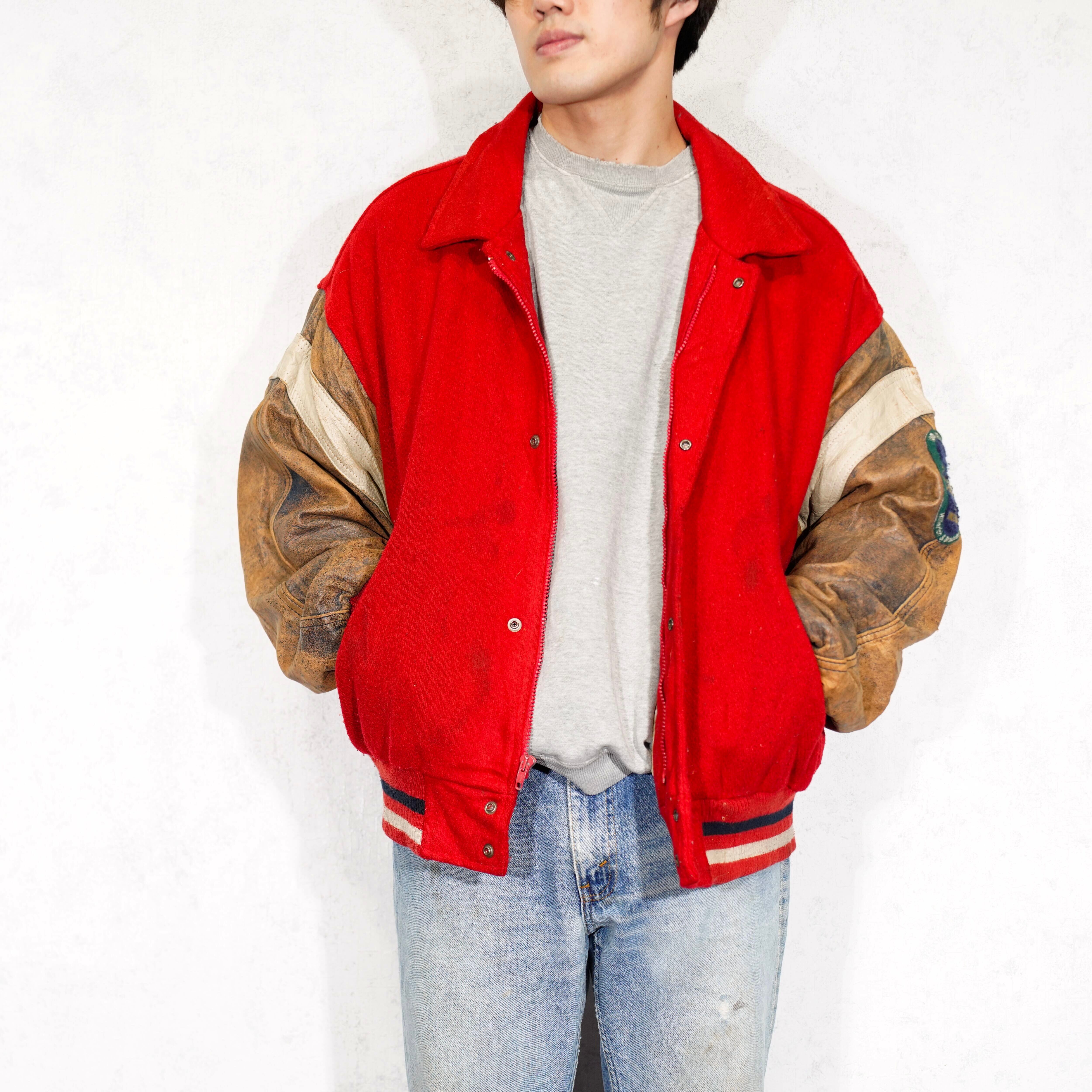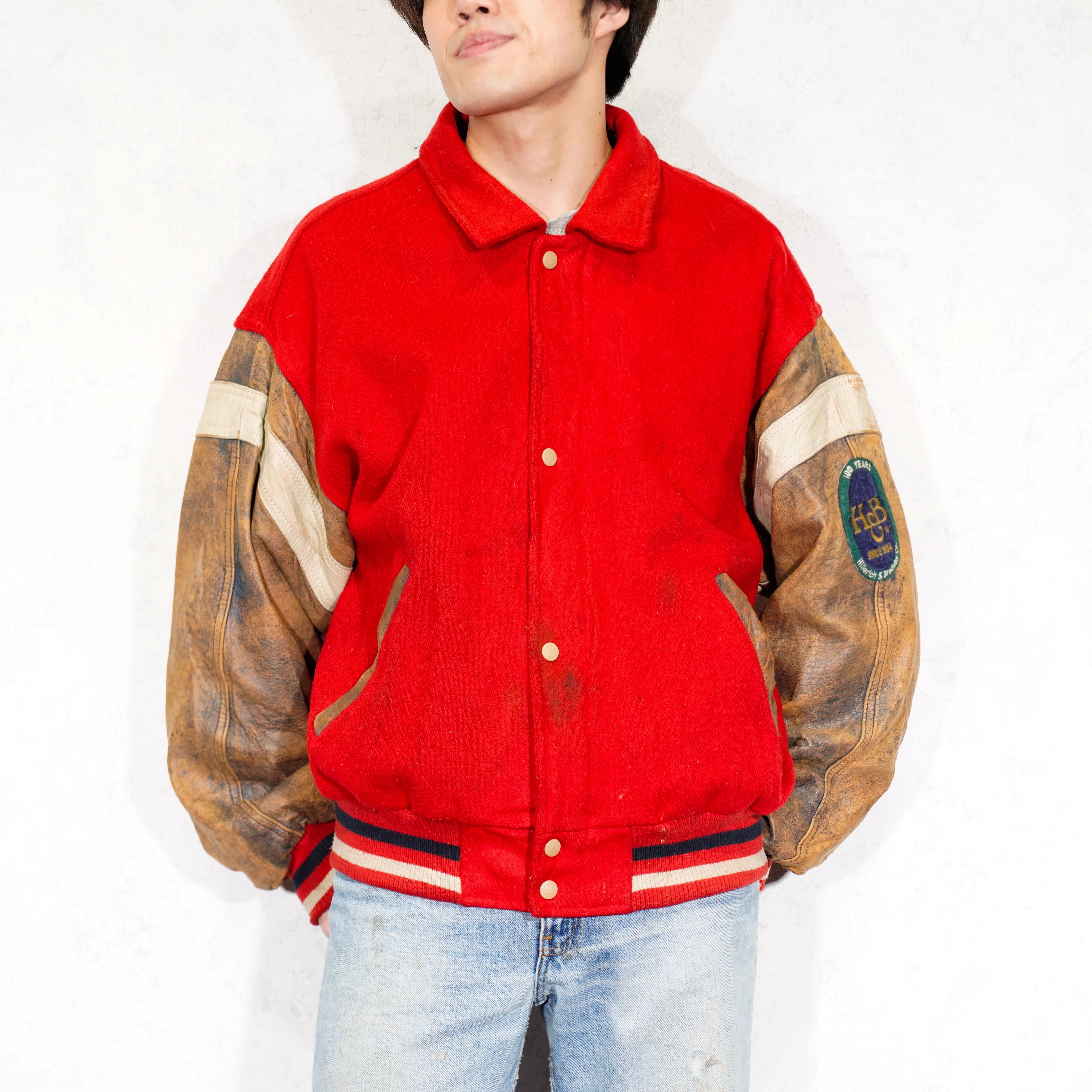 80's USA VINTAGE LOUISVILLE SLUGGER EMBREM DESIGN LEATHER WOOL STADIUM JUMPER/80年代アメリカ古着ルイスヴィルエンブレムデザインレザースタジャン