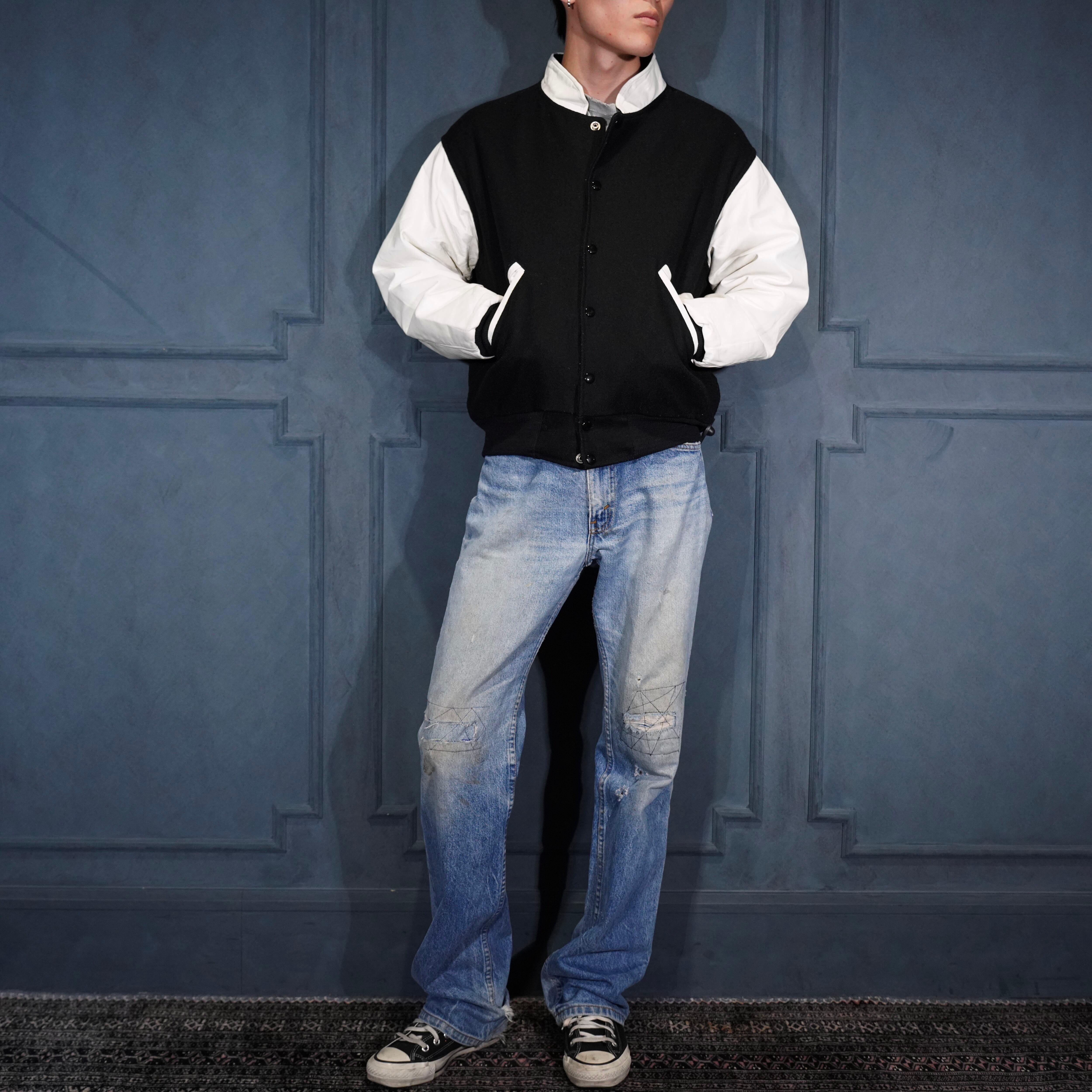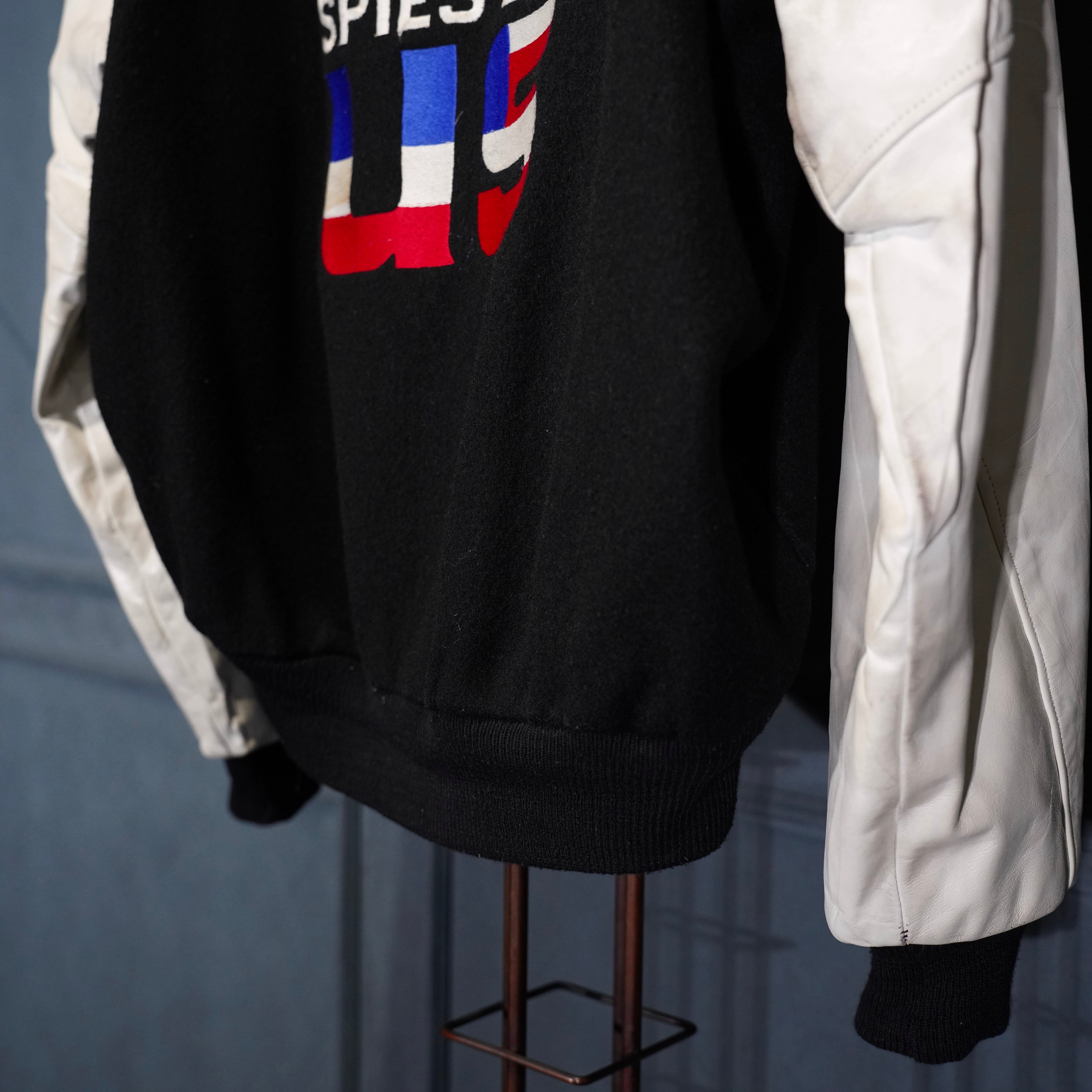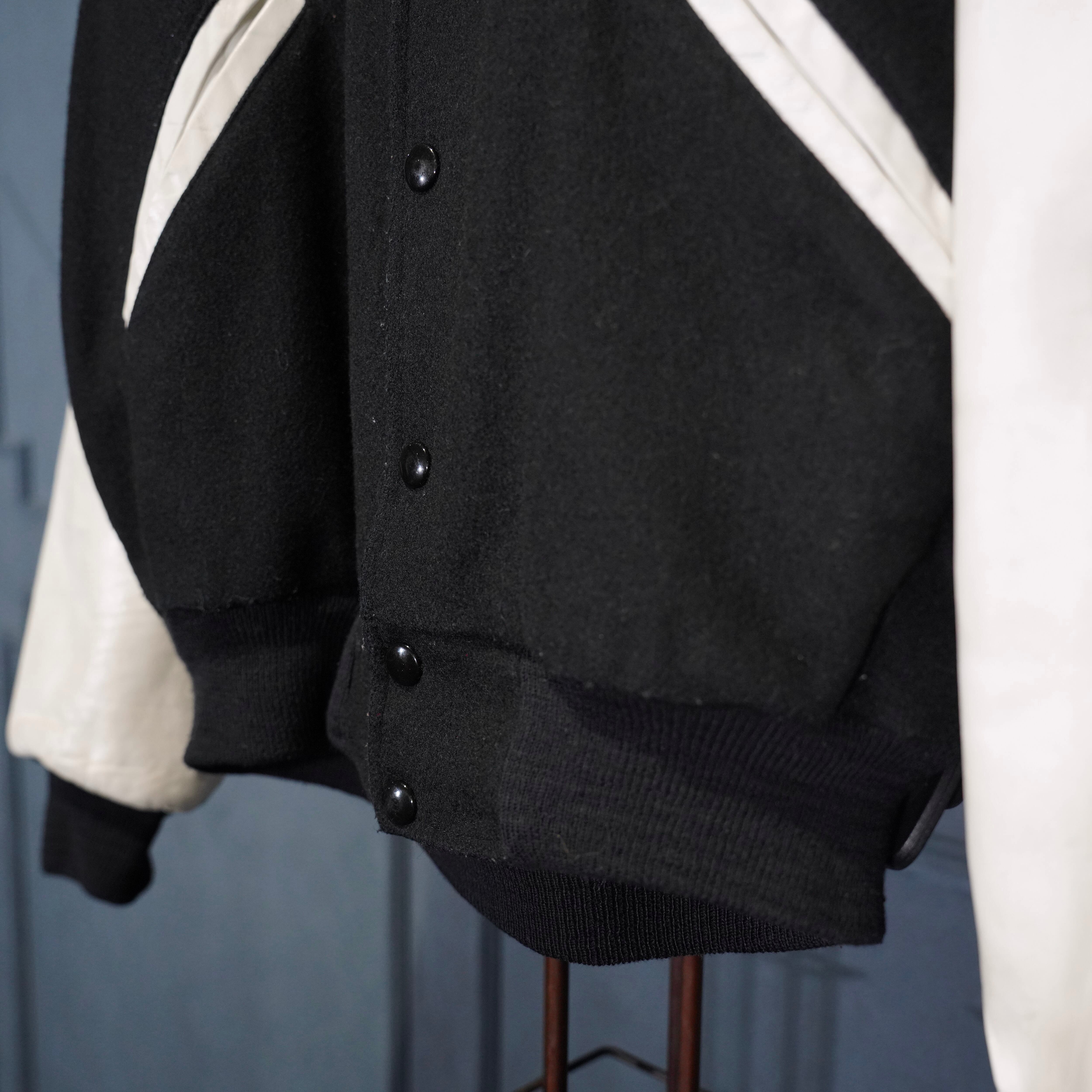 80's USA VINTAGE Satin Jackets BACK EMBROIDERY DESIGN LEATHER WOOL STADIUM JUMPER/80年代アメリカ古着バック刺繍デザインレザーウールスタジャン