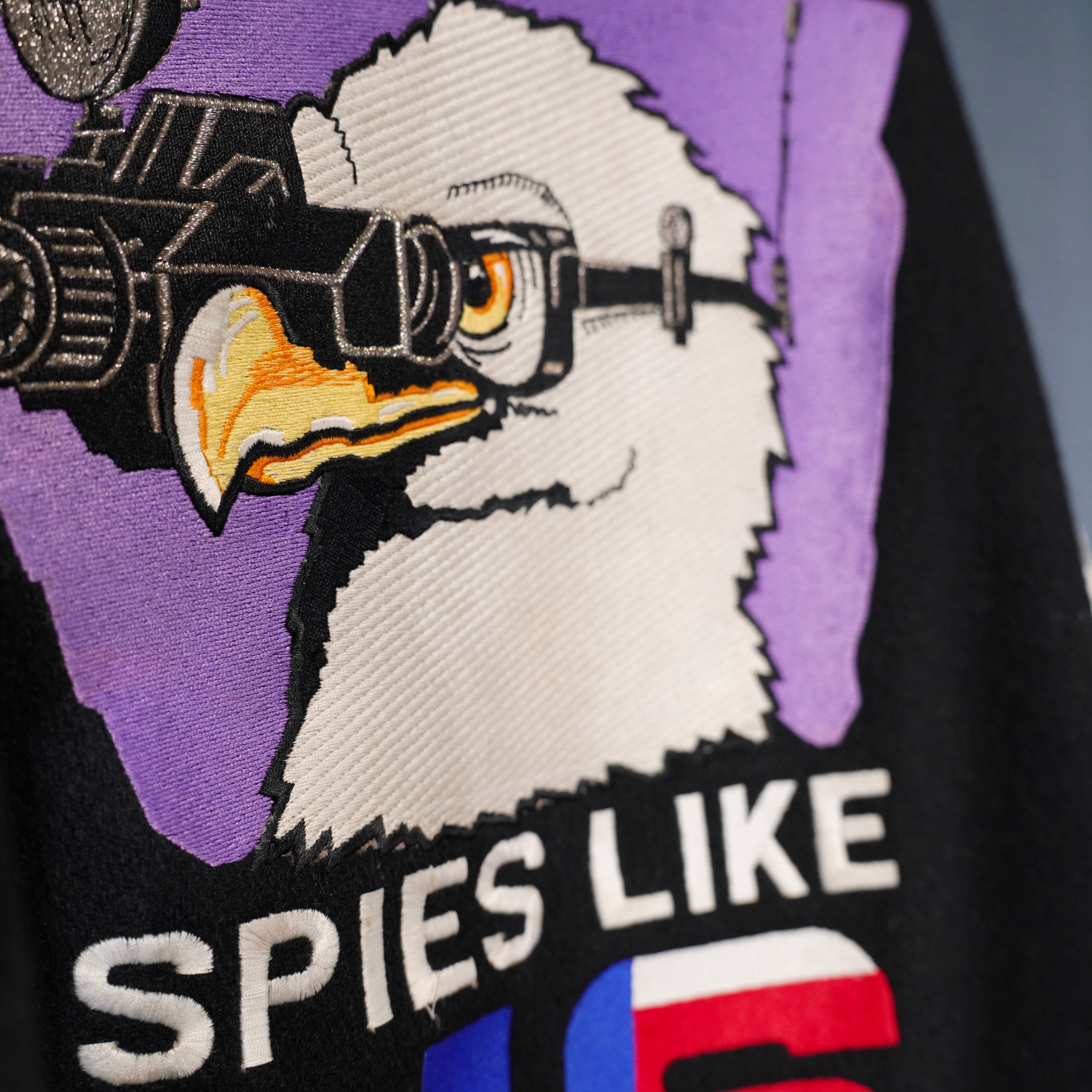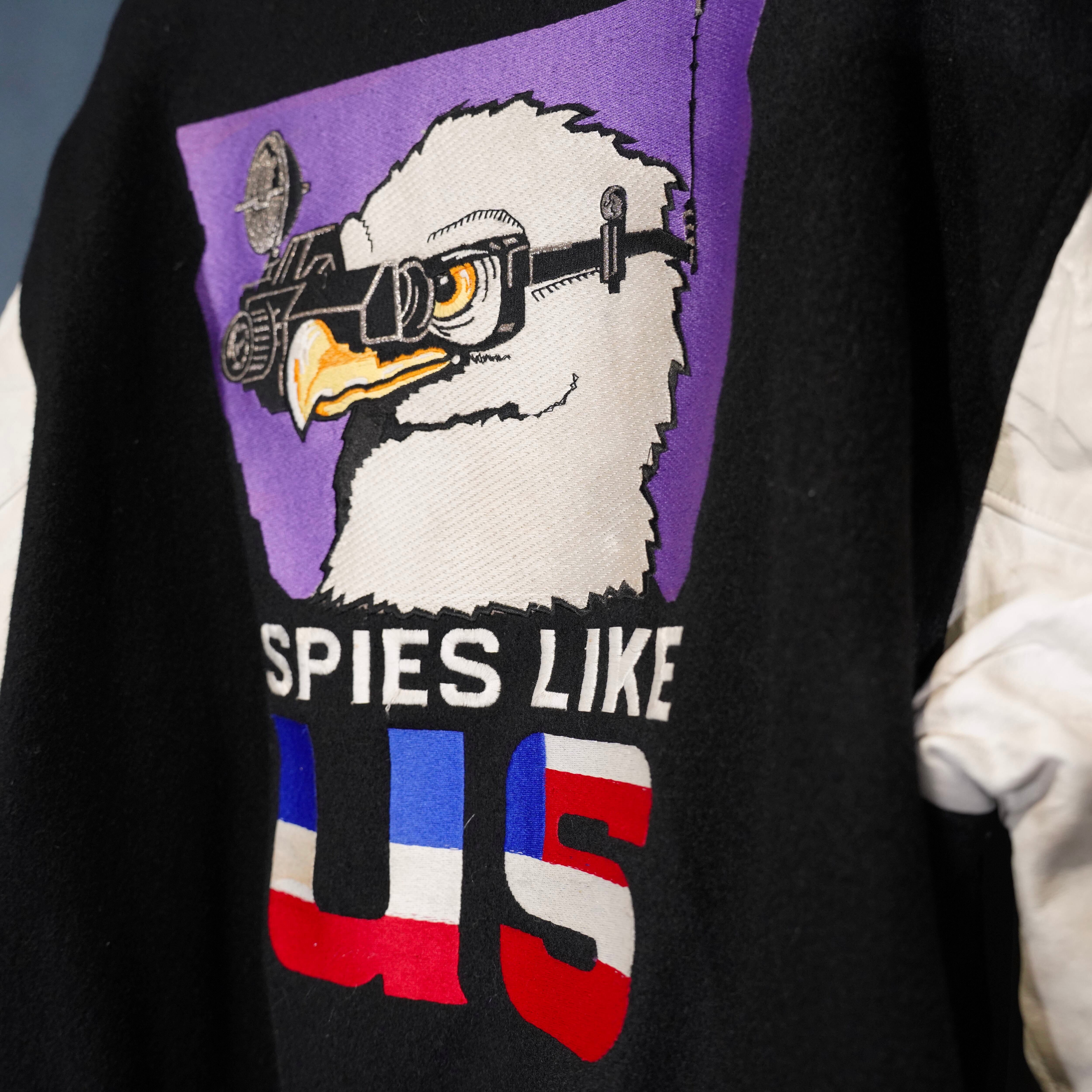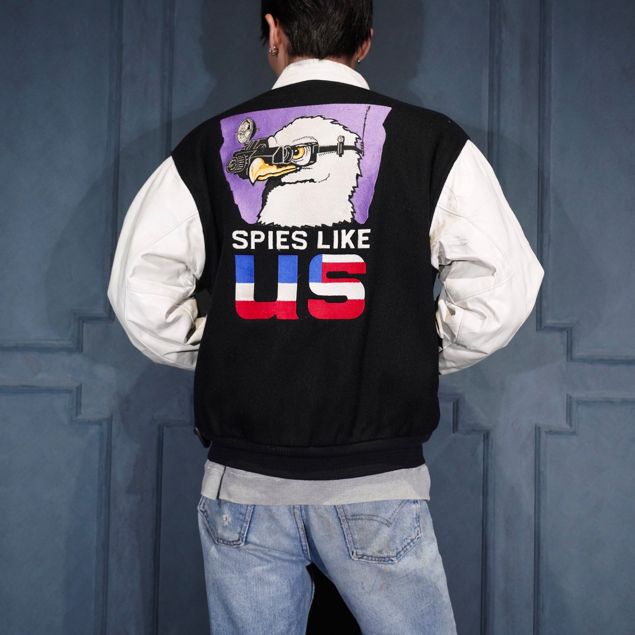 80's USA VINTAGE Satin Jackets BACK EMBROIDERY DESIGN LEATHER WOOL STADIUM JUMPER/80年代アメリカ古着バック刺繍デザインレザーウールスタジャン