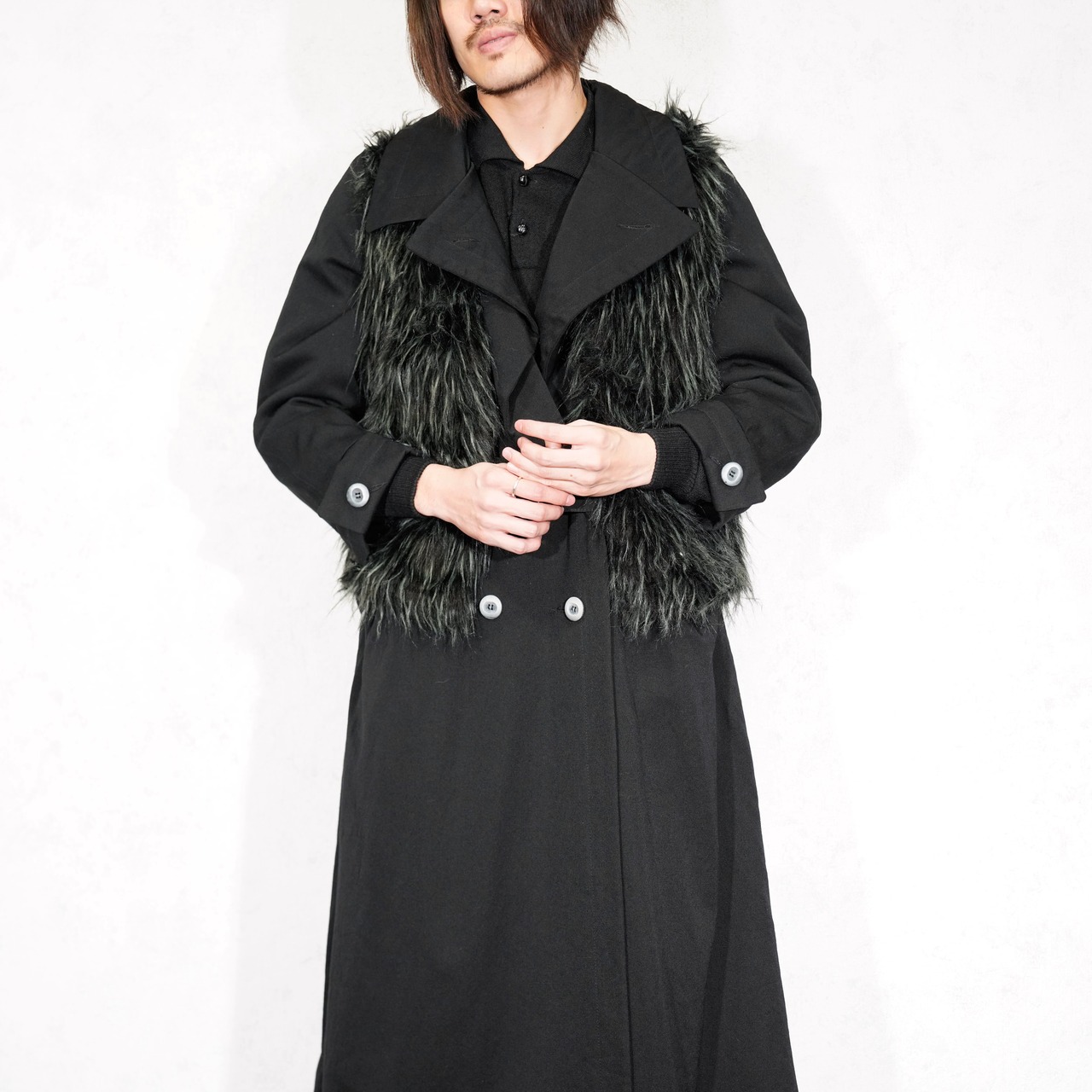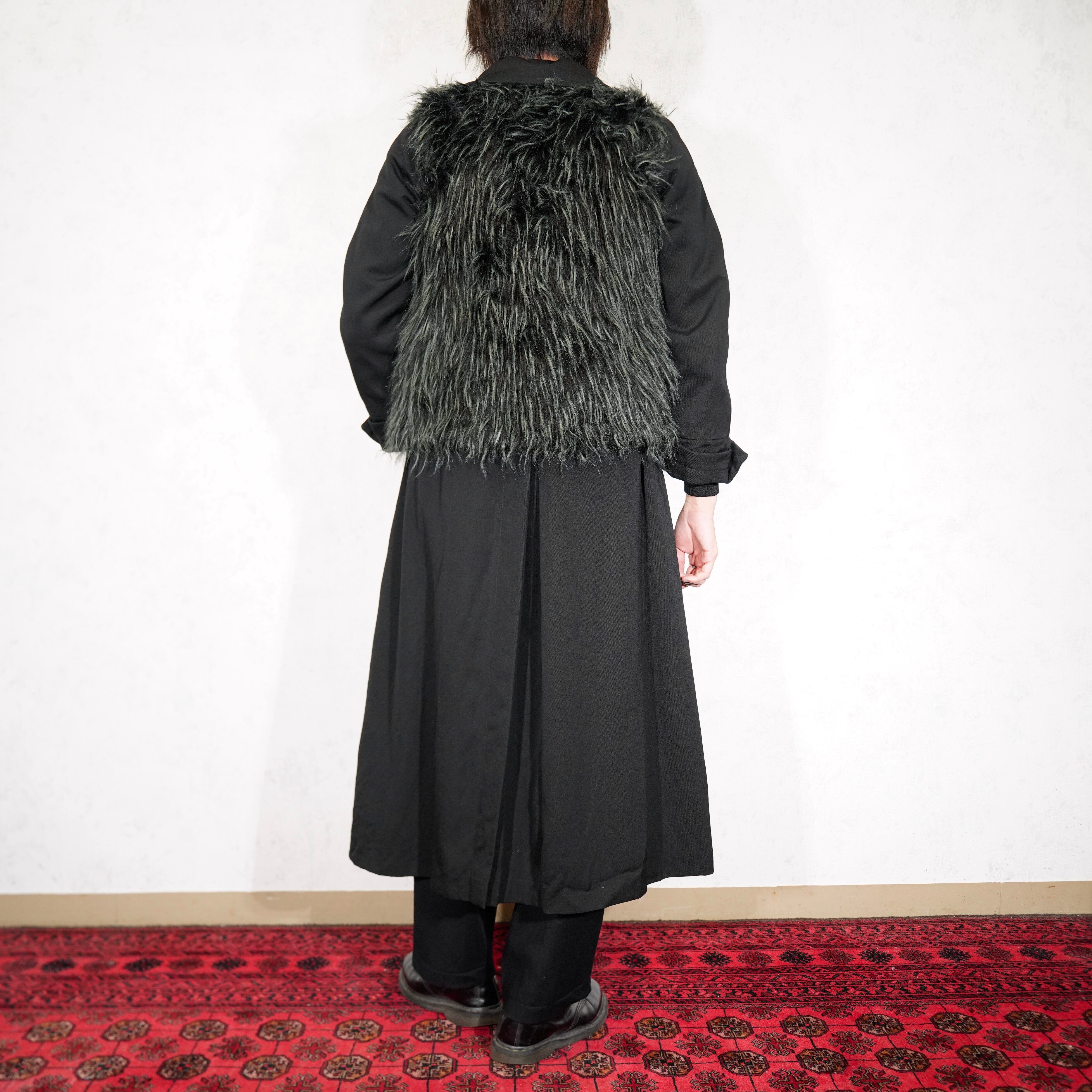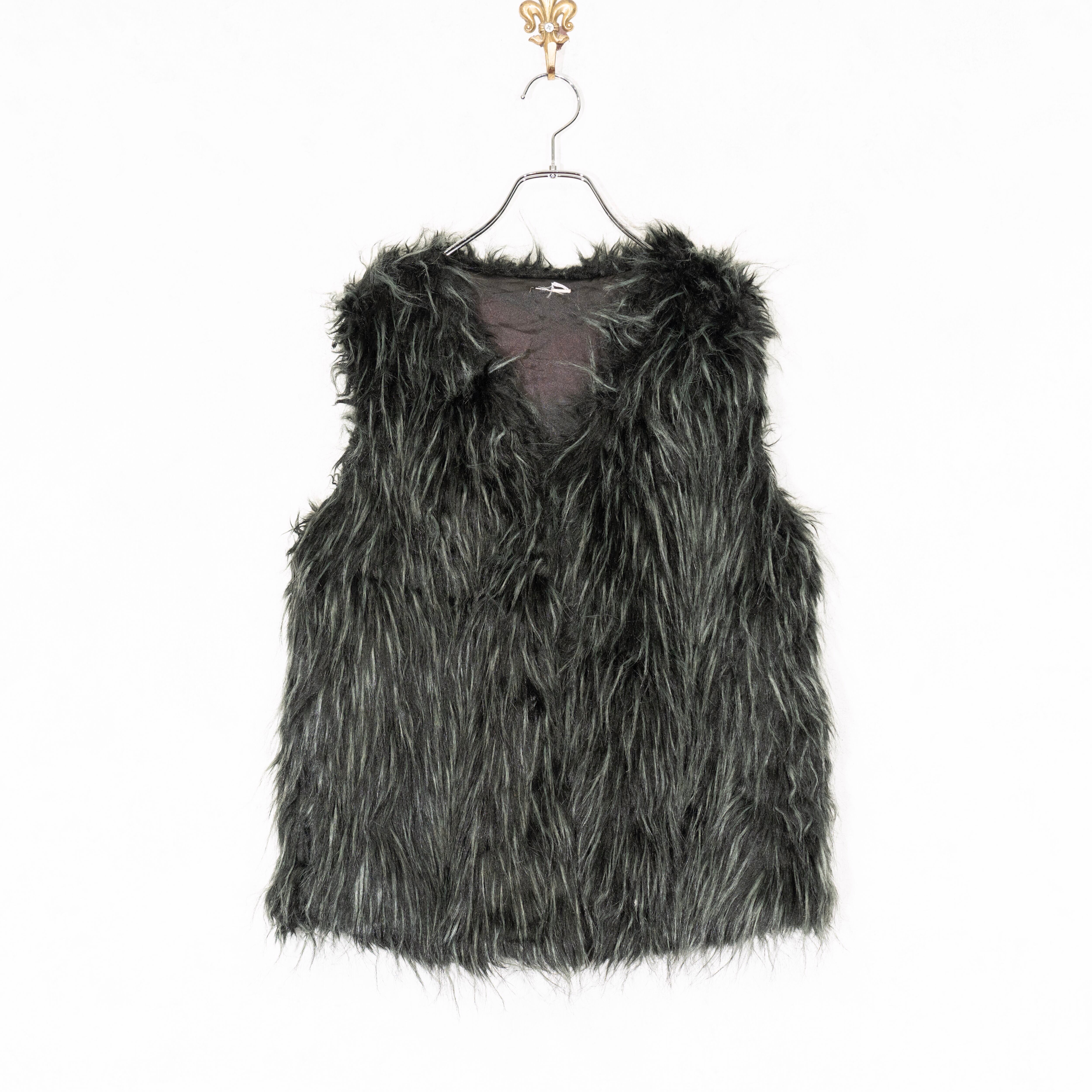 USA VINTAGE BLACK COLOR DESIGN FAKE FUR VEST/アメリカ古着ブラックカラーデザインフェイクファーベスト