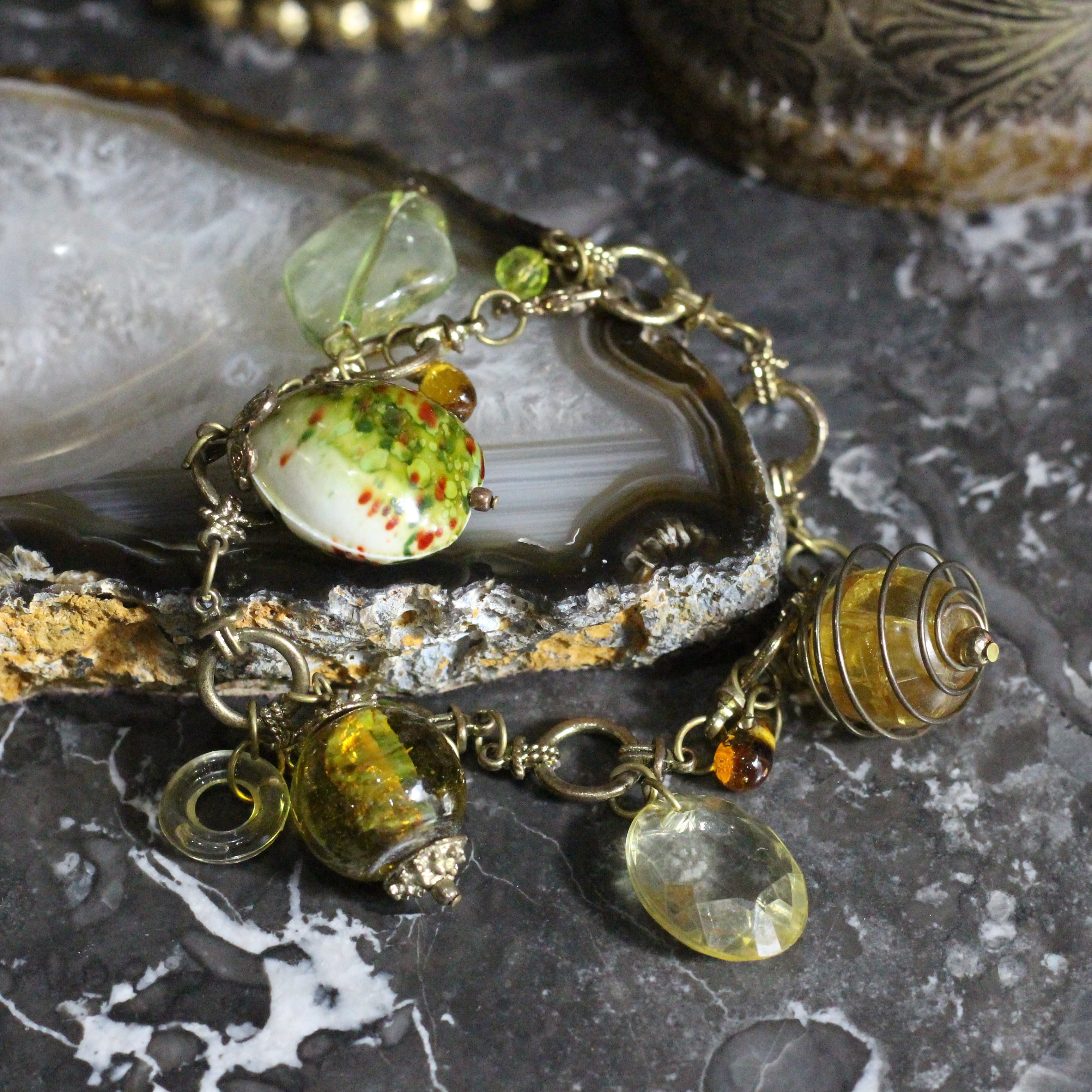 USA VINTAGE COLOR STONE DESIGN CHAIN BRACELET/アメリカ古着カラーストーンデザインチェーンブレスレット