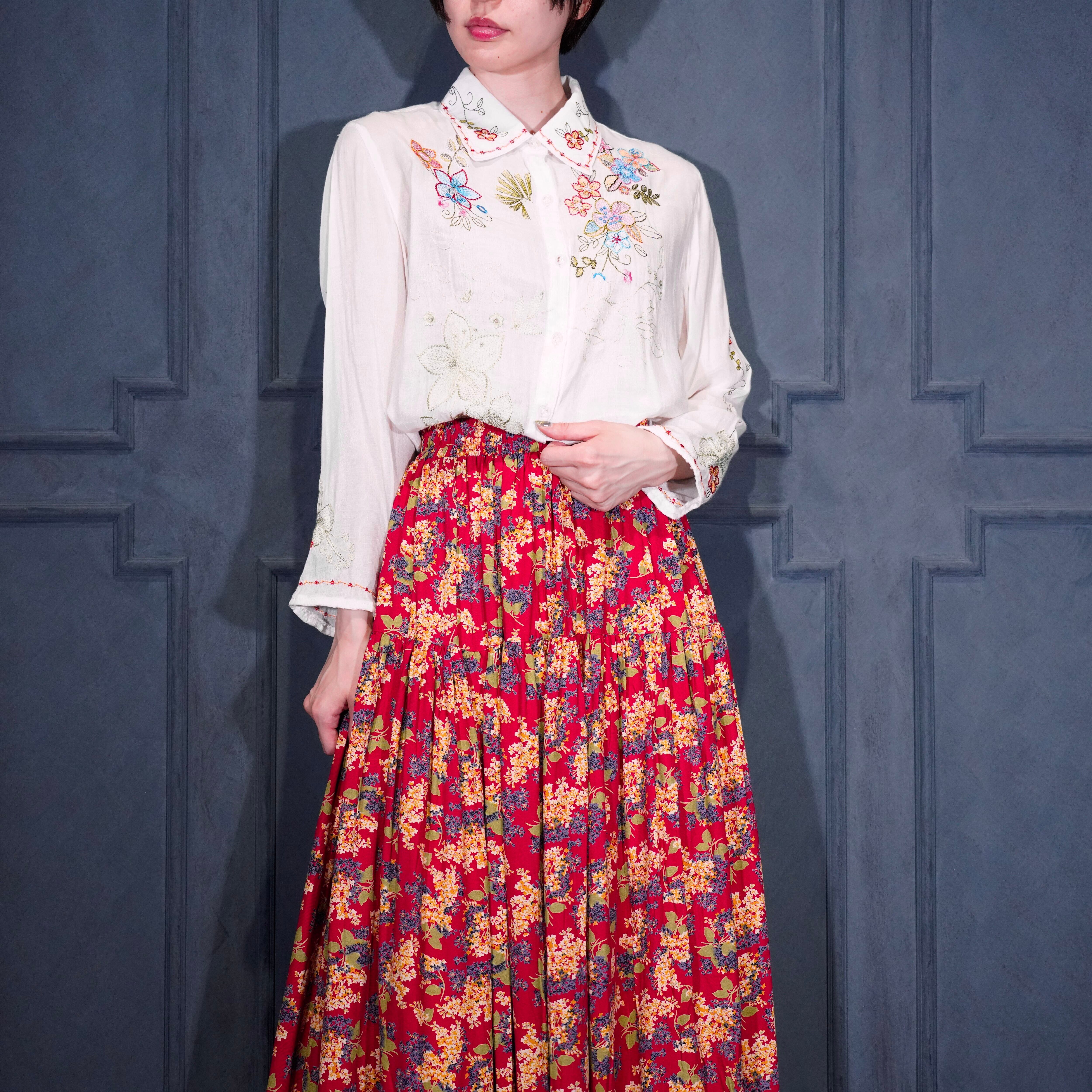 USA VINTAGE FLOWER EMBROIDERY DESIGN SHIRT/アメリカ古着お花刺繍デザインシャツ