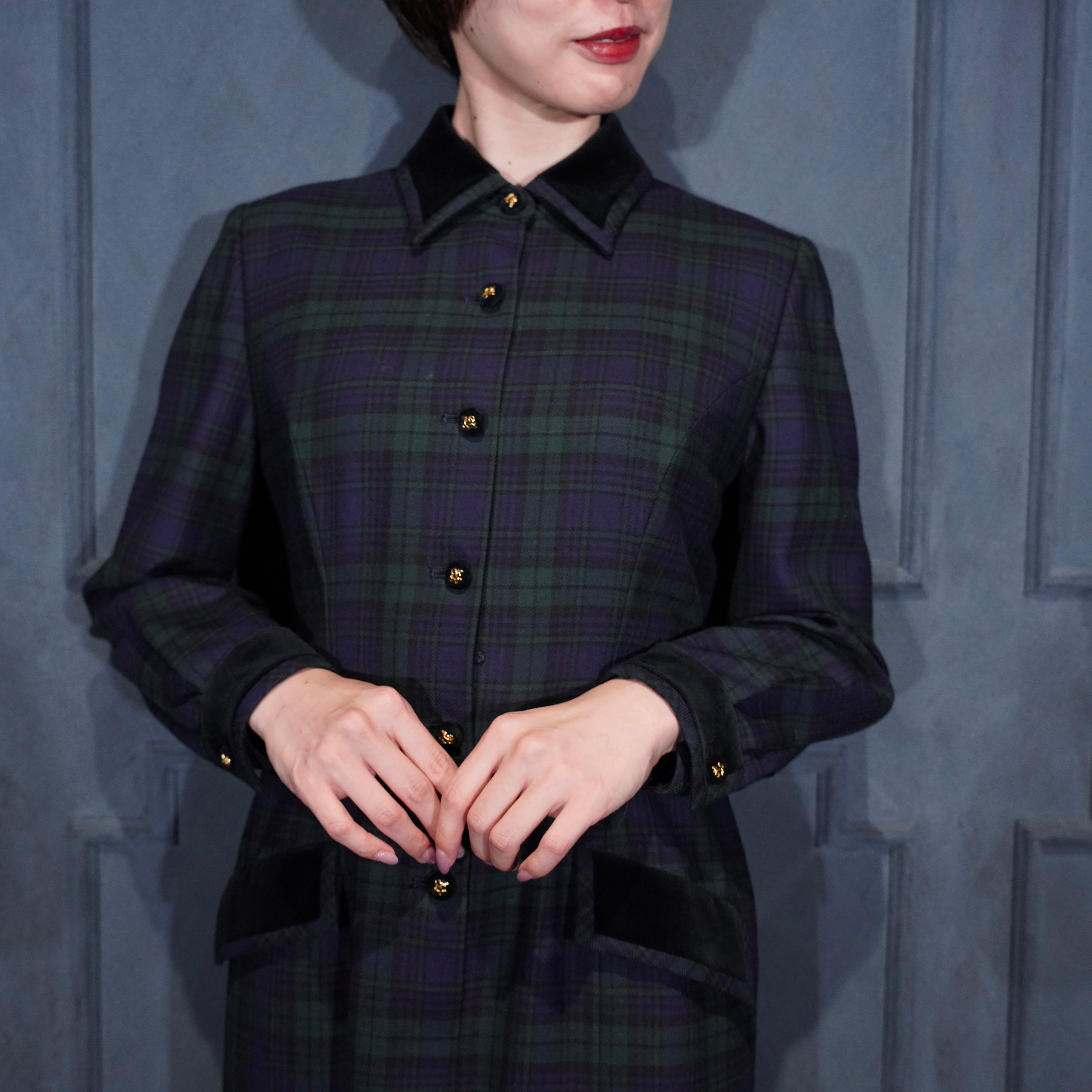 Burberrys CHECK PATTERNED VELOUR COLLAR DESIGN WOOL ONE PIECE/バーバリーズチェック柄ベロア襟デザインウールワンピース