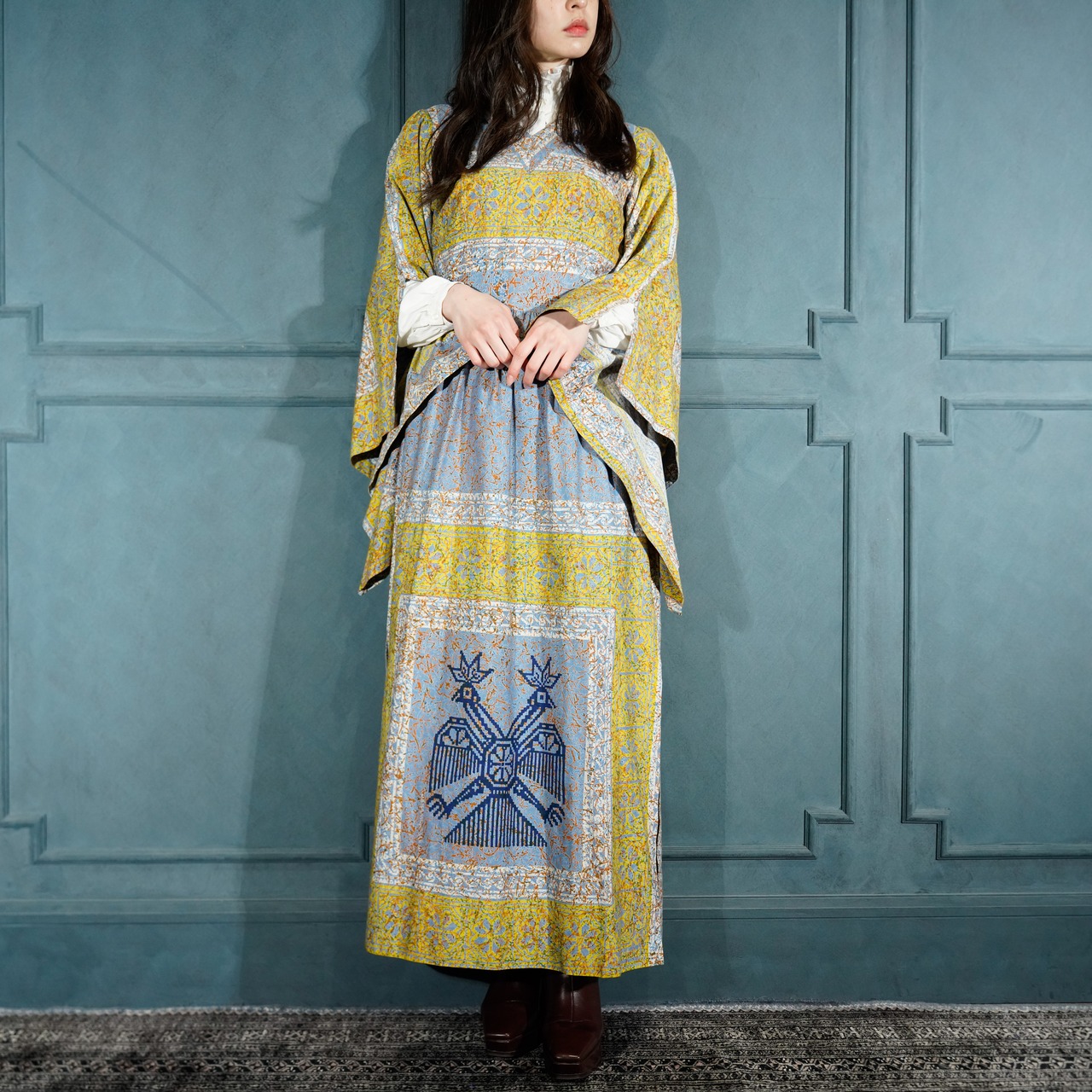 *SPECIAL ITEM* 50's USA VINTAGE Vikinga's ETHNIC DESIGN LONG ONE PIECE/50年代アメリカ古着エスニックデザインロングワンピース