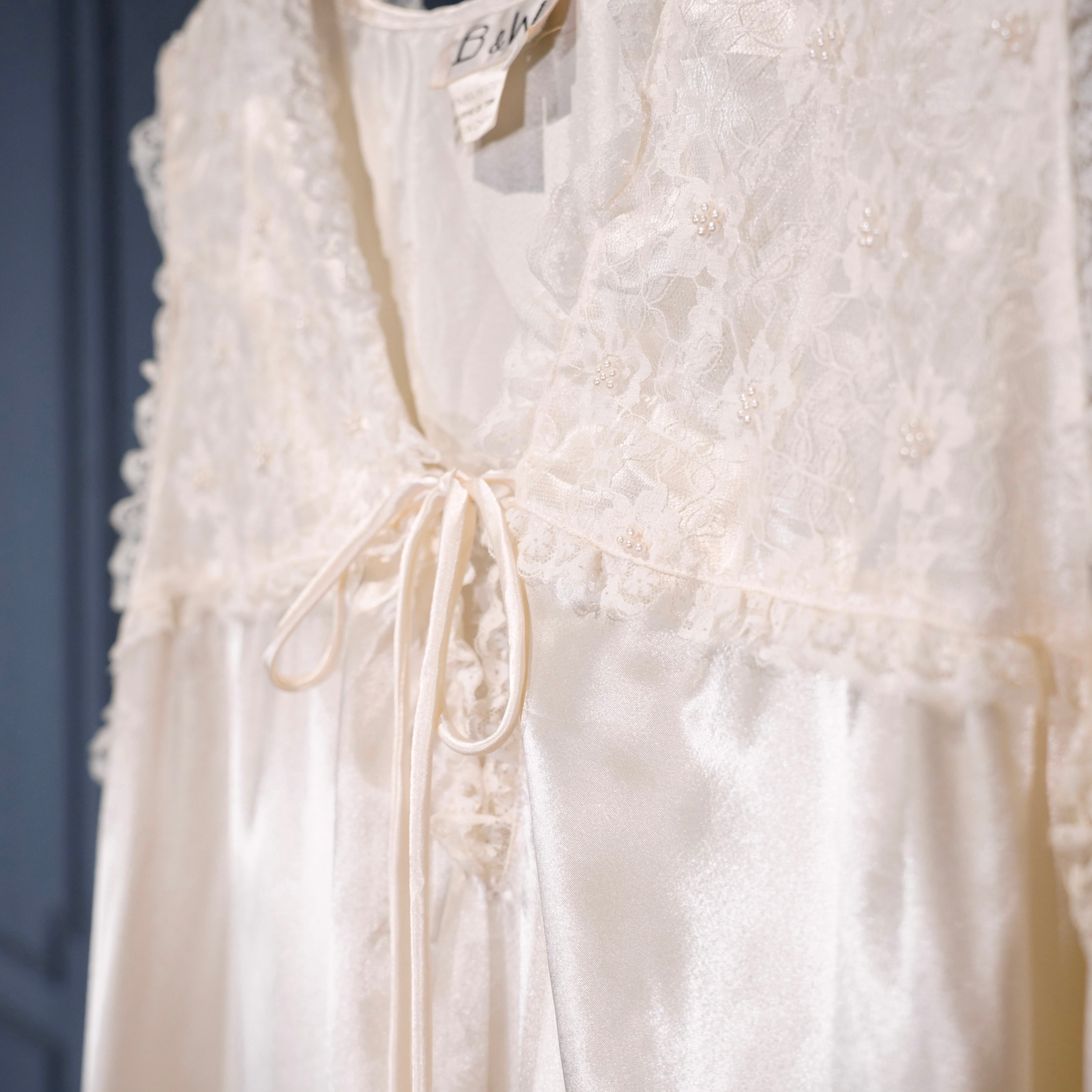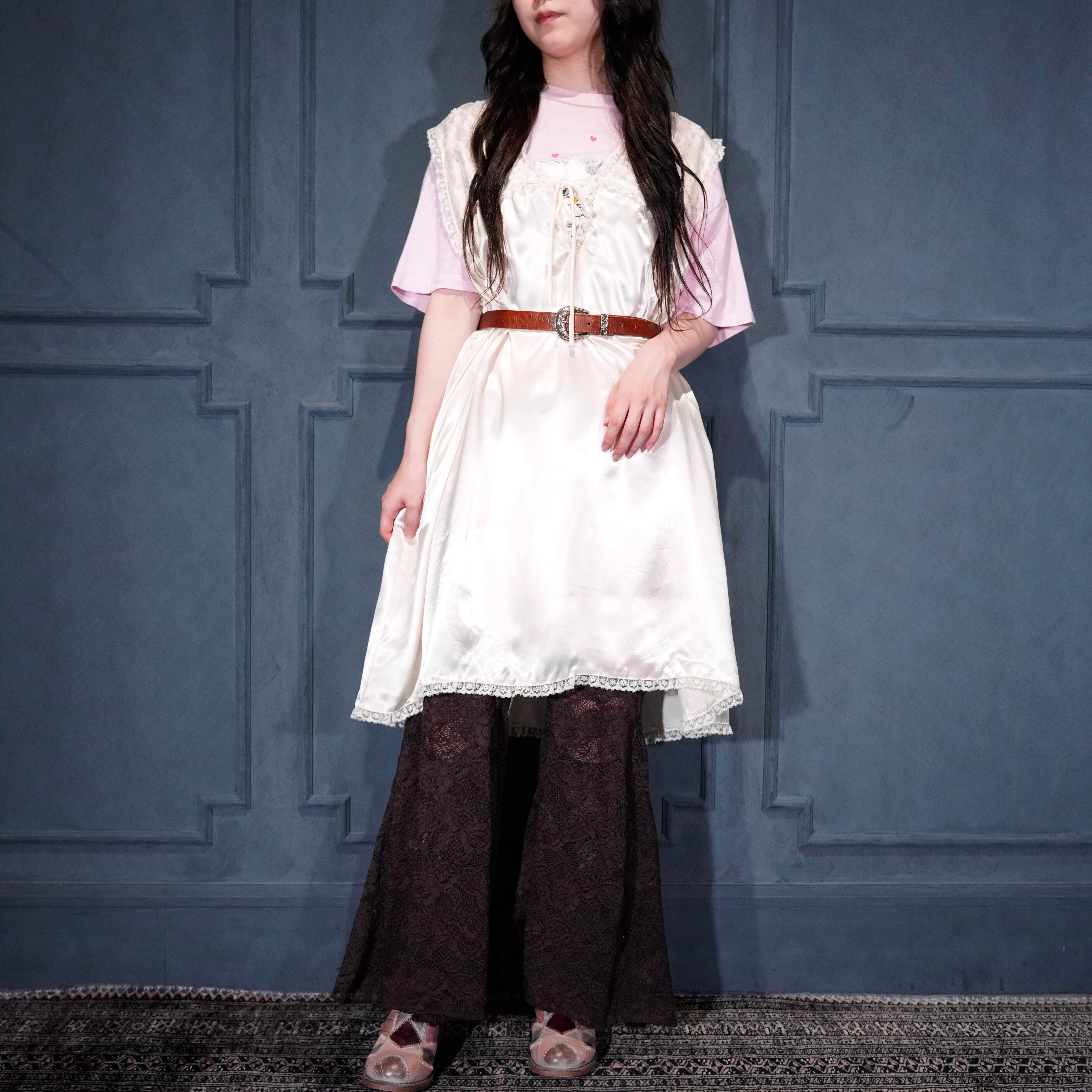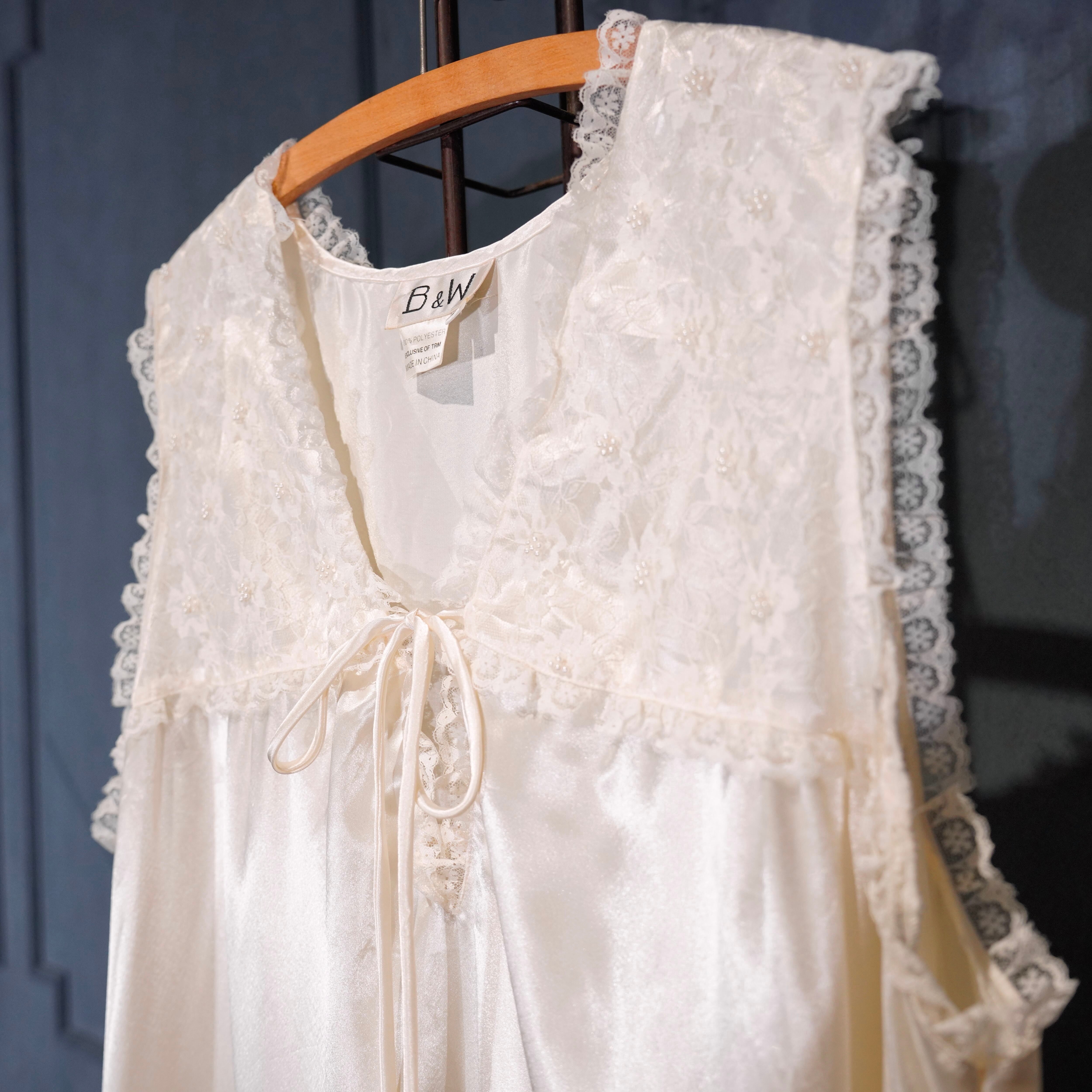 USA VINTAGE B&W LACE DESIGN NIGHTY DRESS TUNIC ONE PIECE/アメリカ古着レースデザインナイティドレスチュニックワンピース(ナイトドレス)