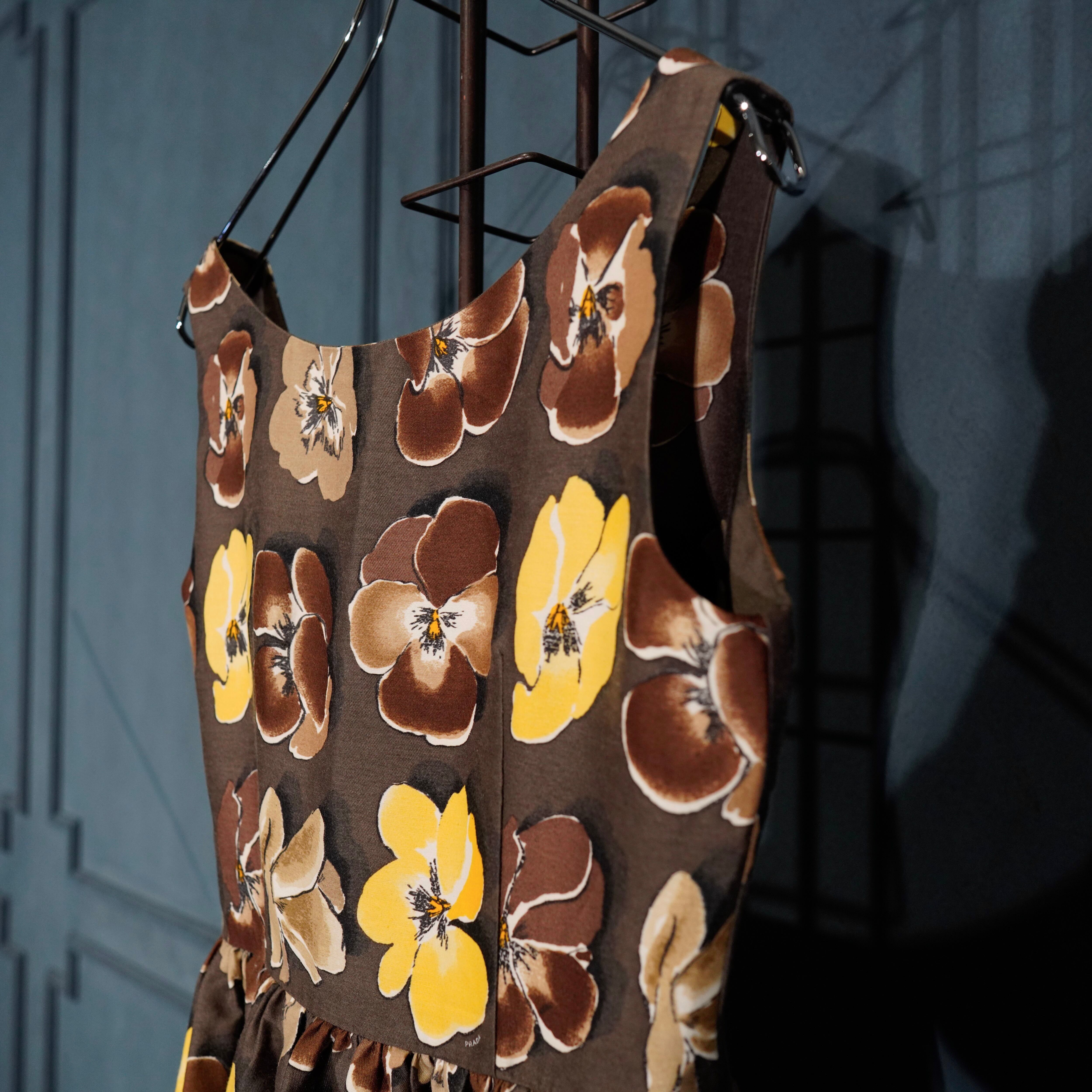 .PRADA FLOWER PATTERNED DESIGN SILK WOOL NO SLEEVE ONE PIECE/プラダお花柄デザインシルクウールノースリーブワンピース2000000072012